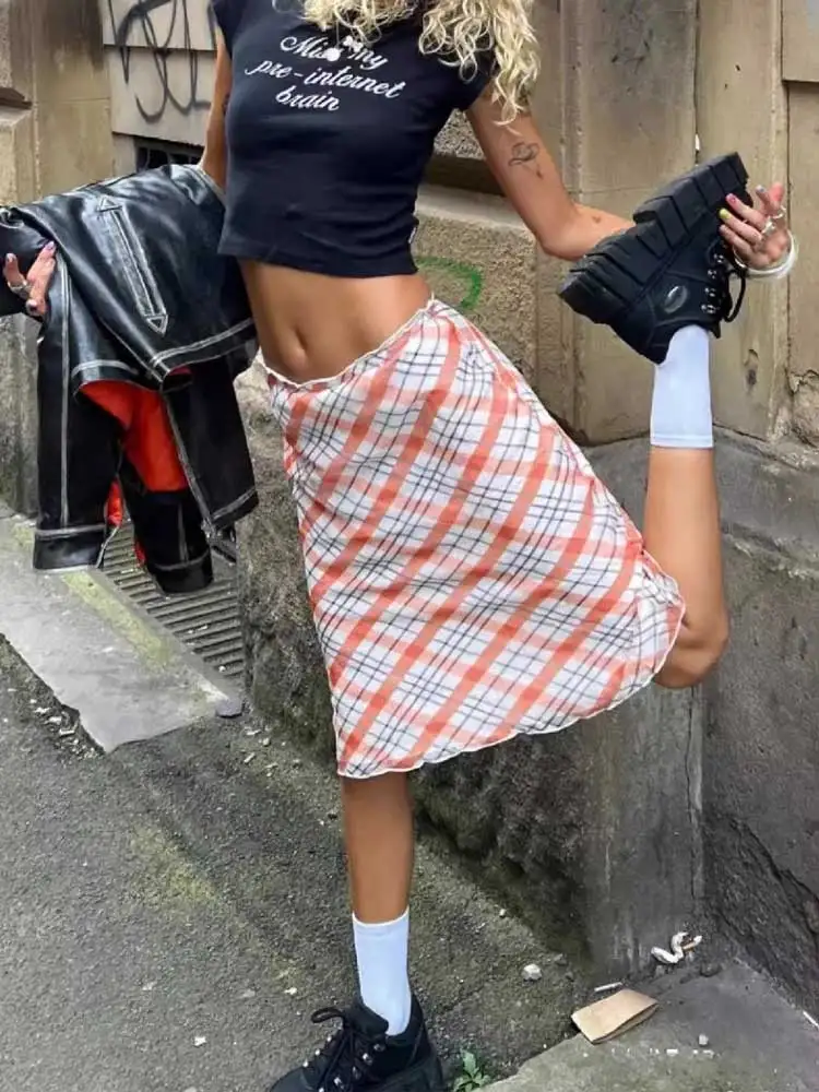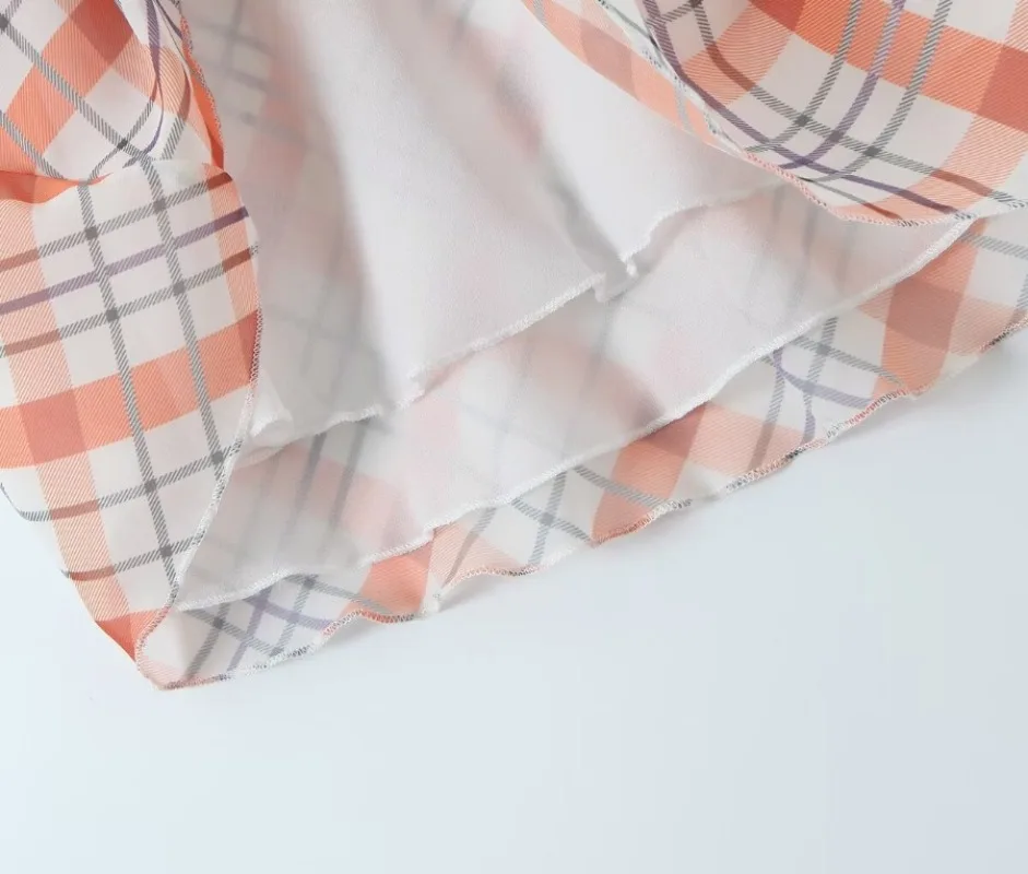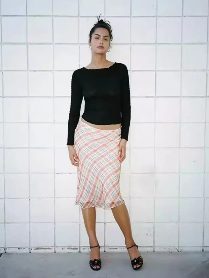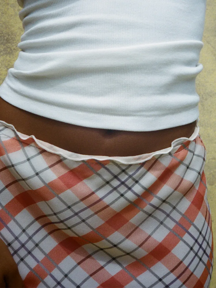 Cyflymder plaid skirt women elastic waist midi skirts new summer skirt vintage ruffle trim detail skirt women women clothing