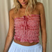 Cyflymder Plaid Strapless Tube Tops Elastic Ruched Off Shoulder Crop Tops Bandeau 90s Vintage Backless Y2K Tank Vest Women