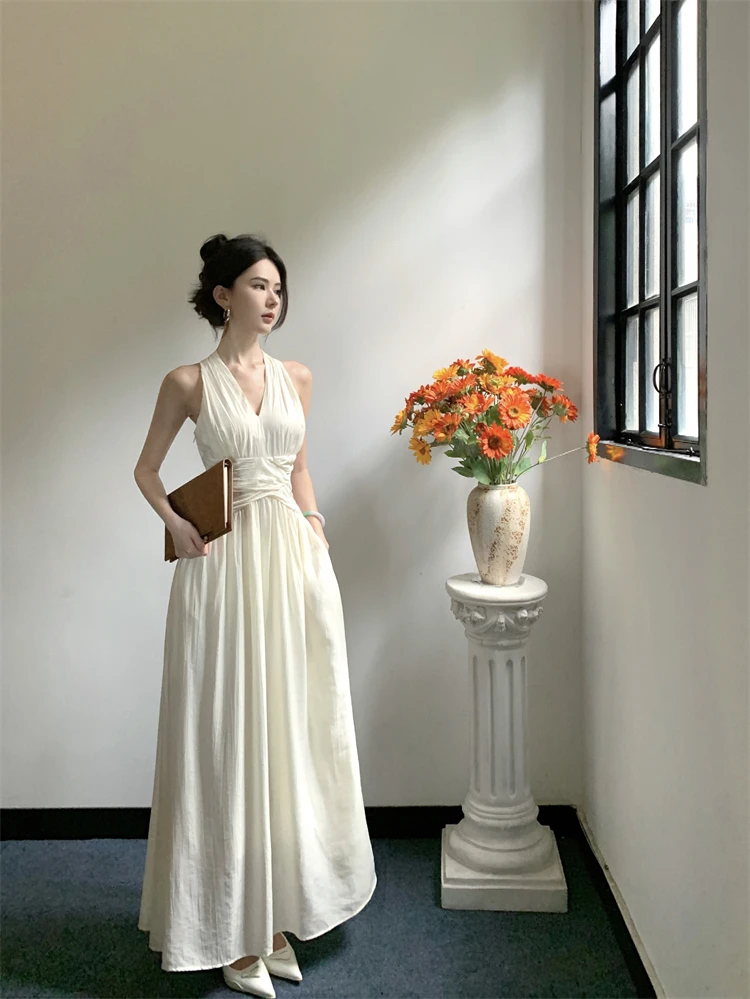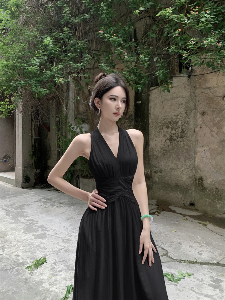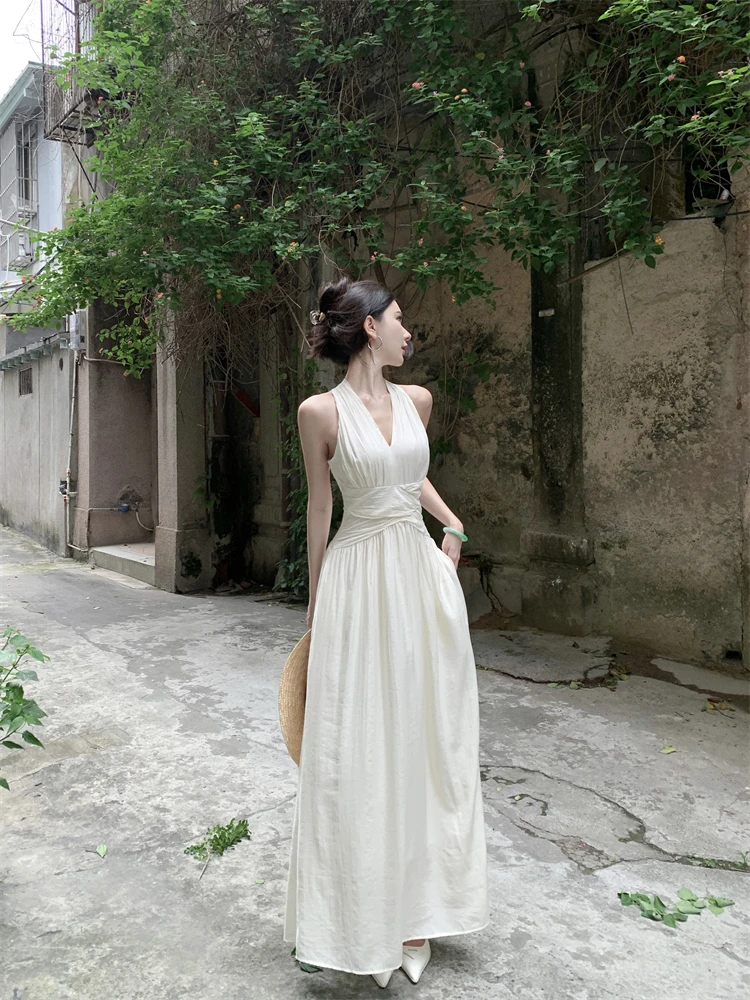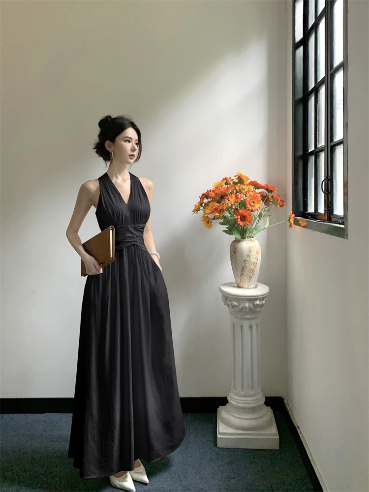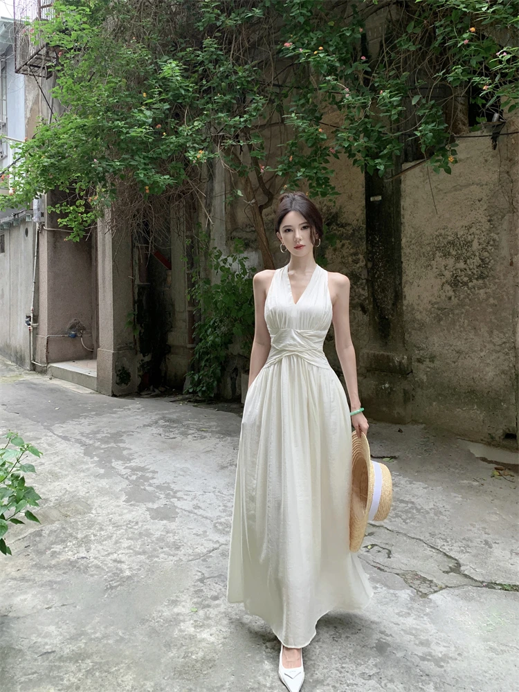 Cyflymder plus Size V-Ne Svel Dr Women Summer 2025 New Sle Slimming Waist High Waist A-Line Long Dr for Vaion