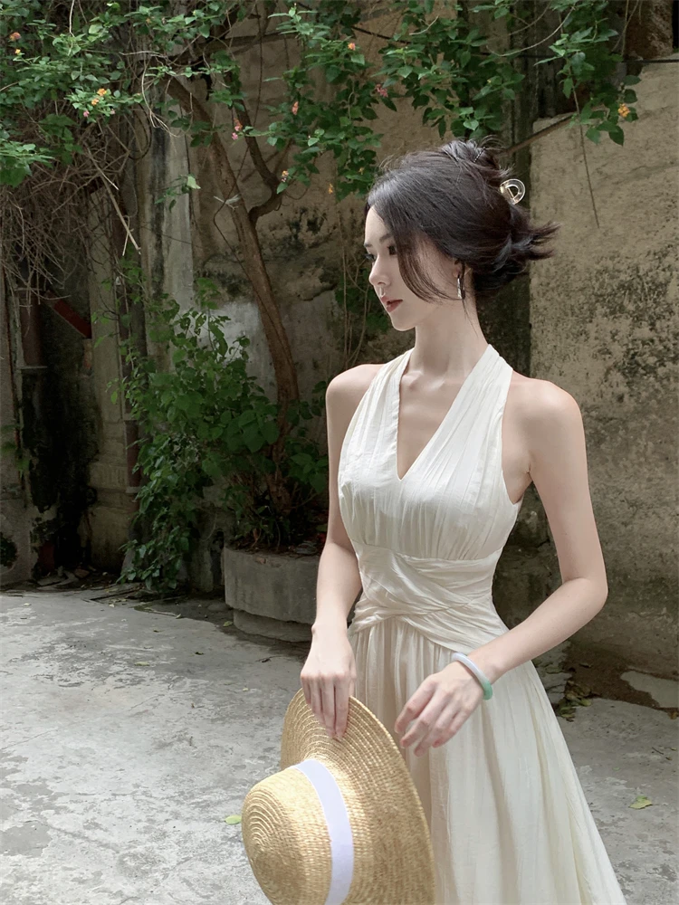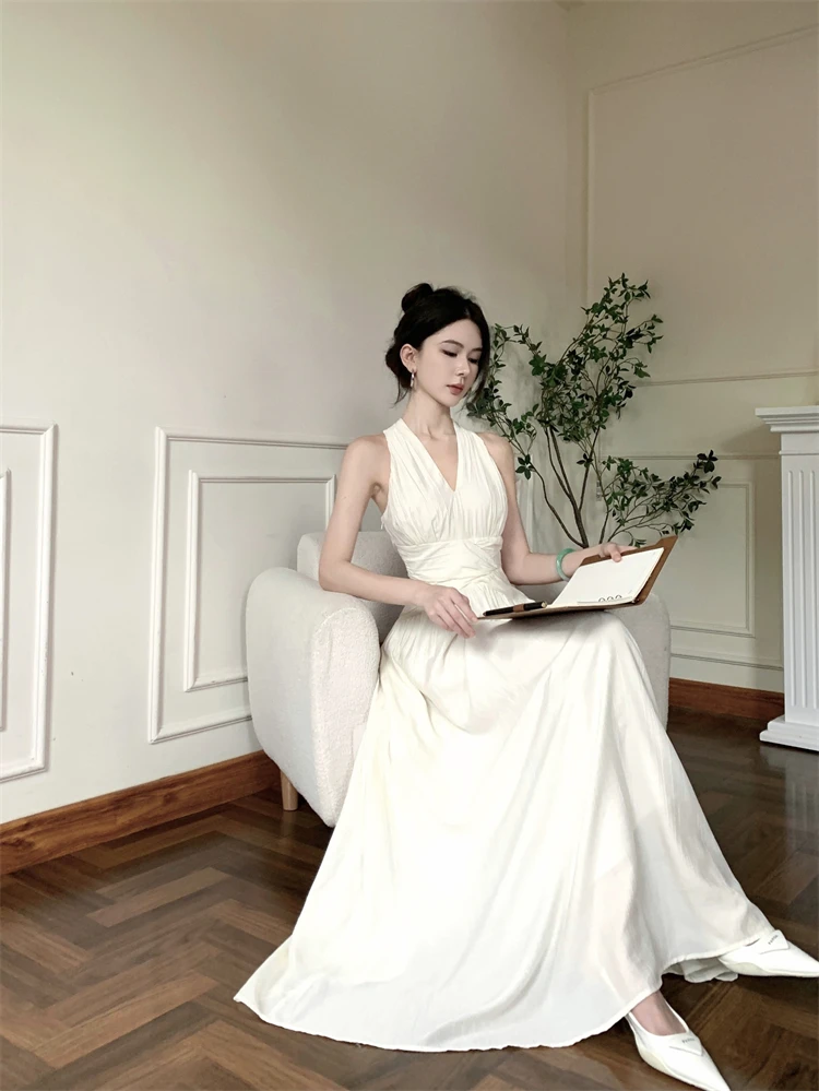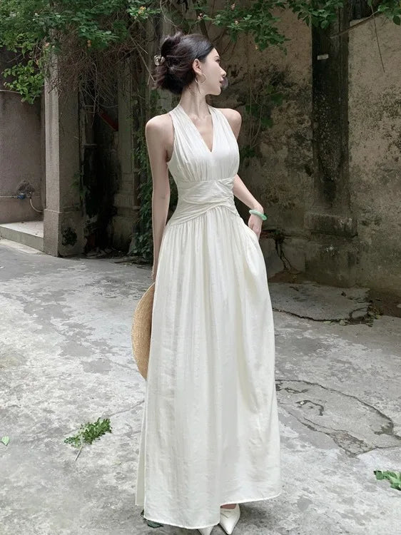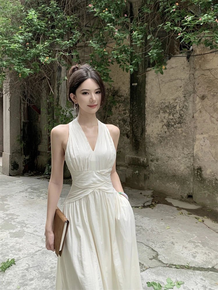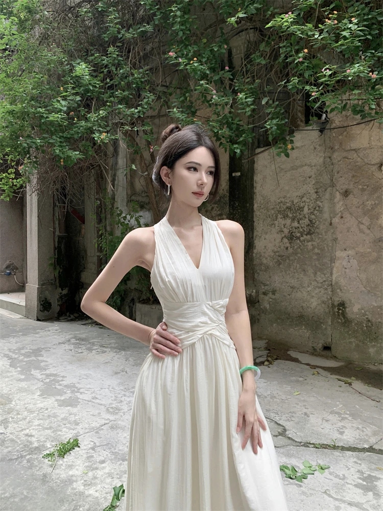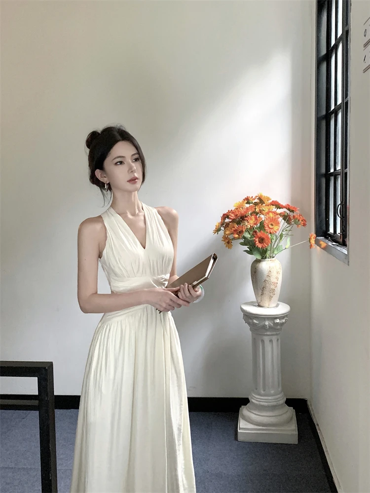Cyflymder plus Size V-Ne Svel Dr Women Summer 2025 New Sle Slimming Waist High Waist A-Line Long Dr for Vaion