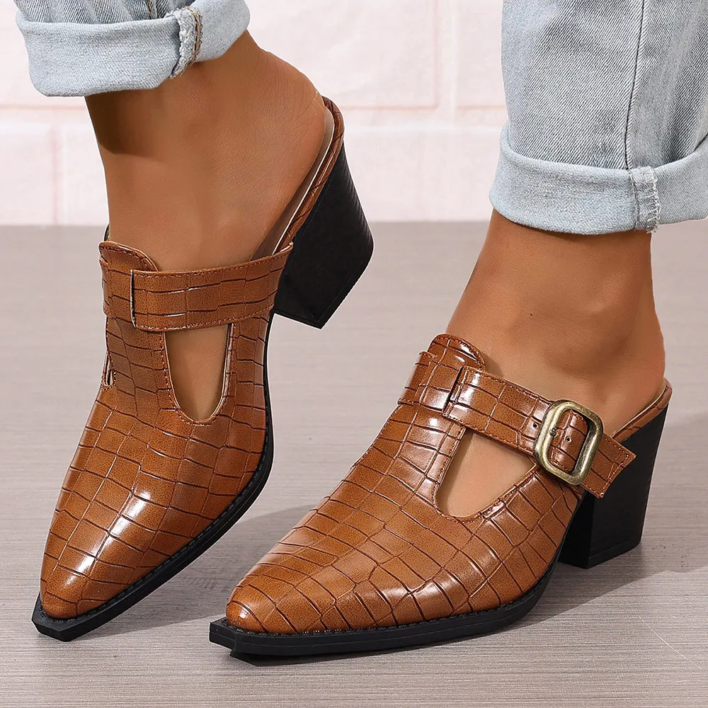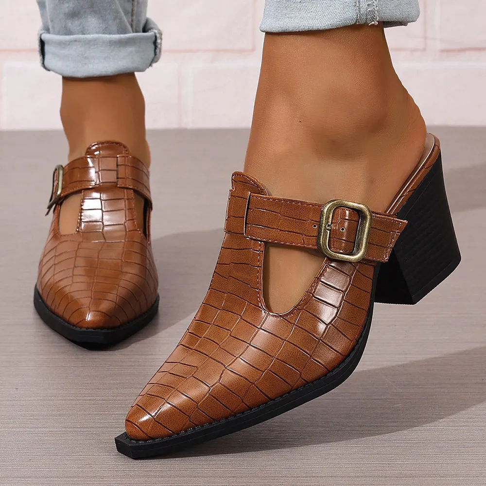 Cyflymder Pointed Toe Designer Shoes Woman Women's Mules with 6.5cm High Heels Pumps Women Offers Summer Footwear Ladies Buckle Shoe