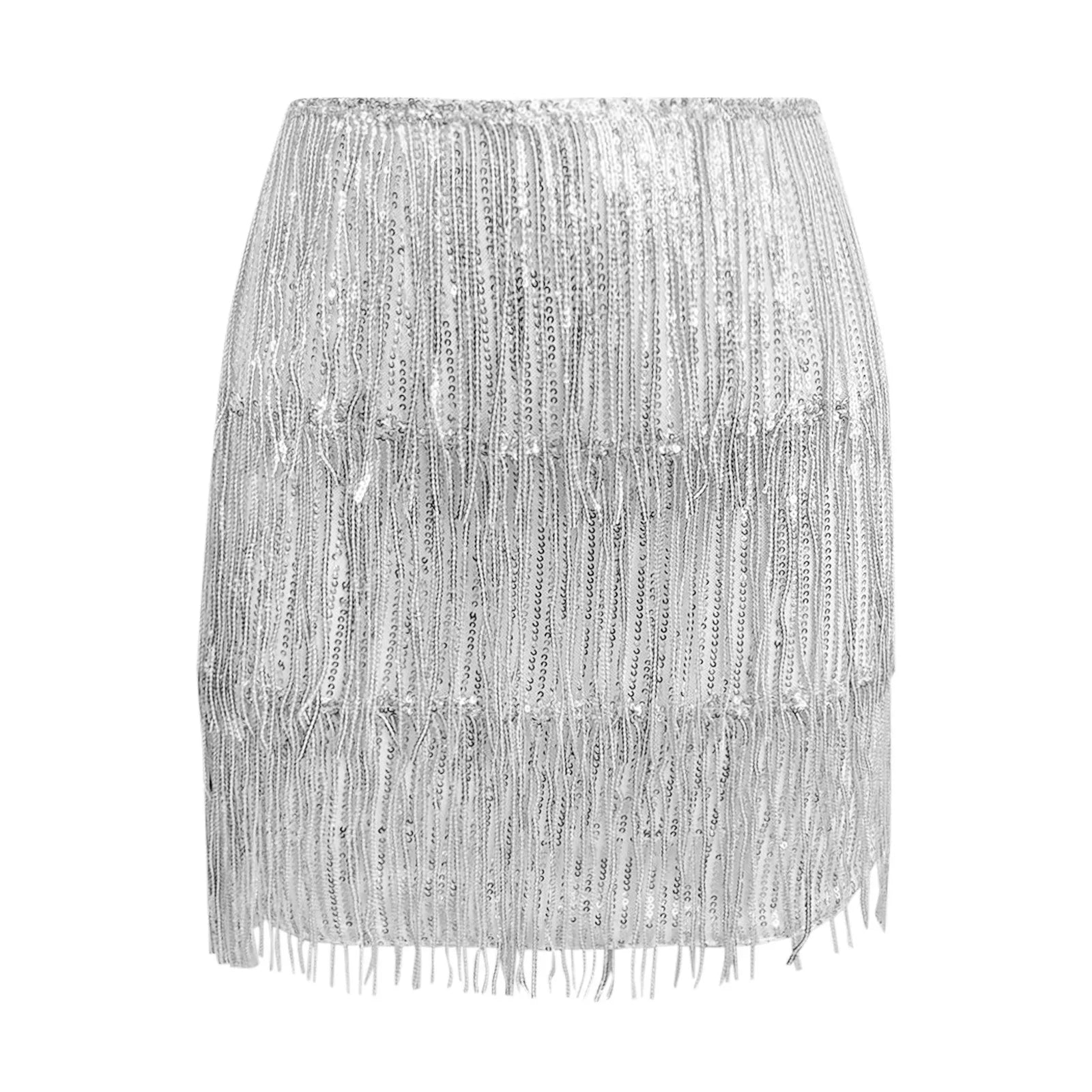Cyflymder Pole Dance Costumes Women Skirt Tassels Beaded Sequins Glitter Bodycon High Waist Mini Skirt Clubwear Party Sexy Pencil Skirt