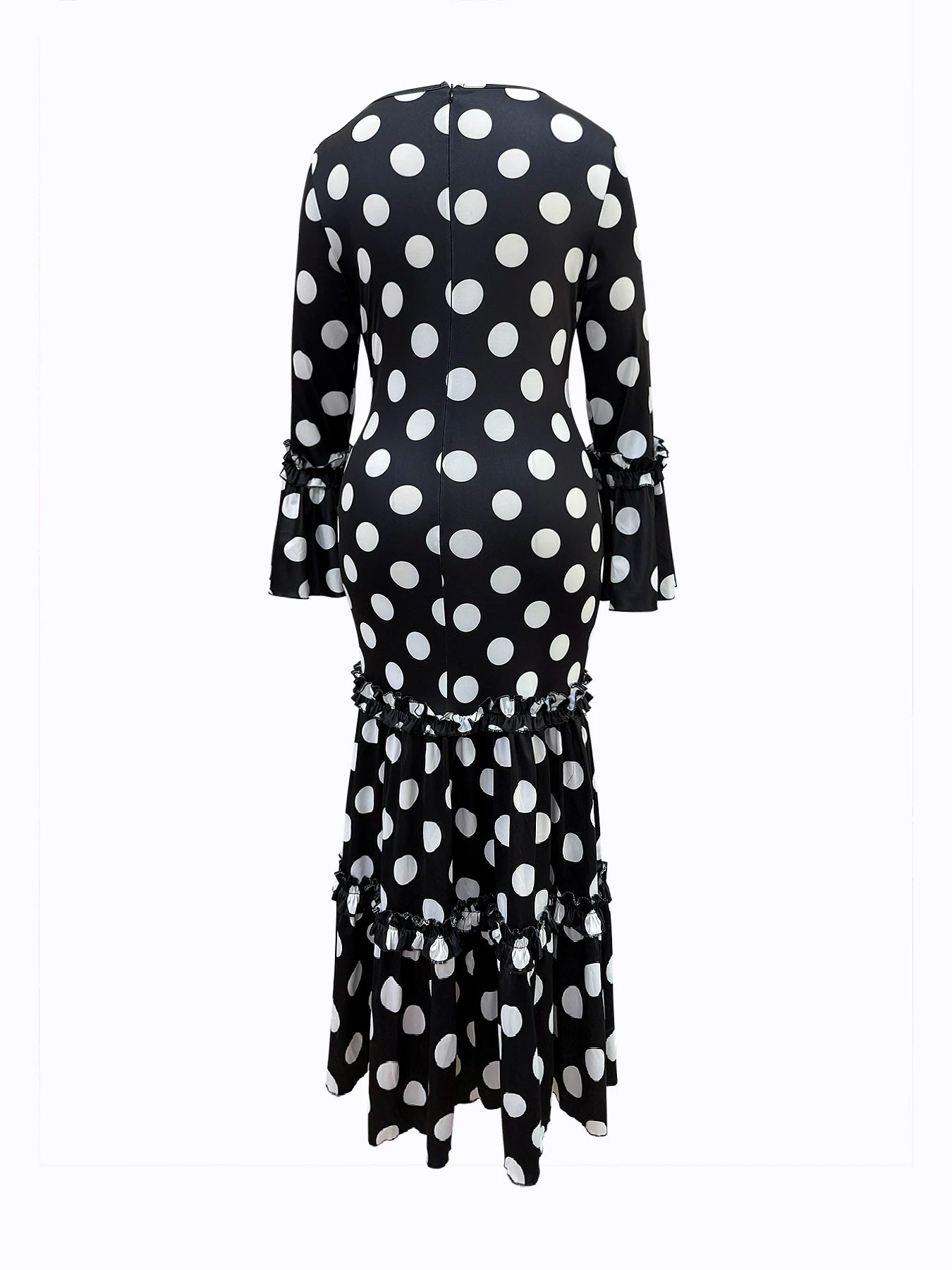 Cyflymder Polk Dot Printed Elegant Mermaid Dress Flare Sleeve Round Neck Party Club Ruffle Wedding Guest Cocktail Formal Dresses 2025