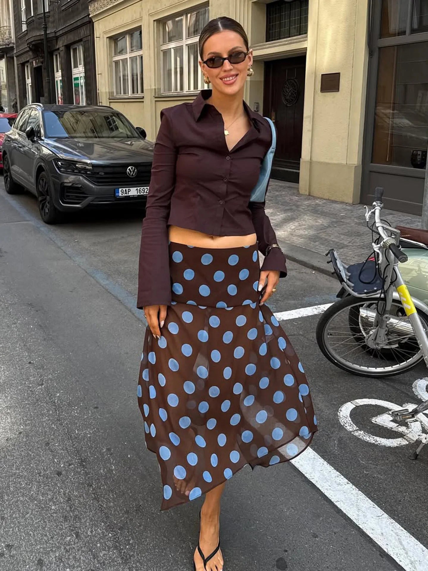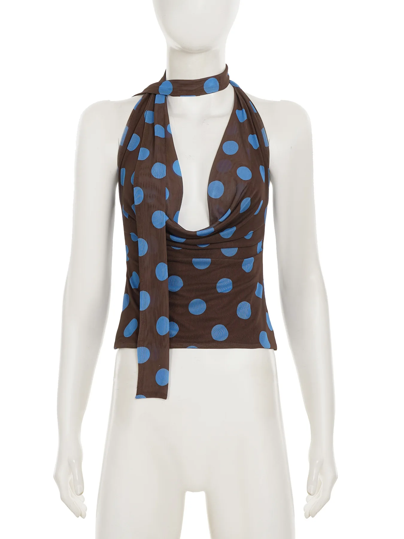 Cyflymder Polka Dot Halter Tops Women's Set Backless Sleeveless Top Flowy Mini Skirt 2025 Summer Elegant Suit Holiday Fashion Lady Sets