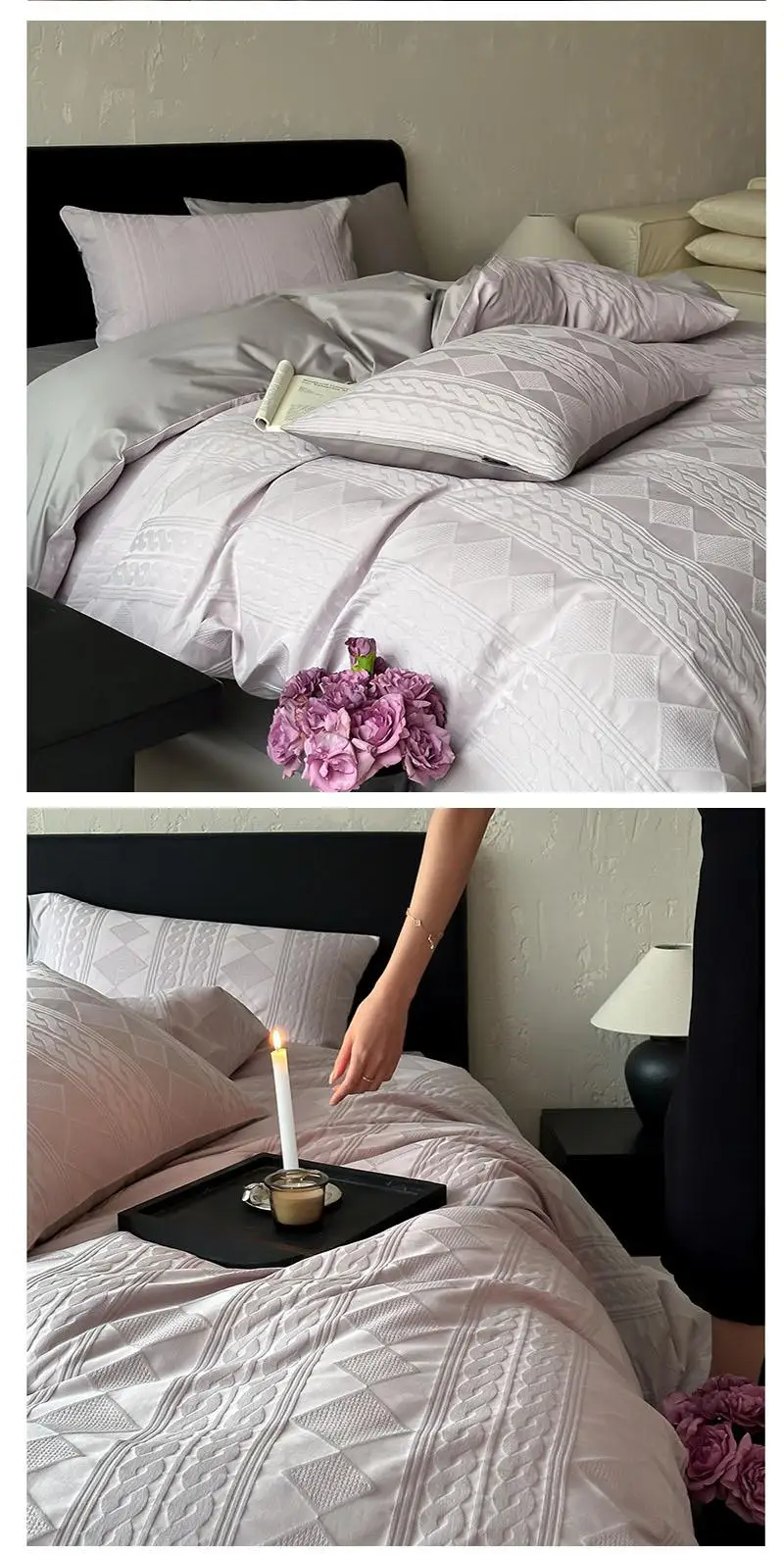 Cyflymder Premium 100S Pure Cotton Jacquard Bedding Sets Luxury Skin Friendly Smooth Quilt Cover Kit Bed Linens for Adults and Children