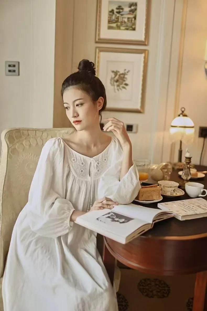 Cyflymder Princess 100% Cotton Embroidery Nightgowns Spring Full Sleeves White Loose Nightdress Ankle-Length Vintage Long Nightie Gown New