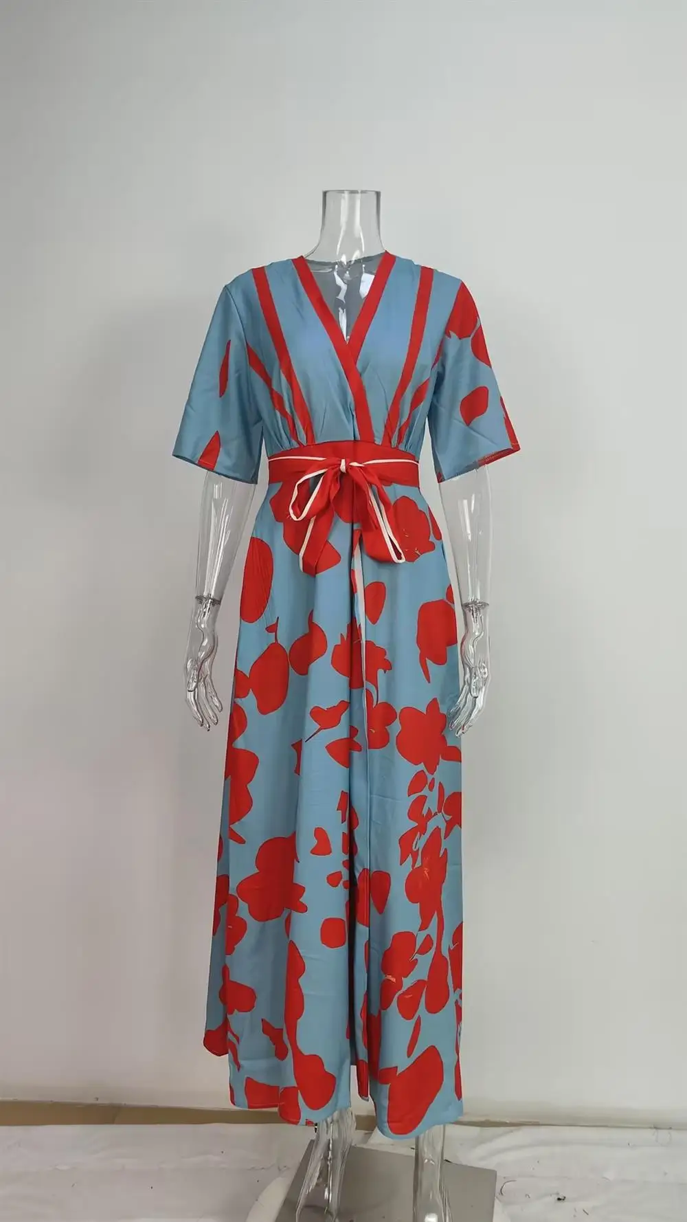 Cyflymder Print Midi Dr for Women with Giant Hemline And Belt Loose Fit Sve Semi Casual Perfect Gift Ideal Cotail Dr...