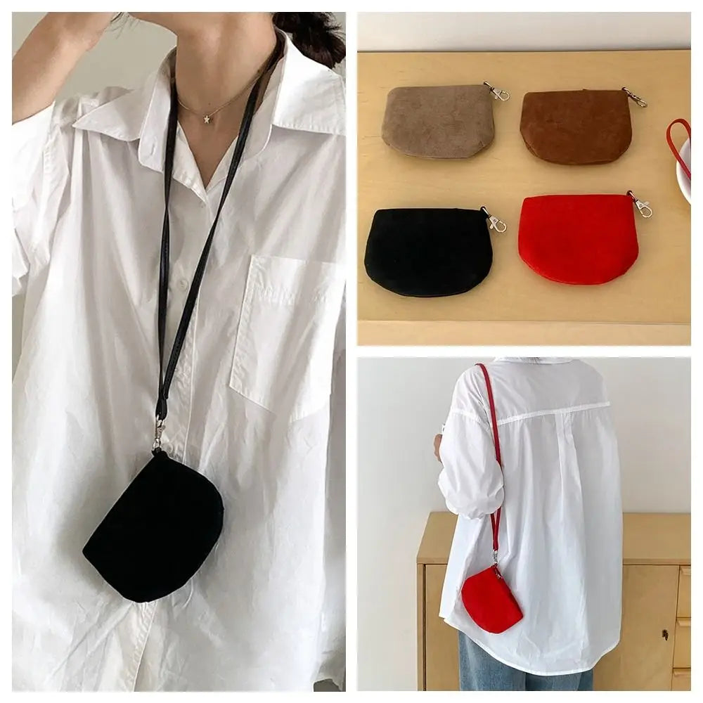Cyflymder PU Leather Suede Coin Purse Shoulder Bag Lipstick Earphone Pouch Mini Storage Bag Purse Card Holder Lanyard Wallet Outdoor