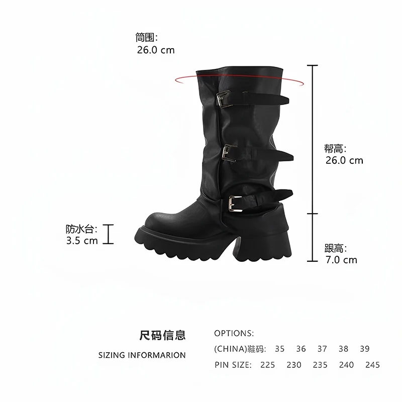 Cyflymder Punk Style Women Knee-High Boots Square High Heels Shoes Female Belt Buckle Long Booties Autumn Winter Zapatos De Mujer