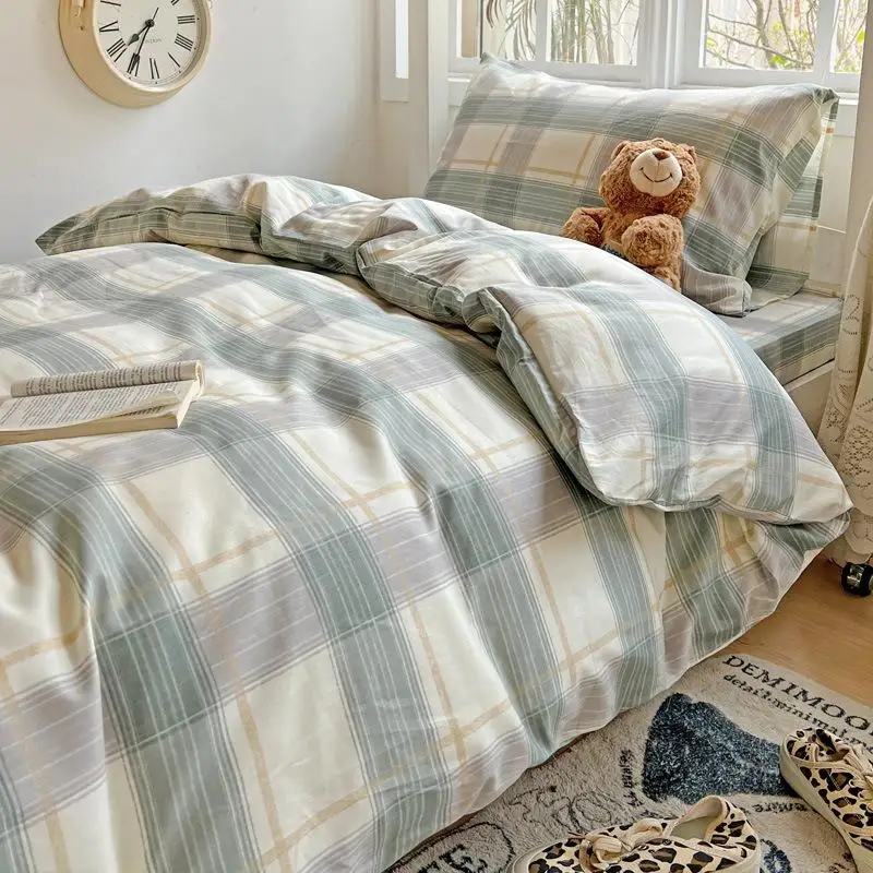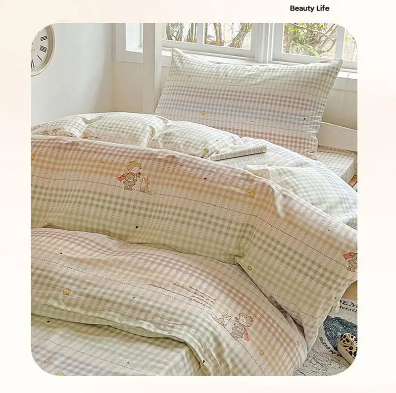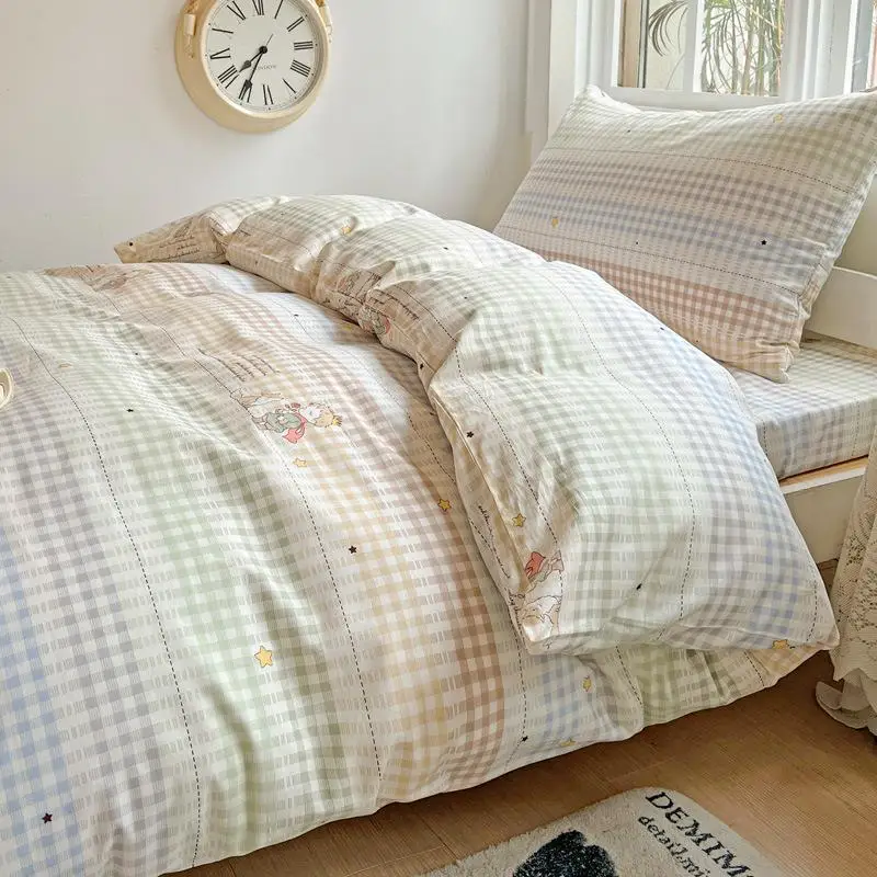 Cyflymder Pure Cotton Printed Student Bedding Set Single Queen Skin Friendly Bed Linens Skin Friendly Soft Comforter Set for All Seasons