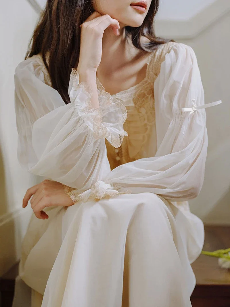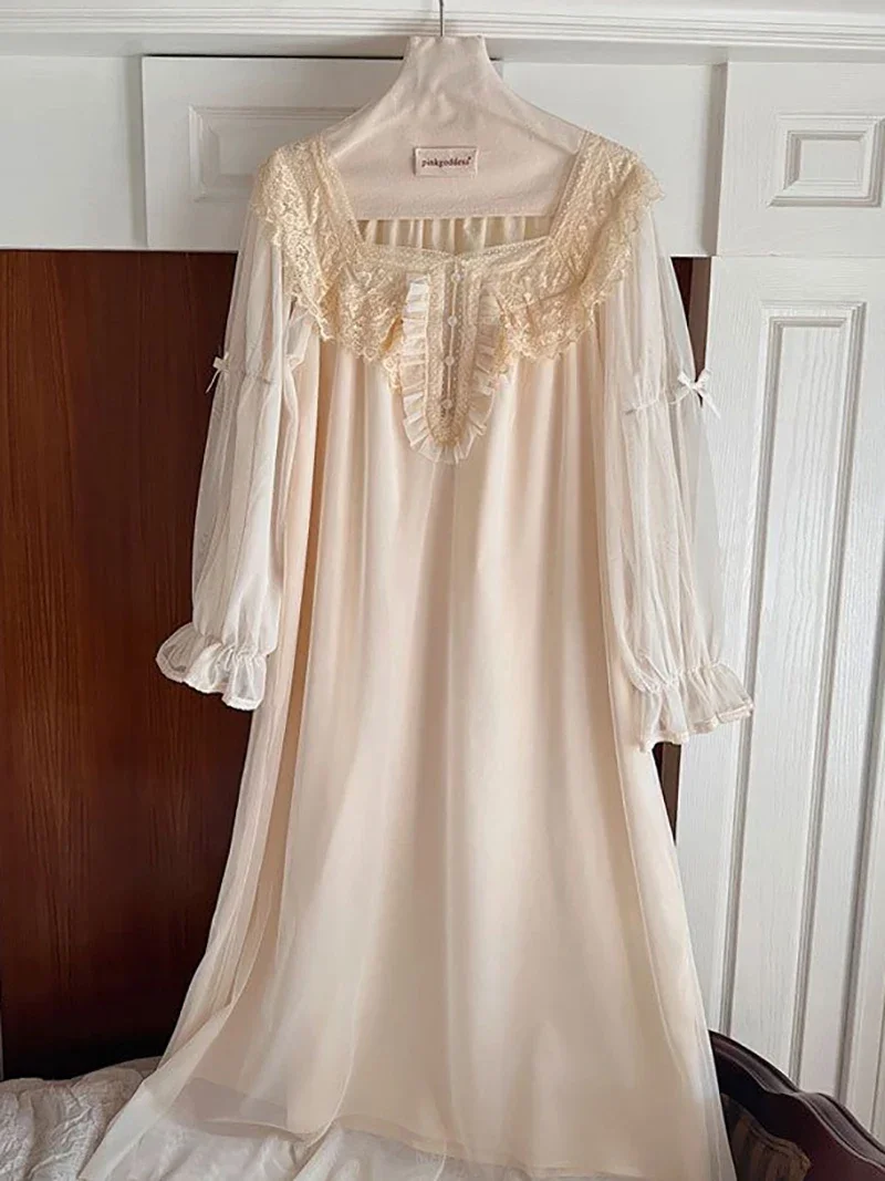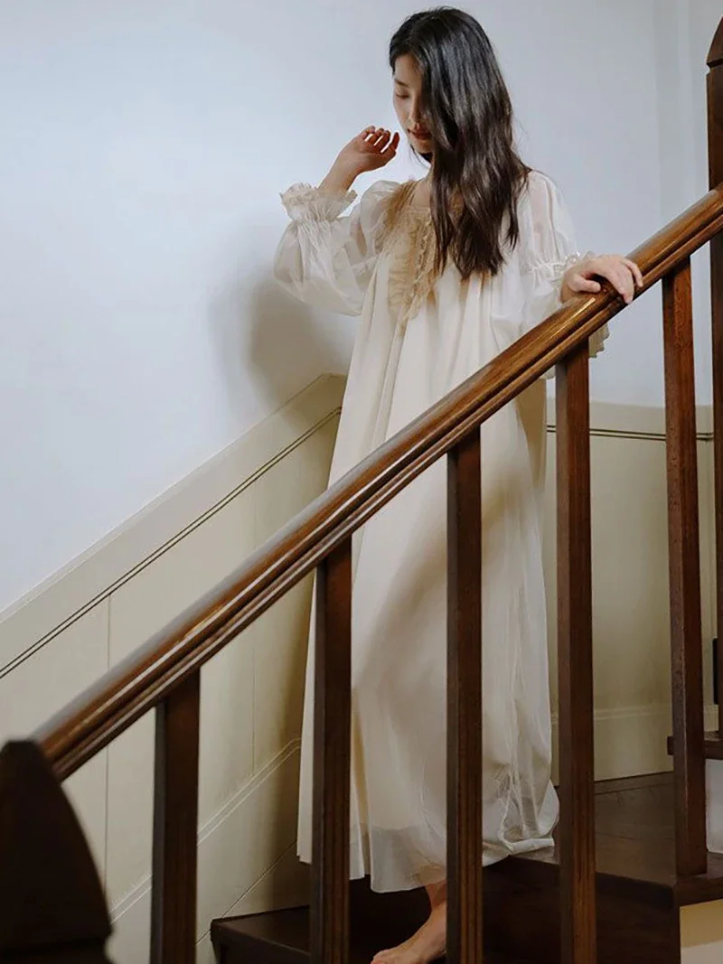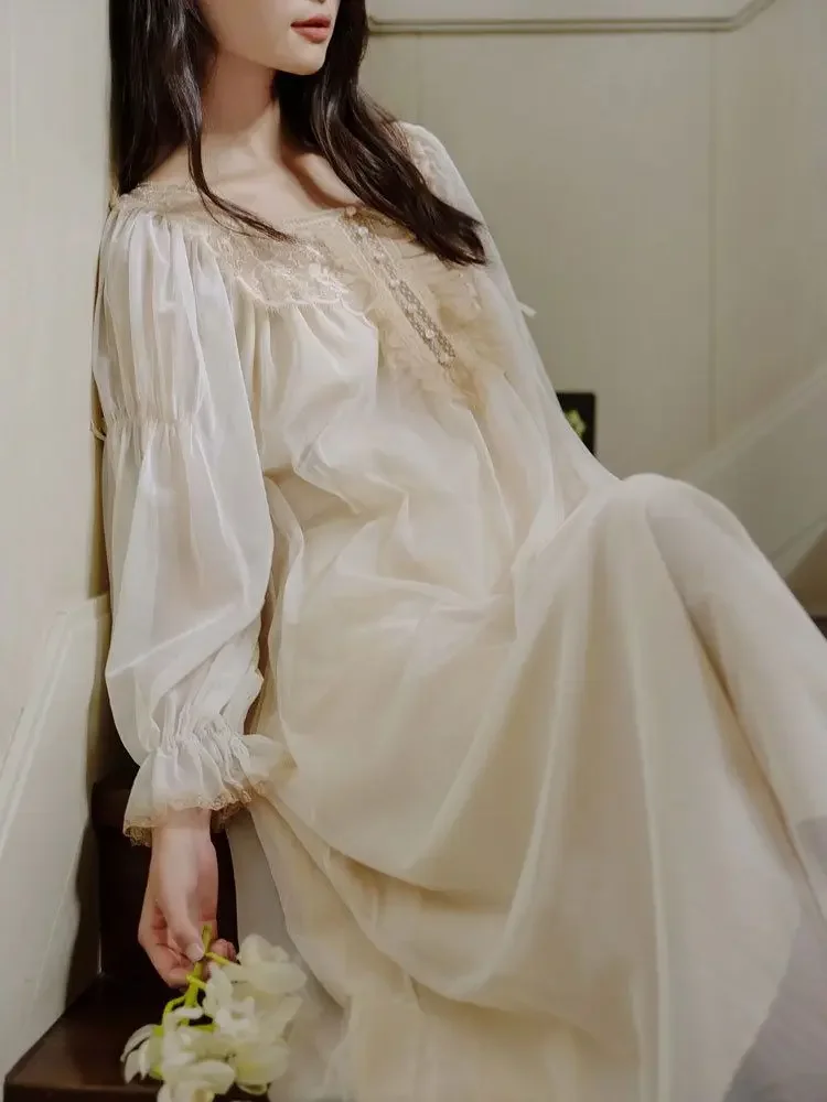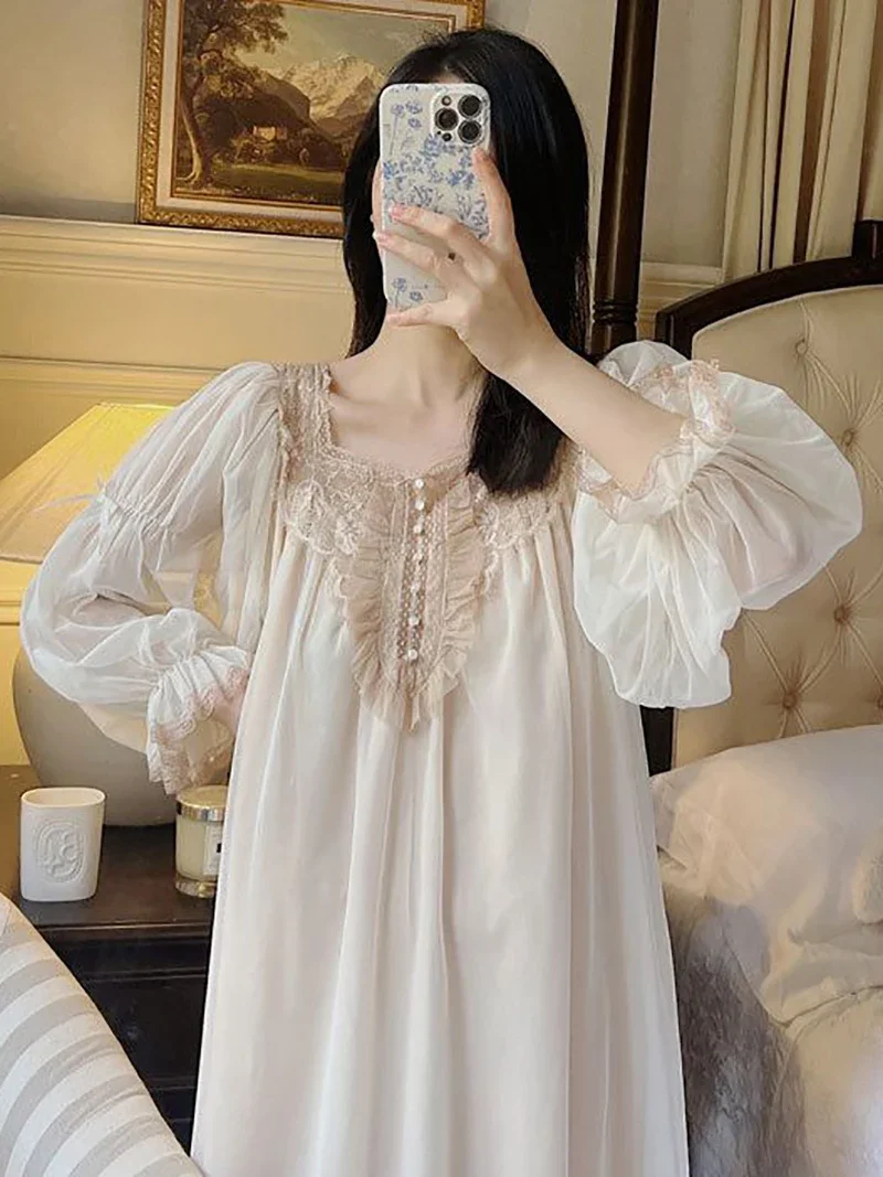 Cyflymder Pure Cotton Ruffles Vintage Nightgowns Women Robe Nightie Long Dress Victorian Romantic Princess Sleepwear Nightdress Homewear
