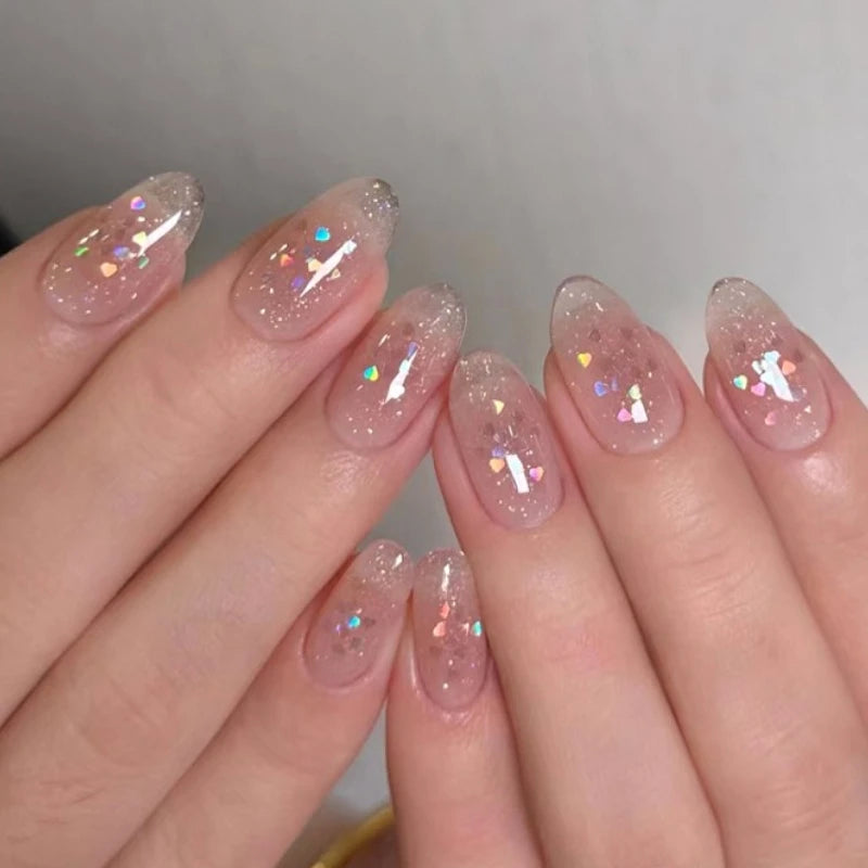 Cyflymder Red Pink French Polka Dot Round Dot Wearable Nail Art Short Almond Fake Nails Detachable Finished False Nails Press on Nails