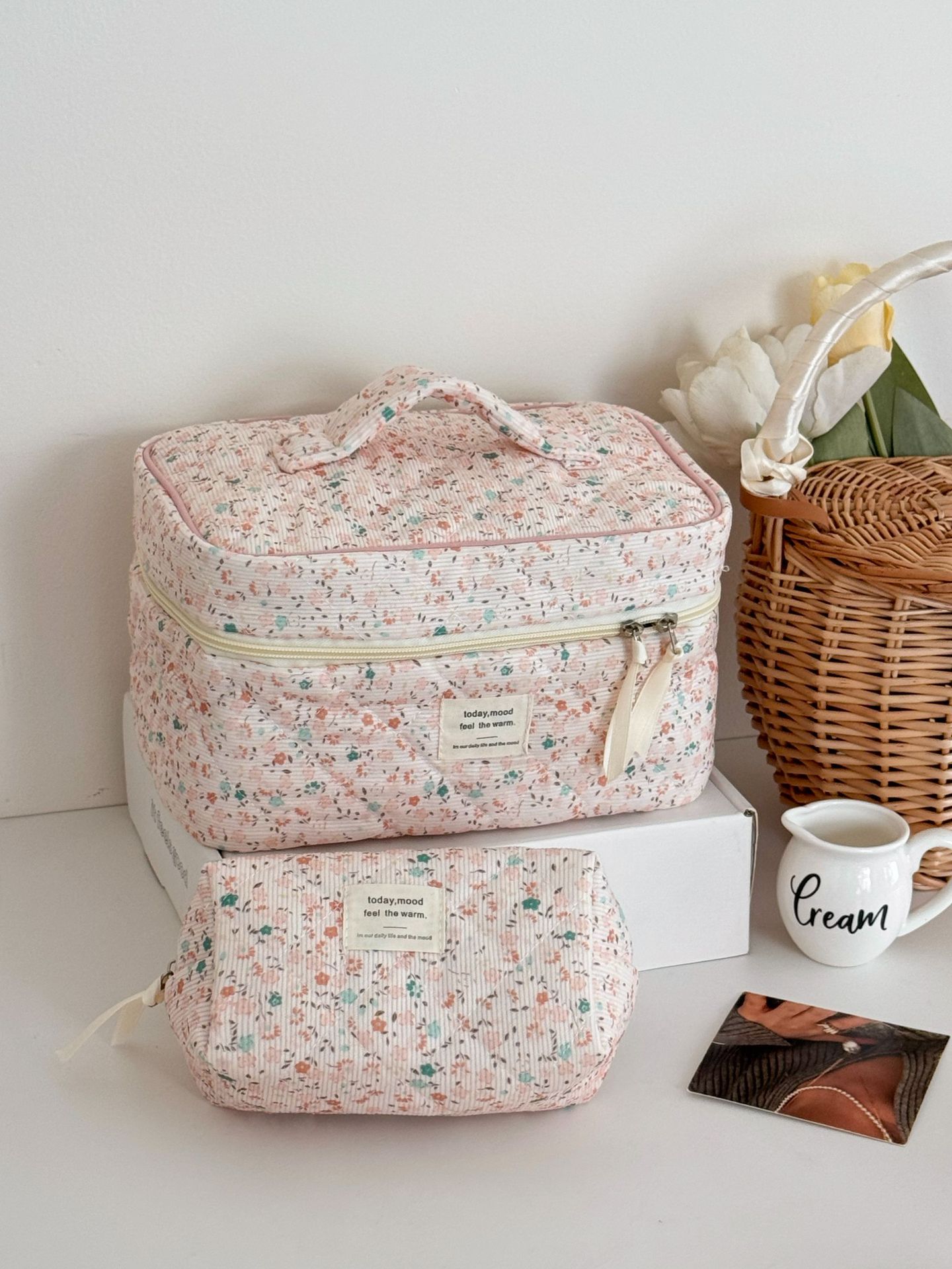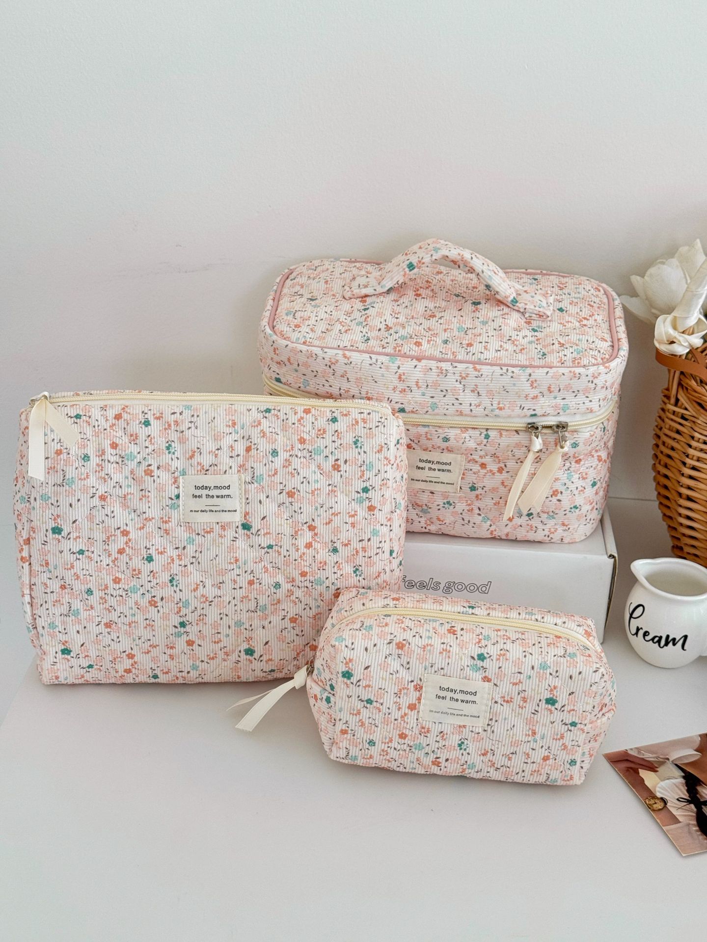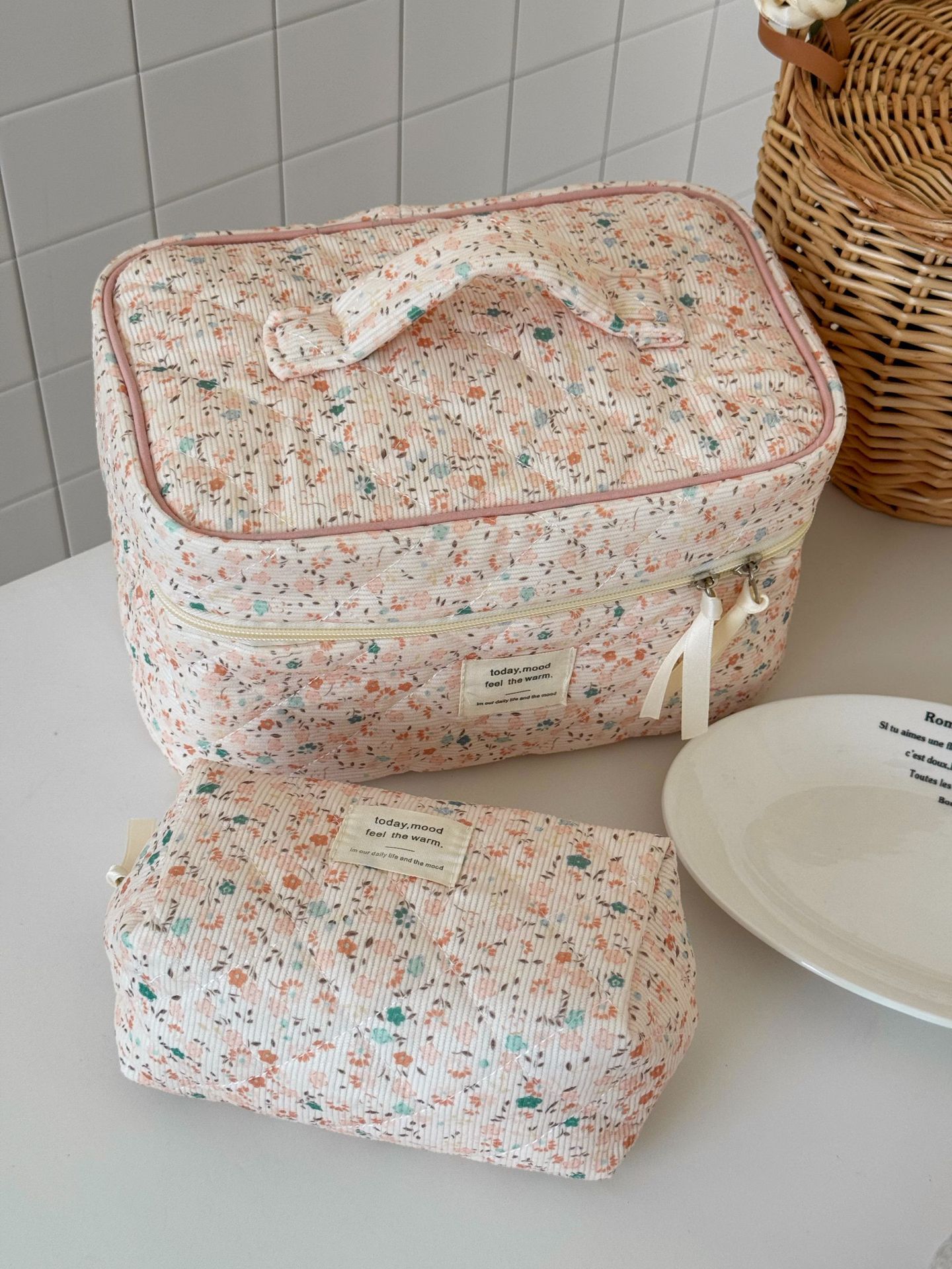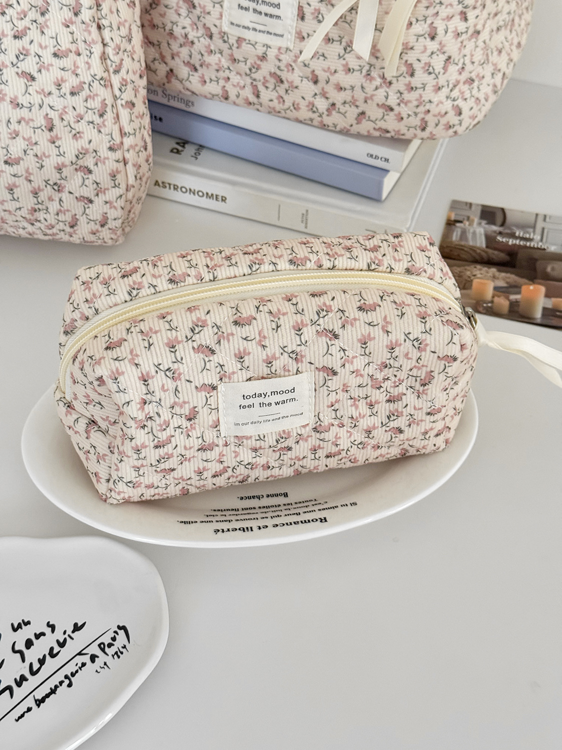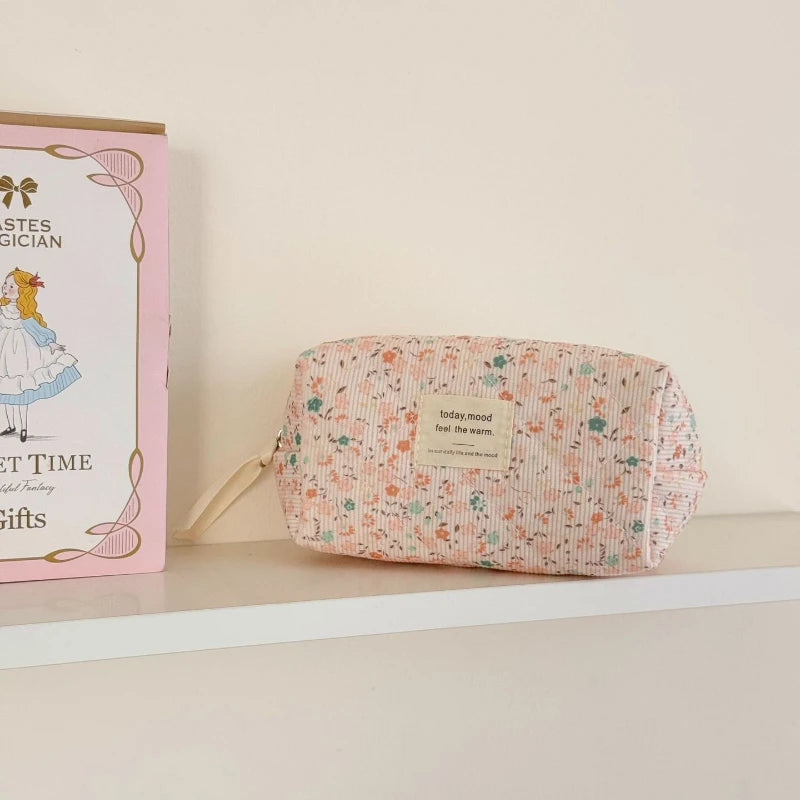 Cyflymder Retro Aesthetic Floral Pencil Case for Kids Girl Corduroy Flower Series Stationery Organizer Large Capacity Pen Bag Student