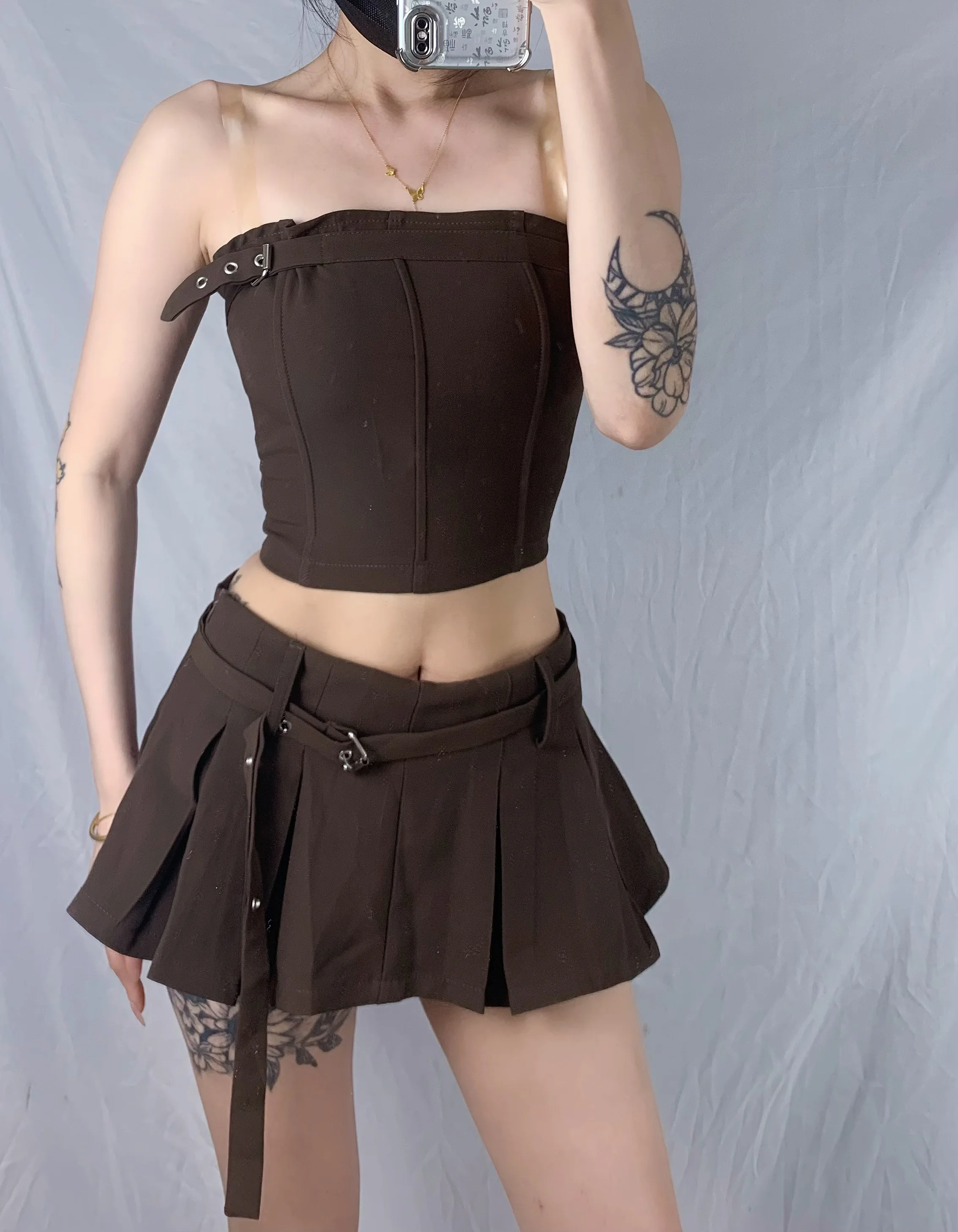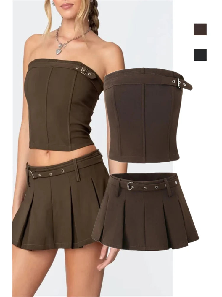 Cyflymder Retro American Hot Girl Slim Fit Strapl Cinched Waist A-Line Skirt SetWith Se Inner ortigh Waist Street