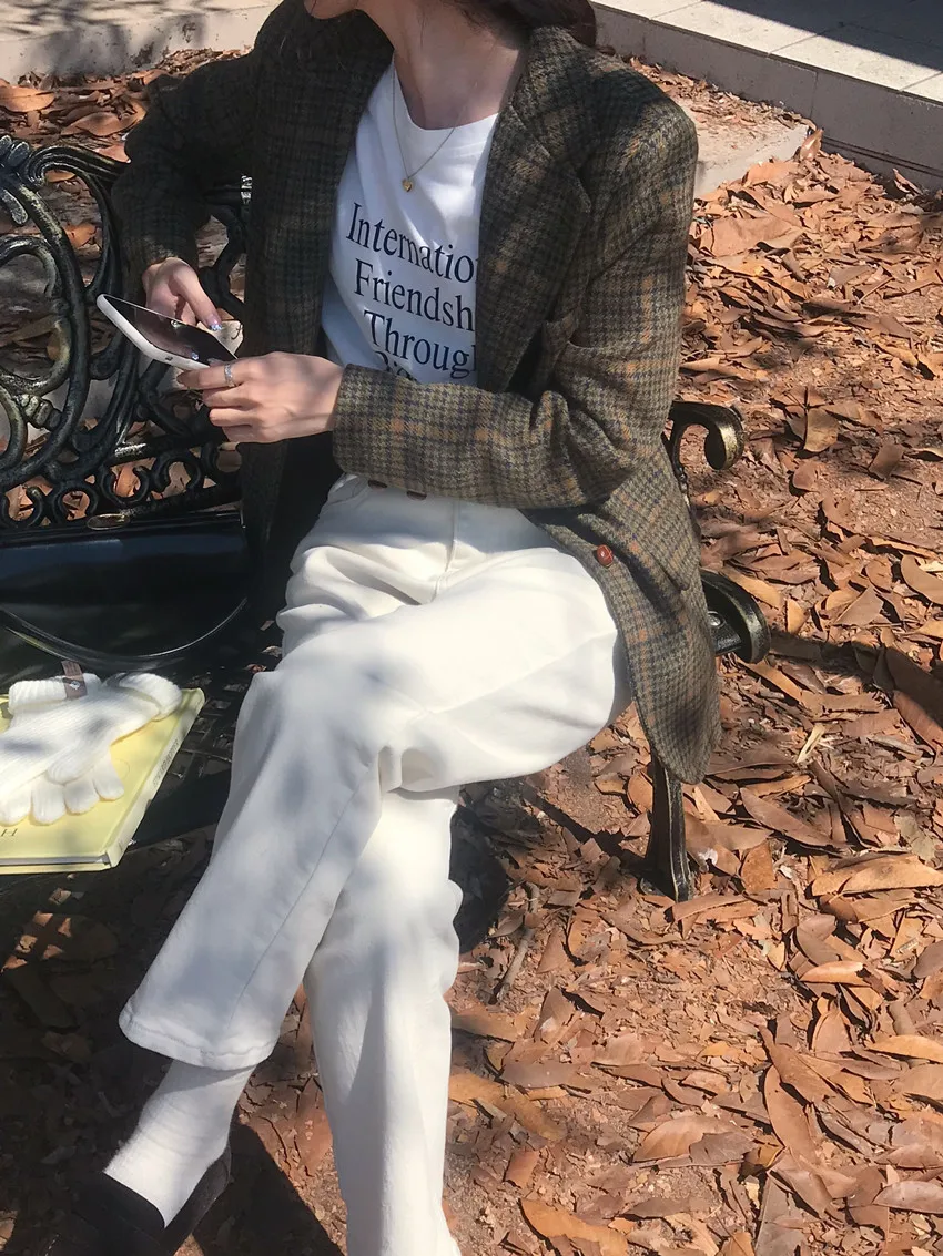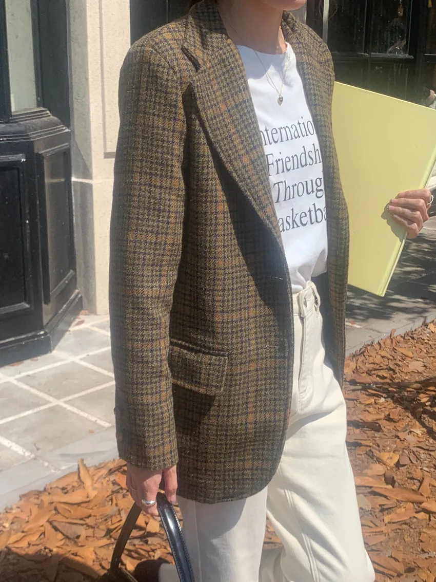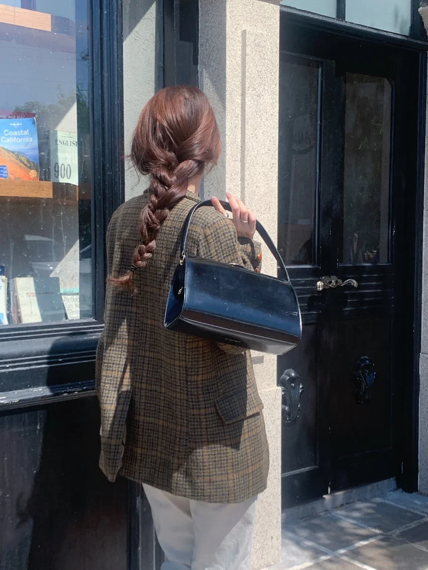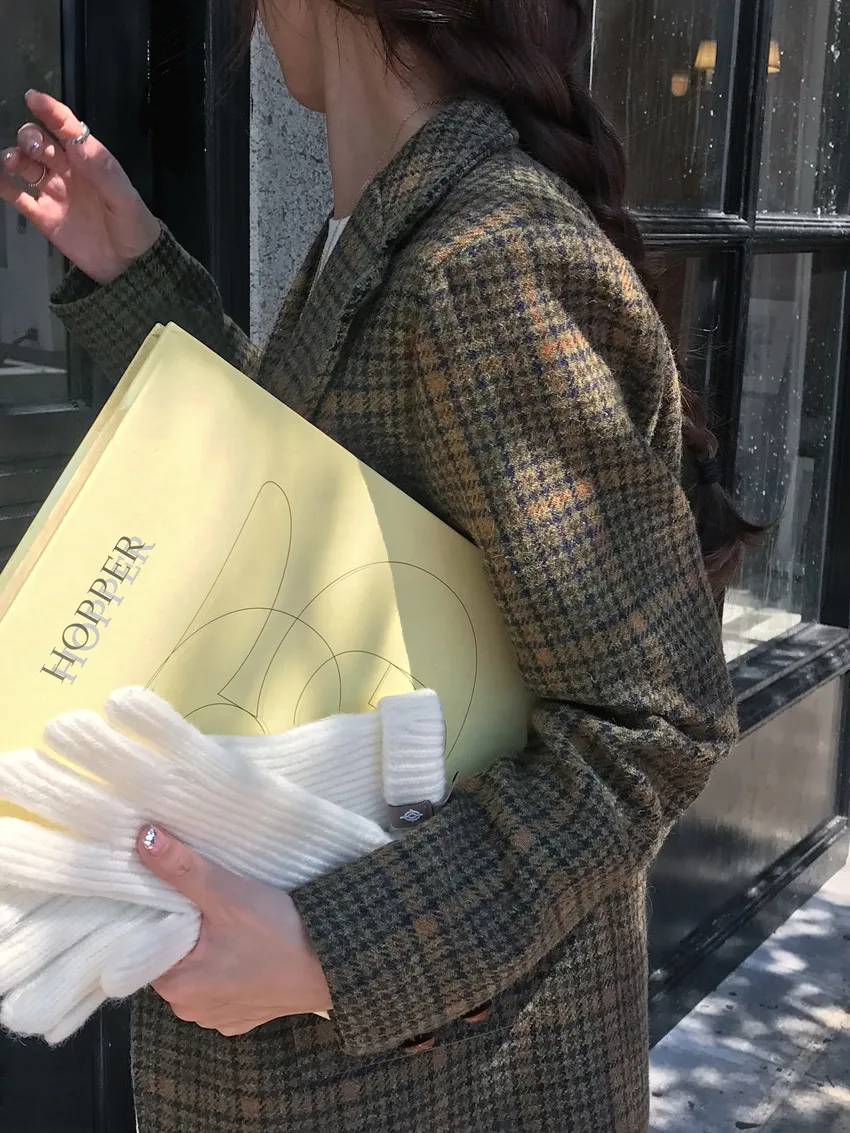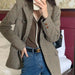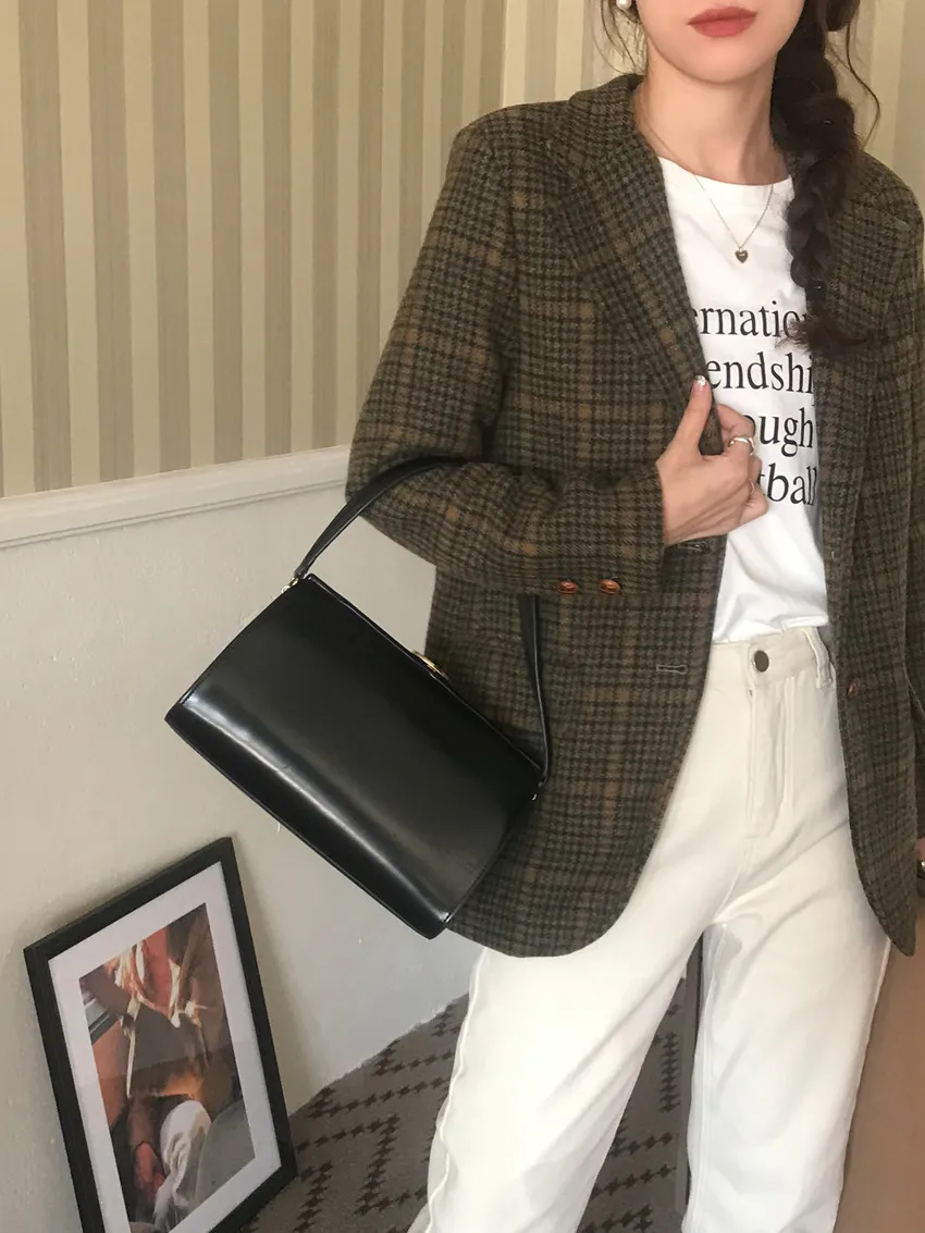 Cyflymder Retro Briti Sle Plaid Woolen Coat Women's Chic Lapel Single Button Suit Jaet Trendy Mid-Length Long Sve Busin Wear