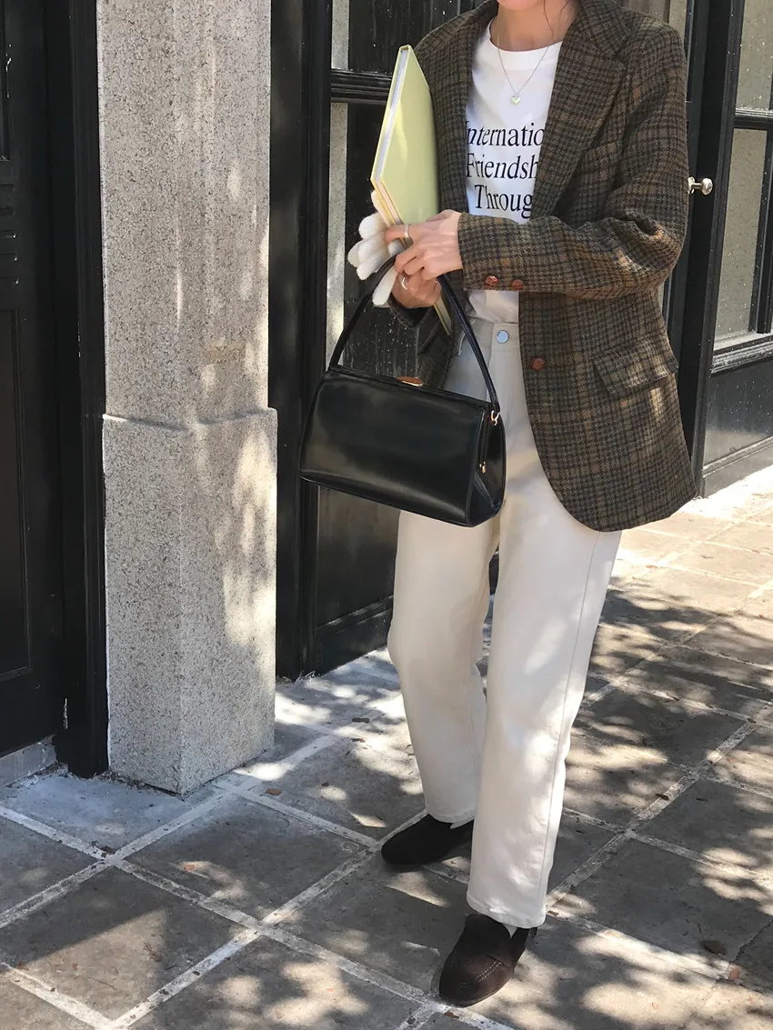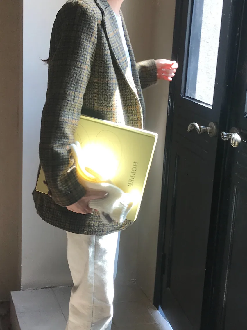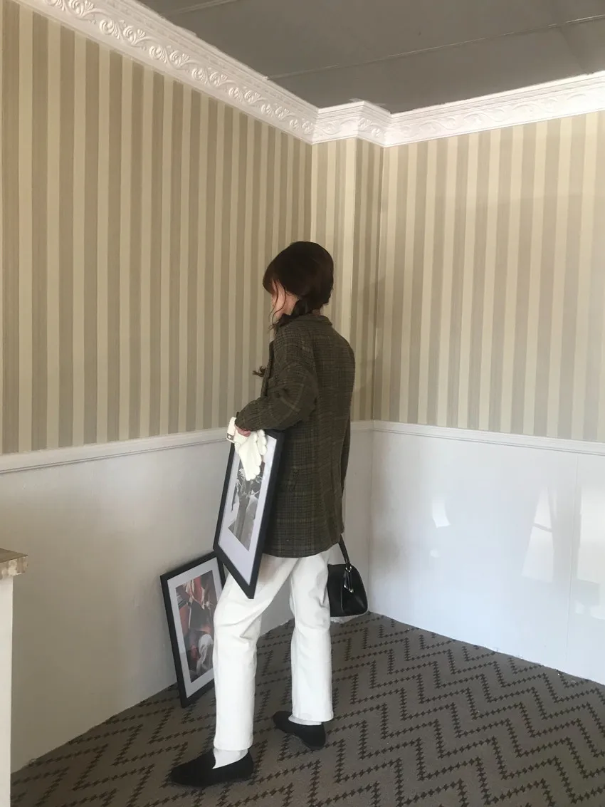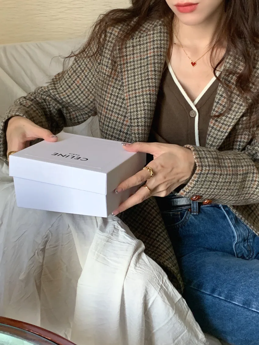 Cyflymder Retro Briti Sle Plaid Woolen Coat Women's Chic Lapel Single Button Suit Jaet Trendy Mid-Length Long Sve Busin Wear