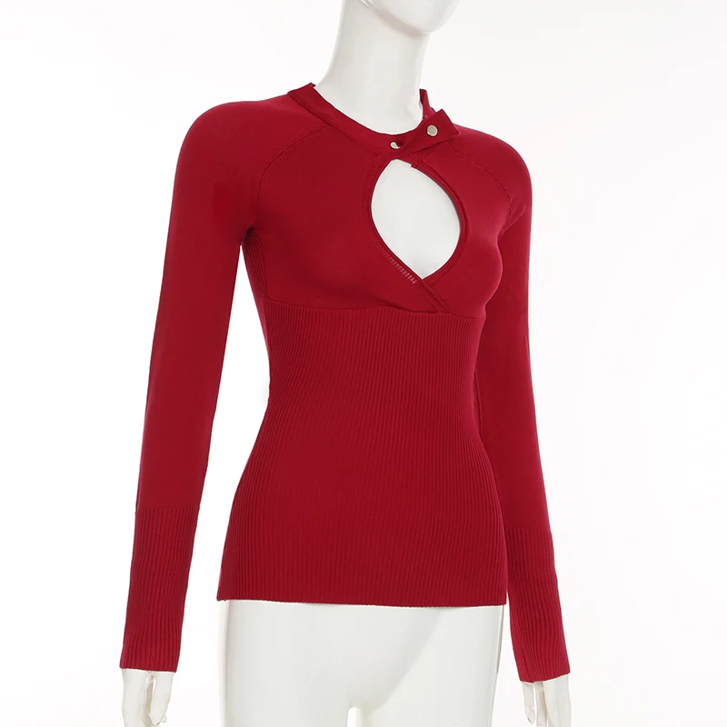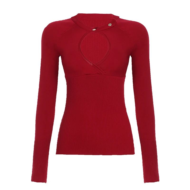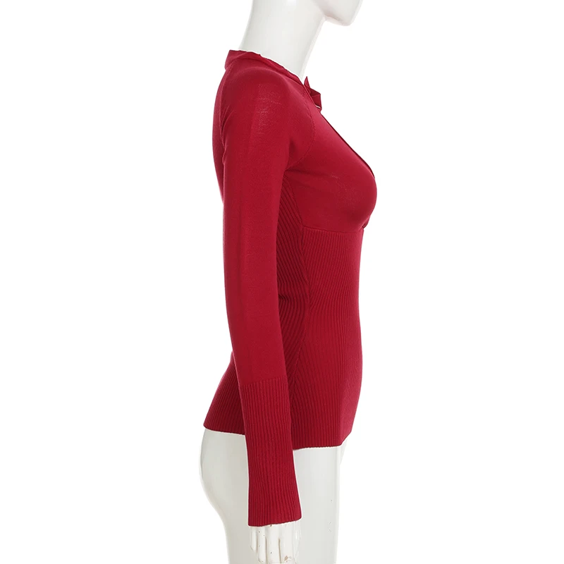 Cyflymder Retro Button-up Hollow Out Knitwear Shirts Women Casual Skinny Basic Long Sleeve Cropped Tops Streetwear Tee Shirt Lady