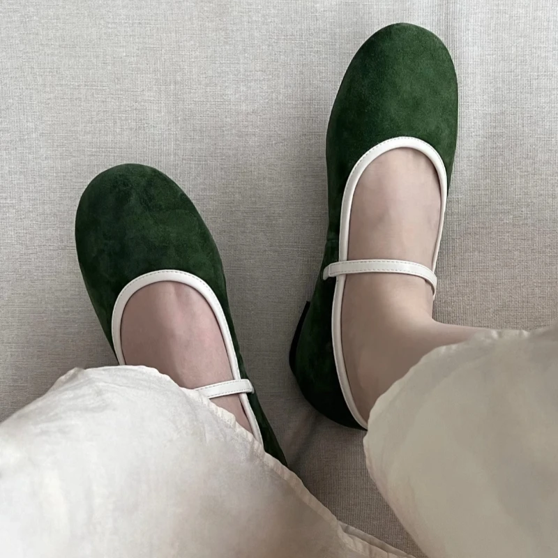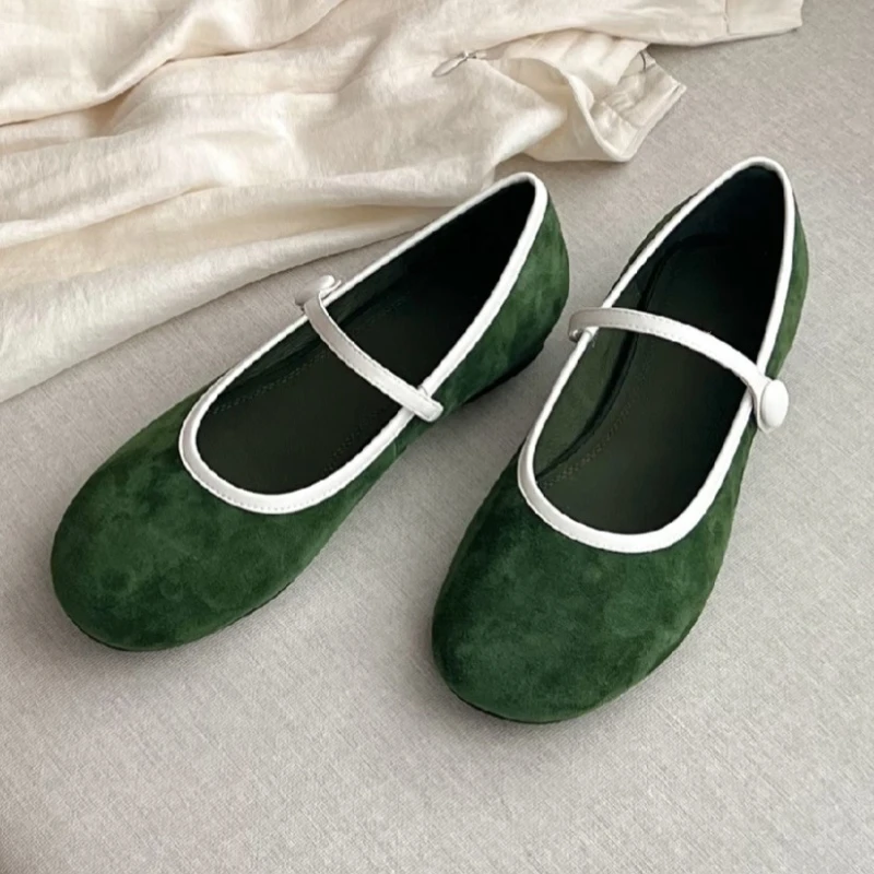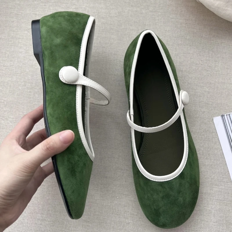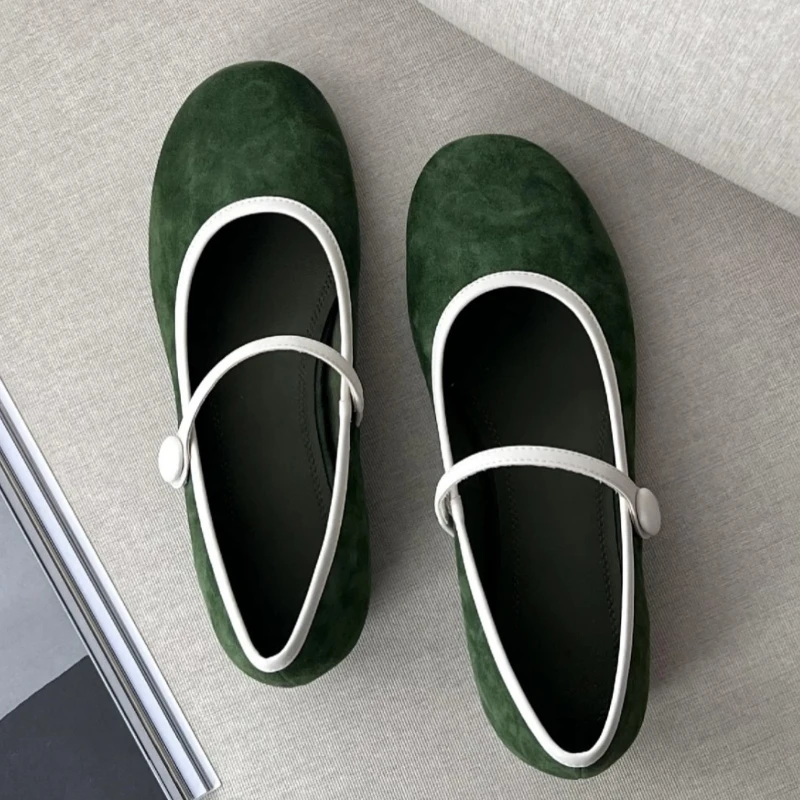 Cyflymder Retro Faux Suede Ballet Flats Women Comfort Round Toe Shallow Mary Jane Shoes Fashion Buckle Elegant Dress Pumps Loafers Ladies