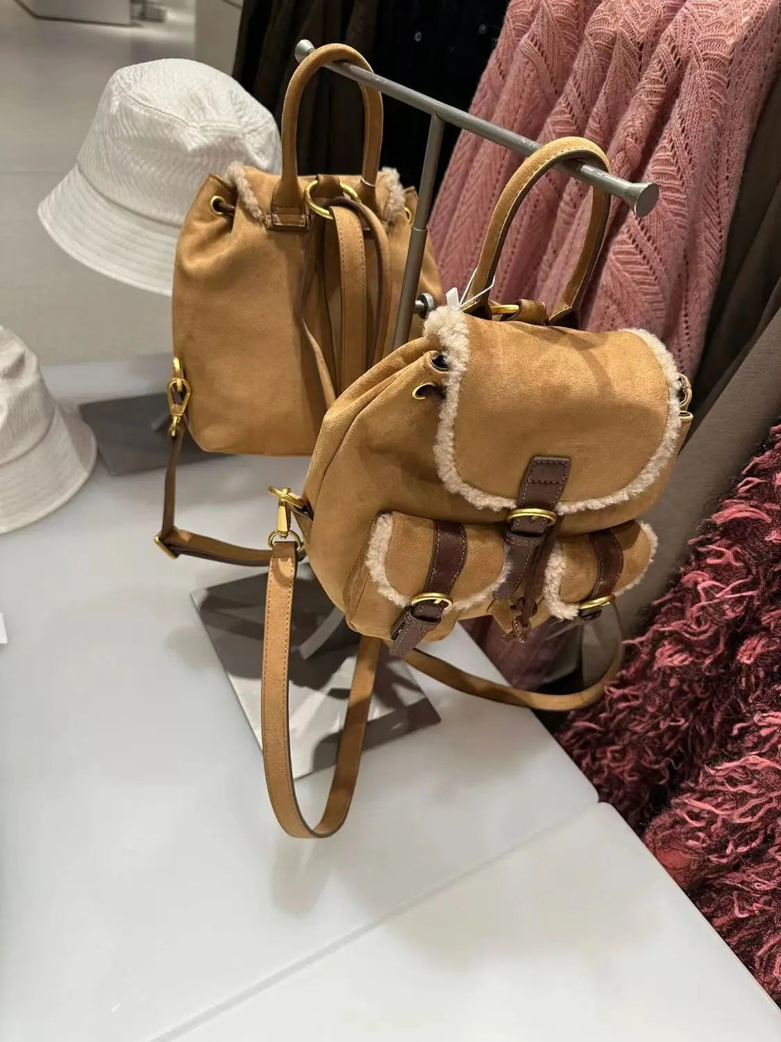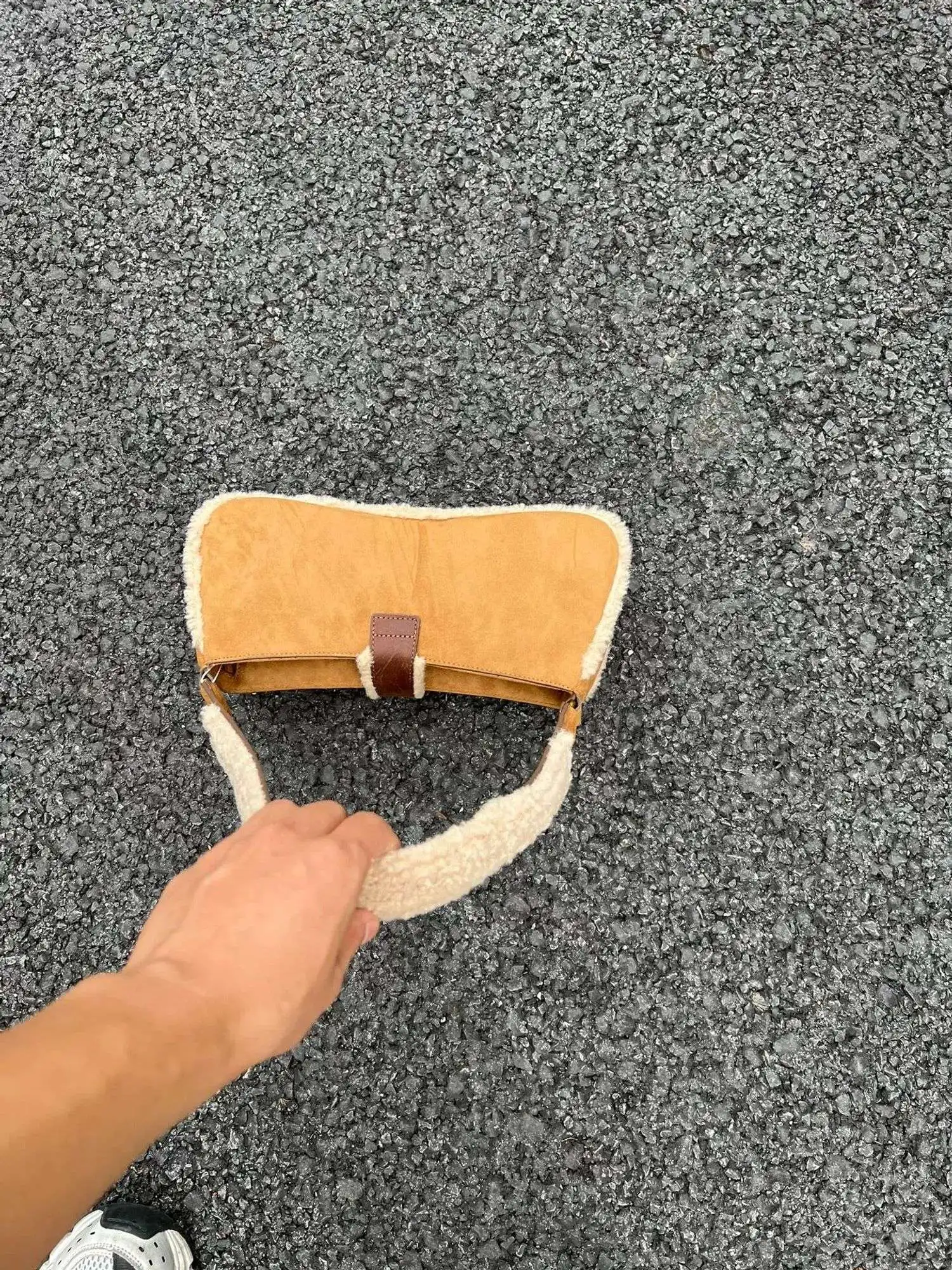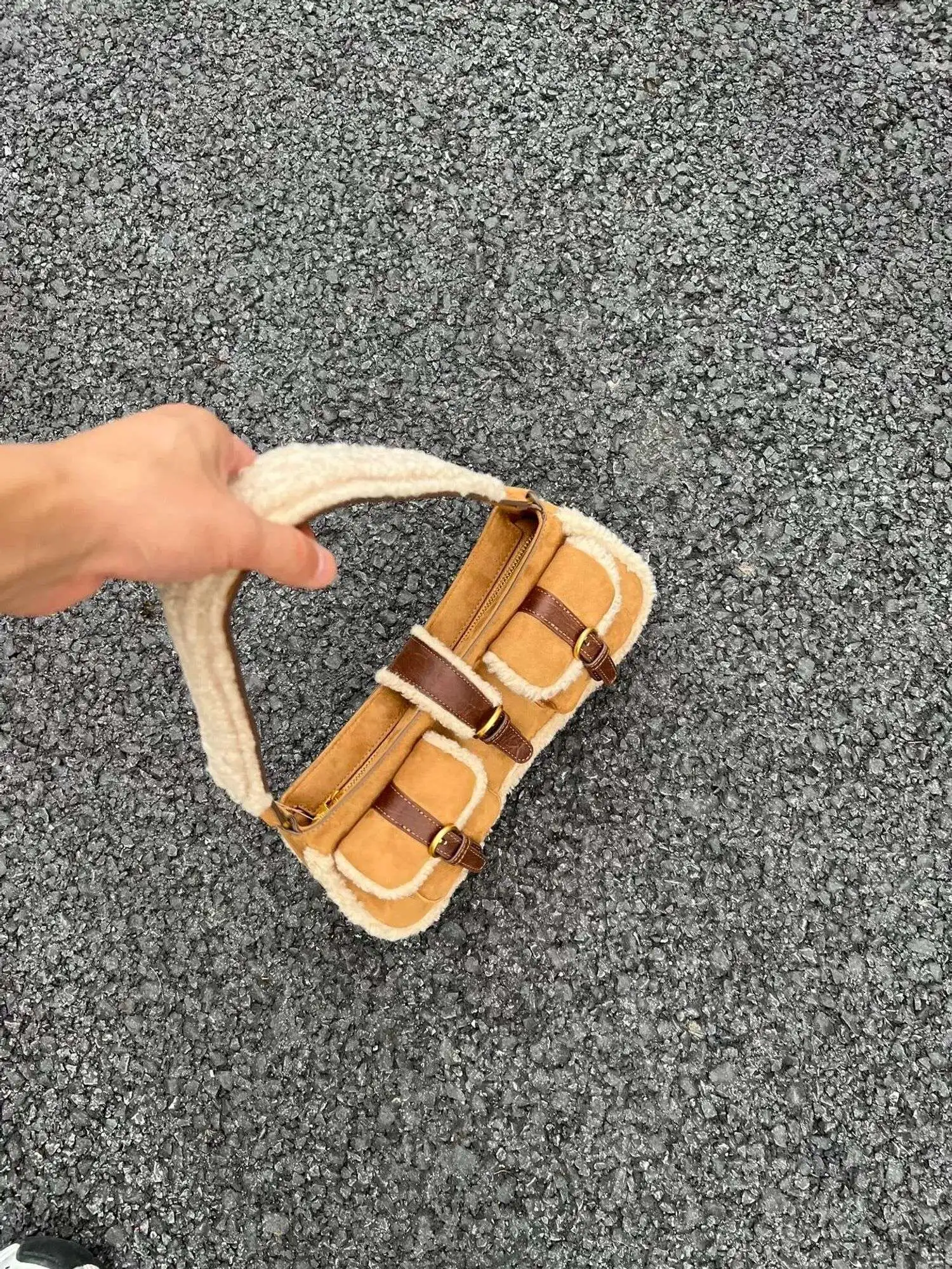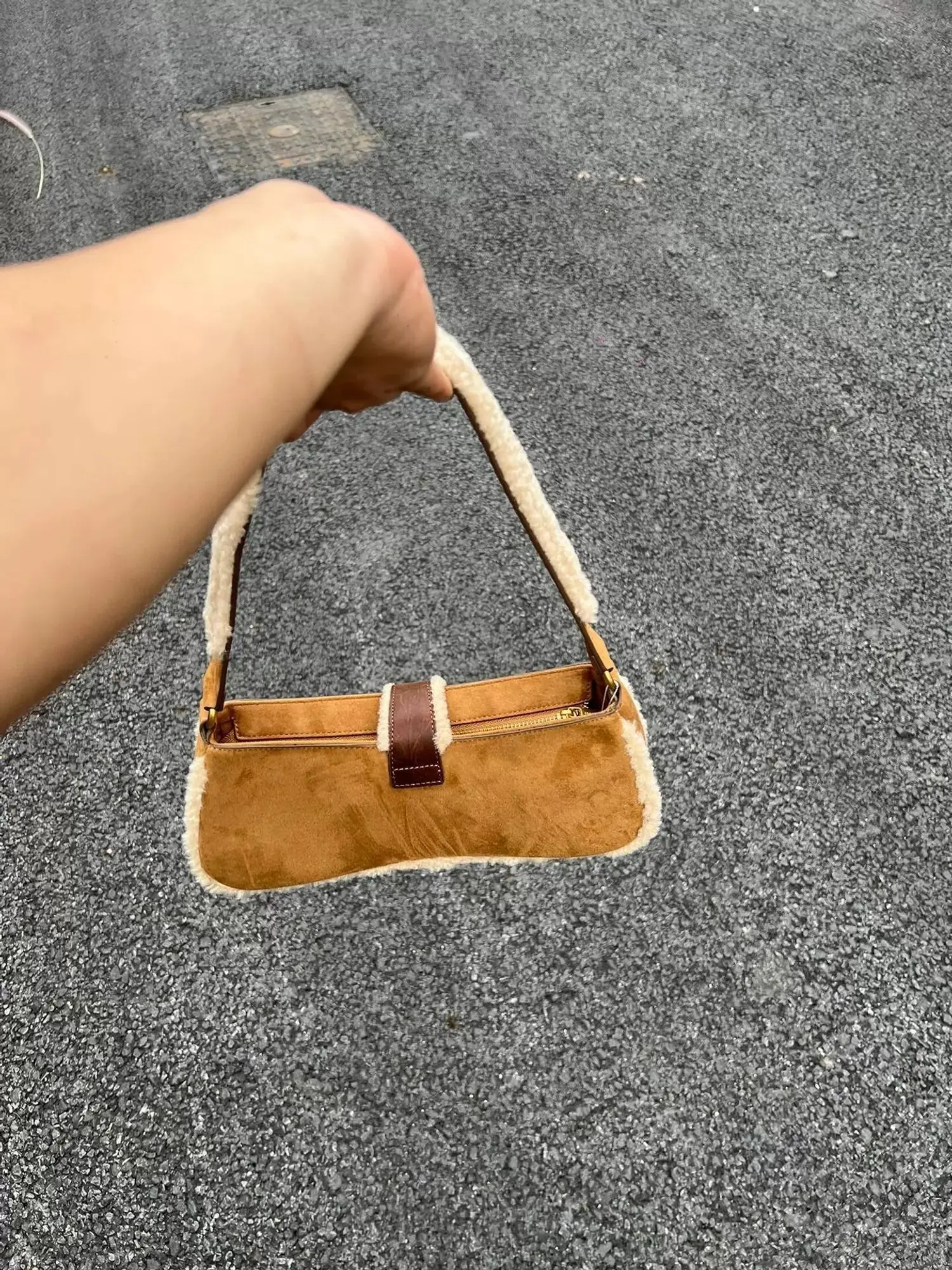 Cyflymder Retro Lamb Patchwork Brown Shoulder Bag Women Vintage Pocket Chic Y2k Handbag Female Hot Girls Casual Underarm Bag 2025