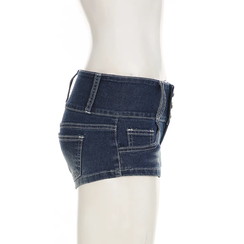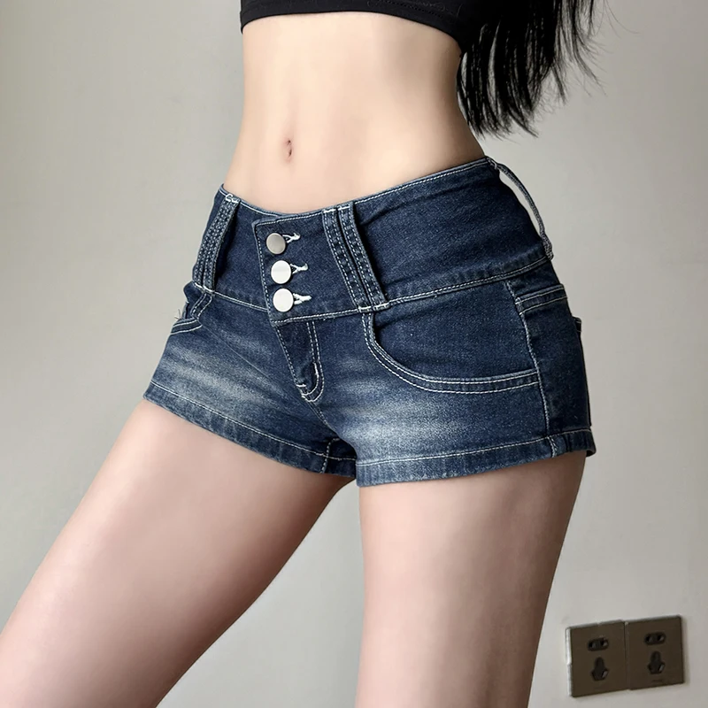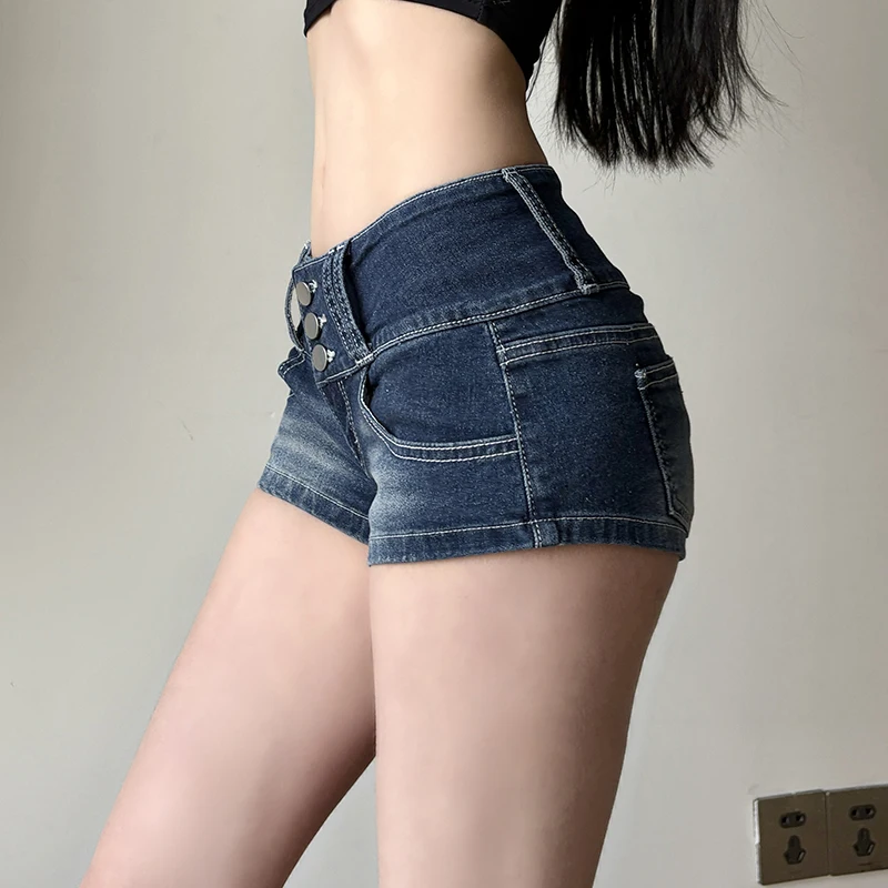 Cyflymder Retro Low-waist Breasted Button Denim Shorts Y2k Slim Jean Hot Pants Summer Women 2000s Grunge Kpop Japanese Gyaru 2025