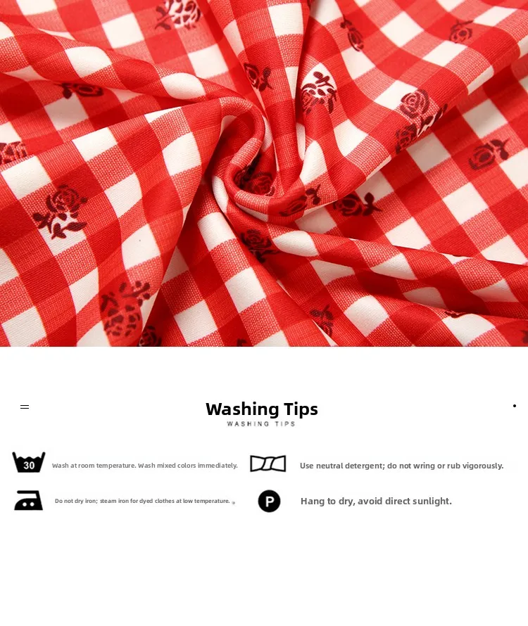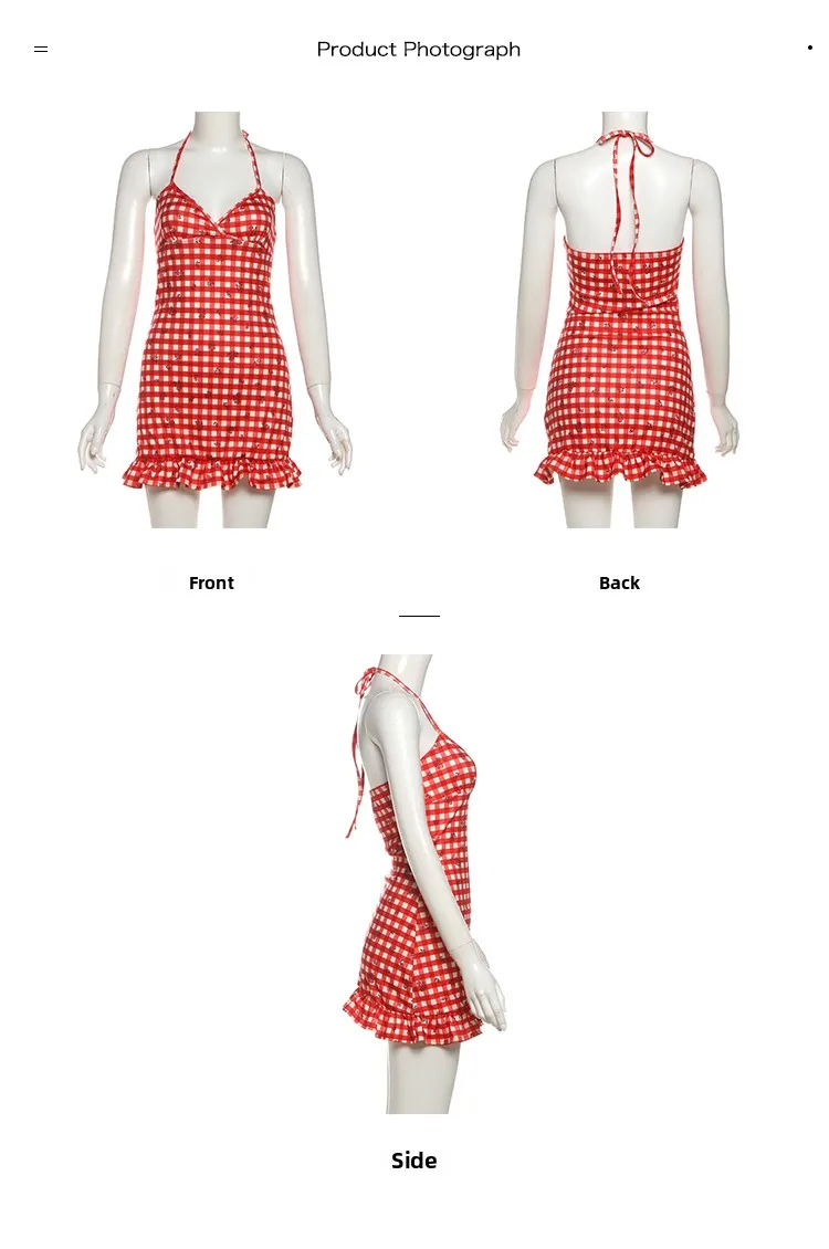 Cyflymder Retro Red Plaid V-ne Strap Dr Women's Sweet Spicy Slimming Gored Skirt Dr Summer Casual A-line Skirt Polyester Fiber