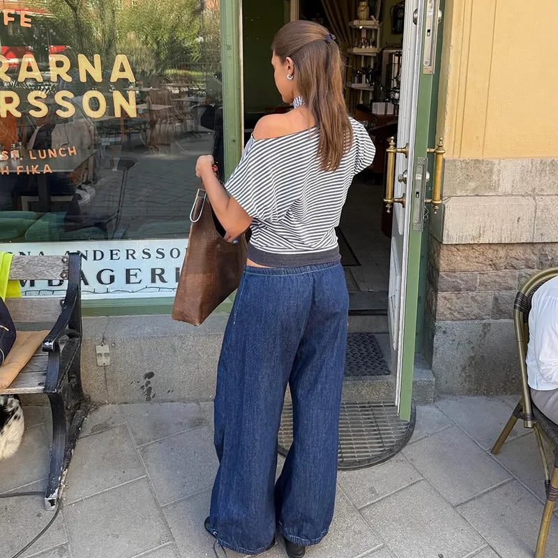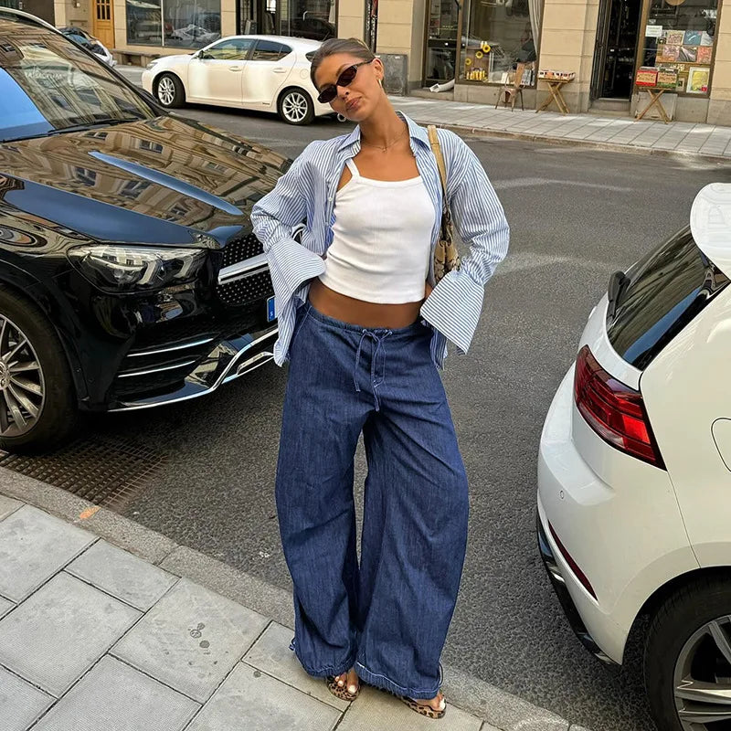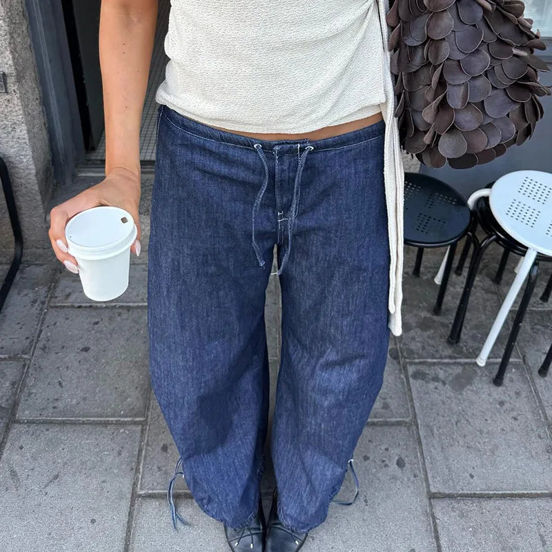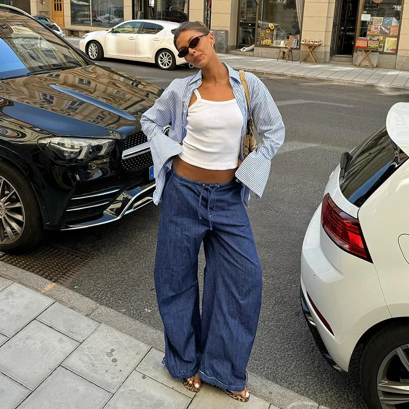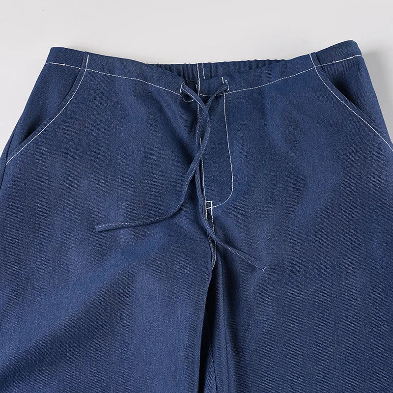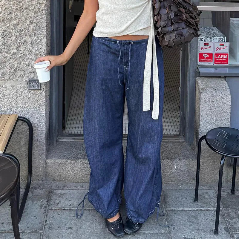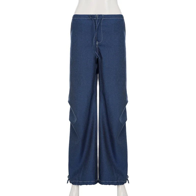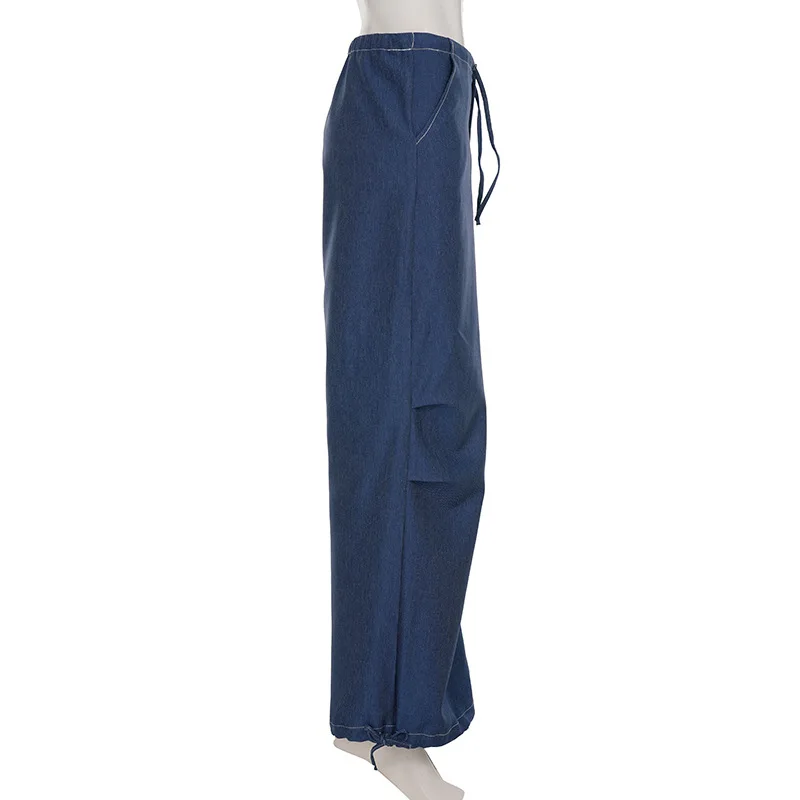 Cyflymder Retro street style elastic waist strap straight leg low waist personality spicy girl women's loose pleated casual pants