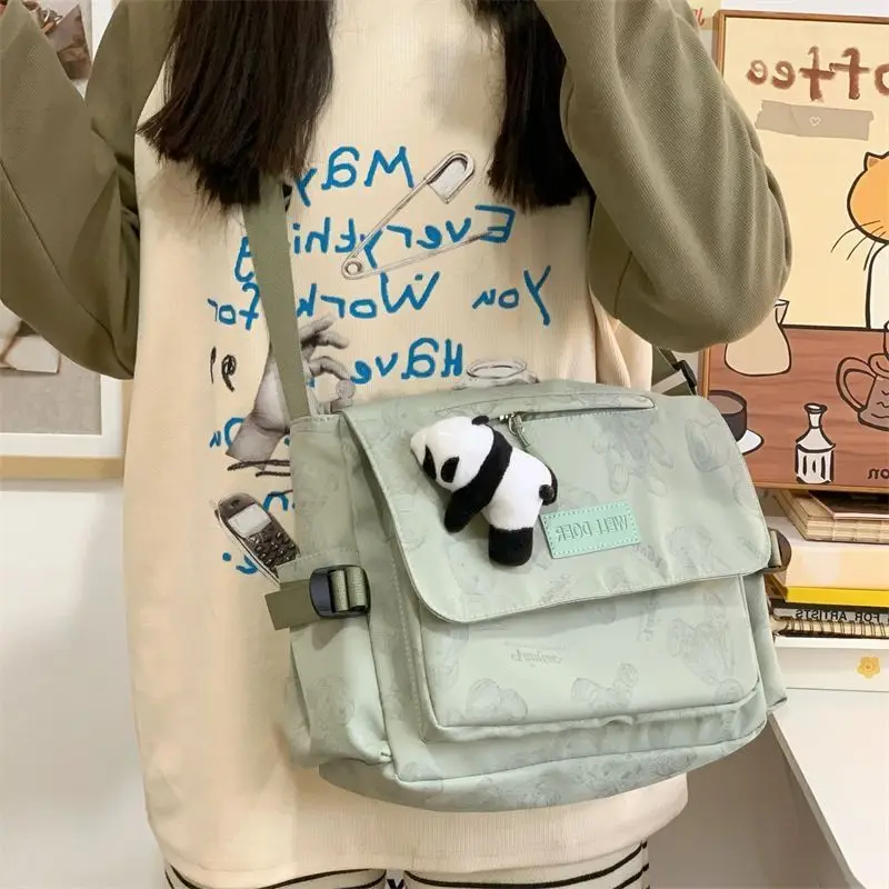 Cyflymder Retro teddy bear cute college style girl crossbody bag Japanese Ins student large capacity versatile mailman bag