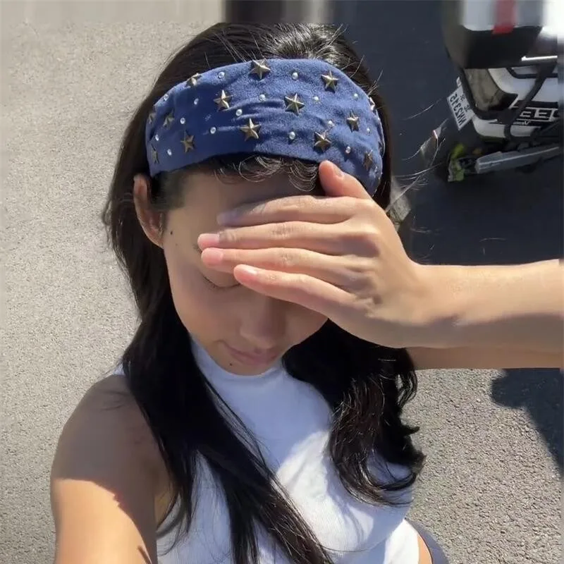 Cyflymder Retro y2K Star Rivet Wide Edge Personality Blue Pink Headband New Charms Hipster Vintage American Style Hair Hoops Headband