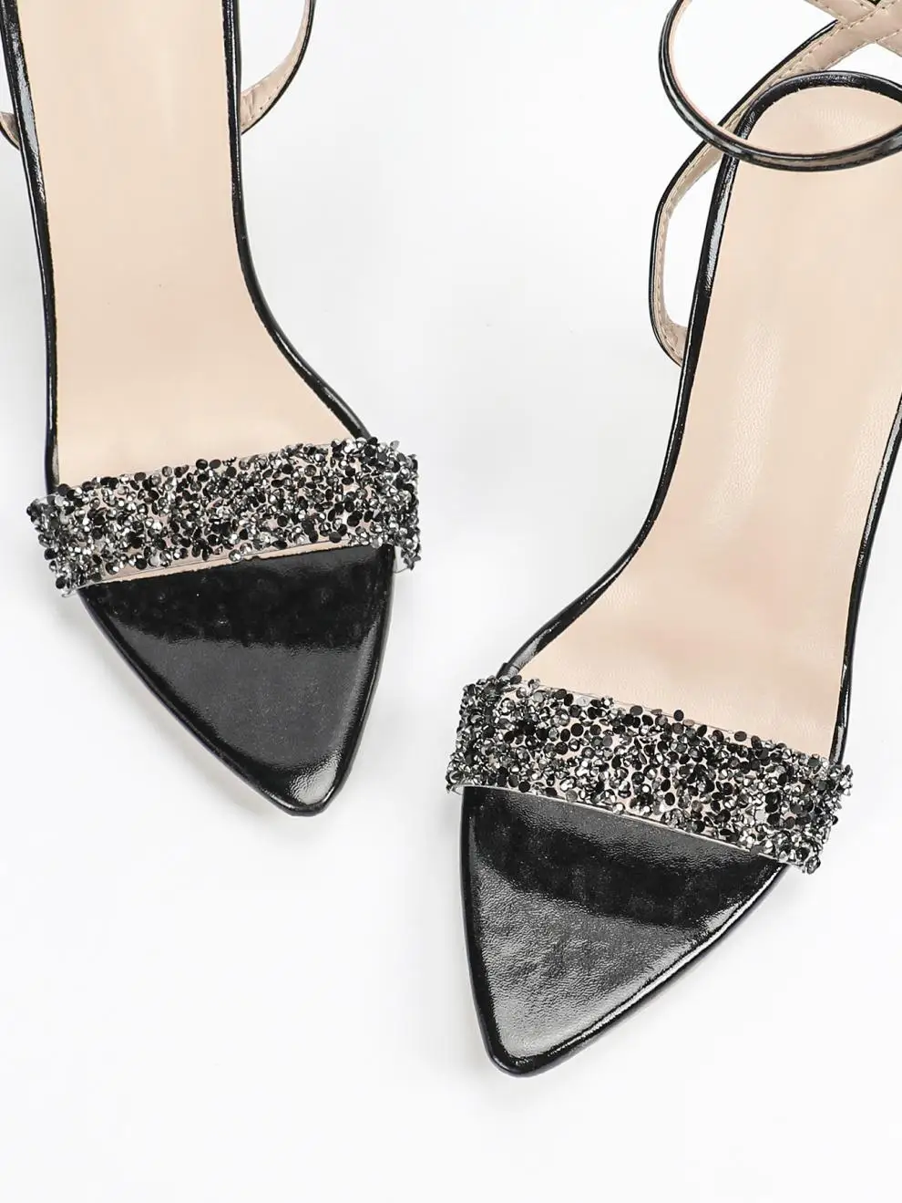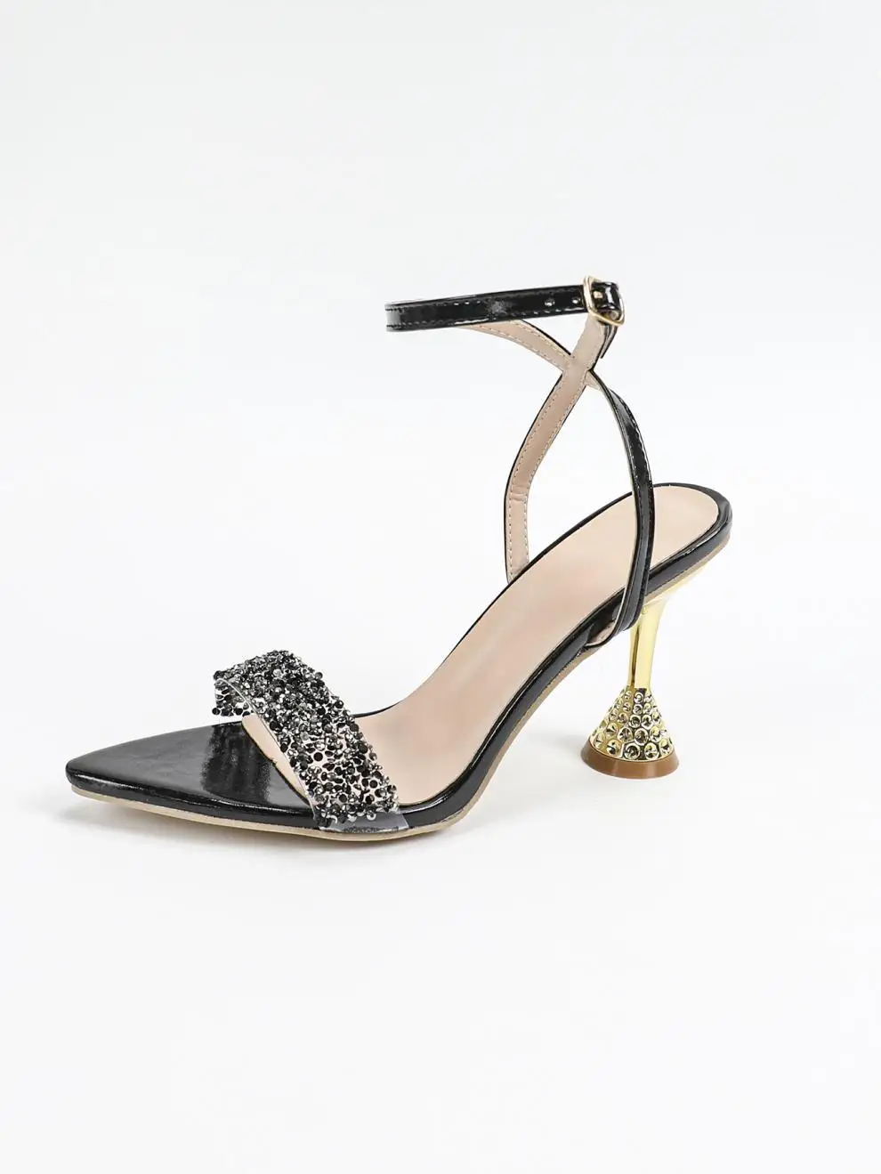 Cyflymder Rhinestone Sandals Comfort Shoes for Women Summer Heels Large Size Suit Female Beige Girls Fashion Big Black High Low Pointed