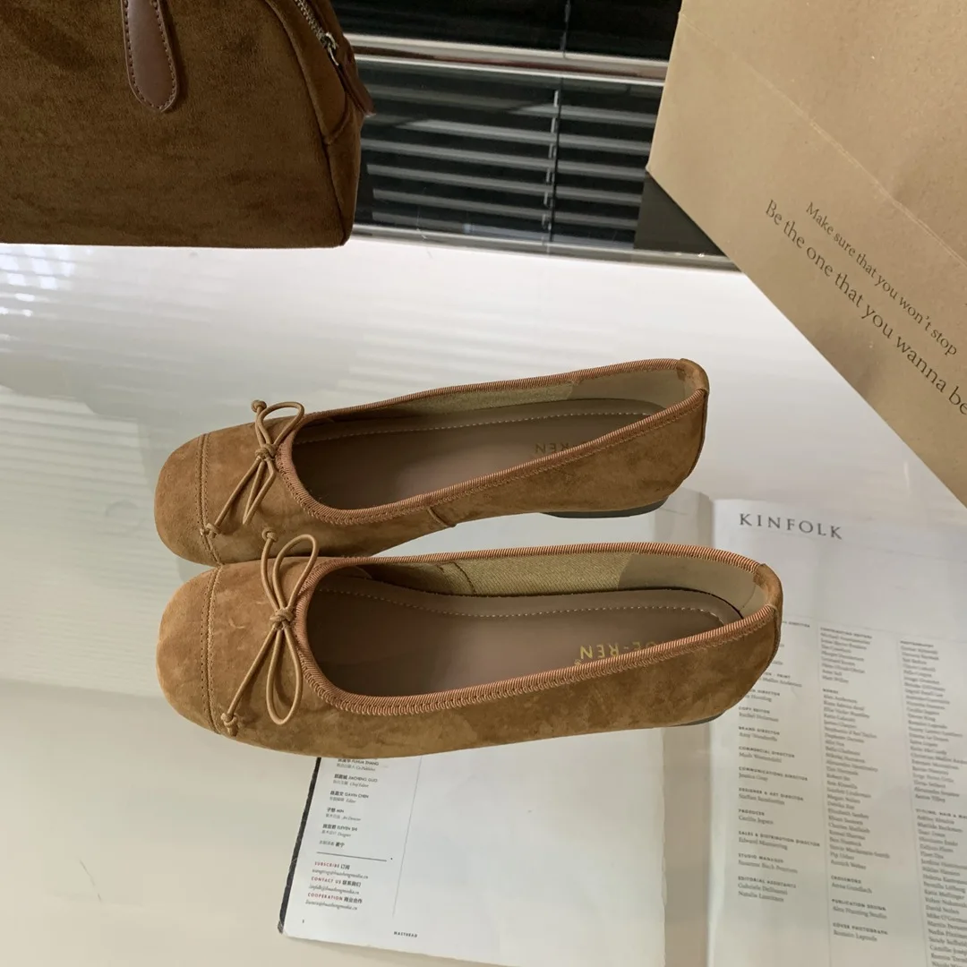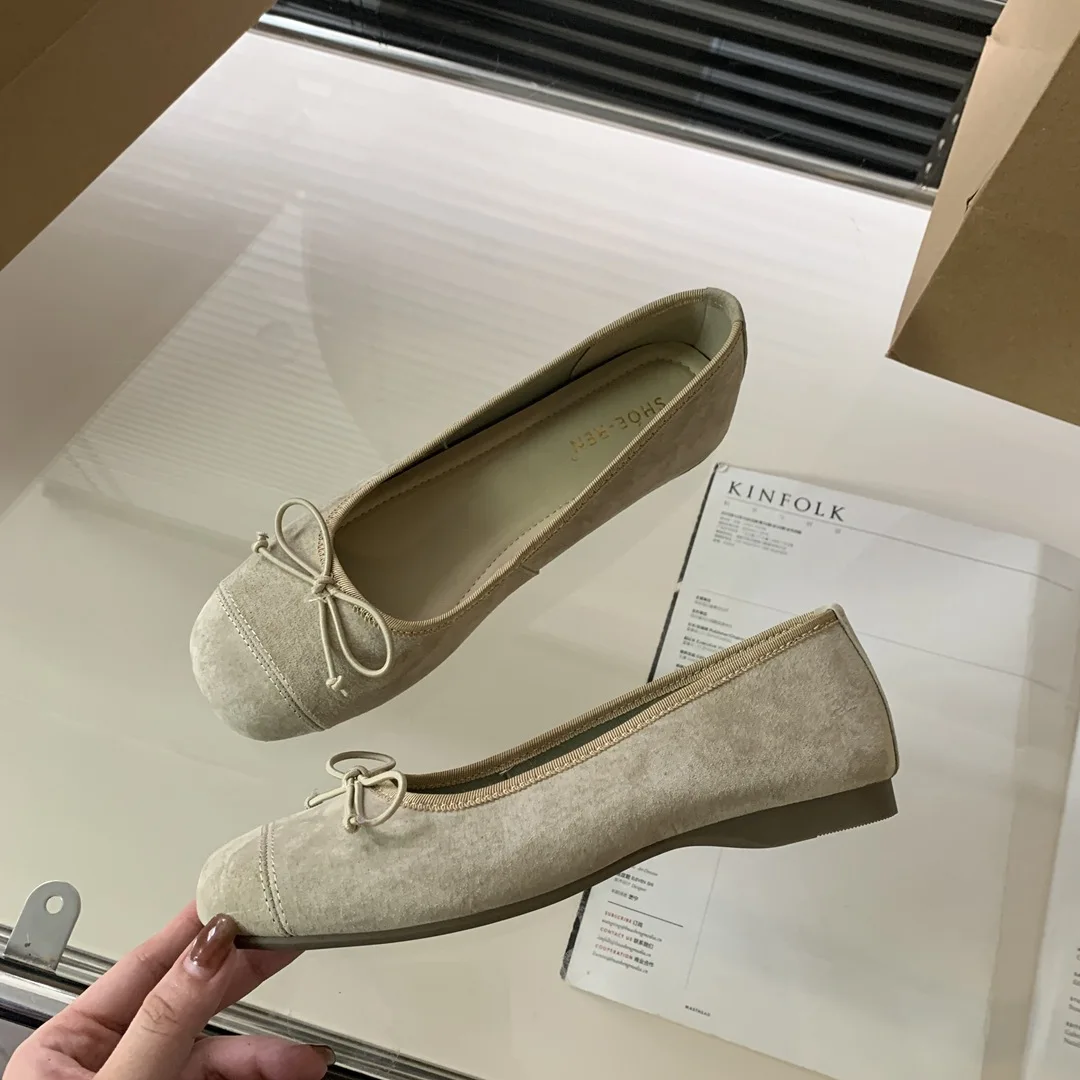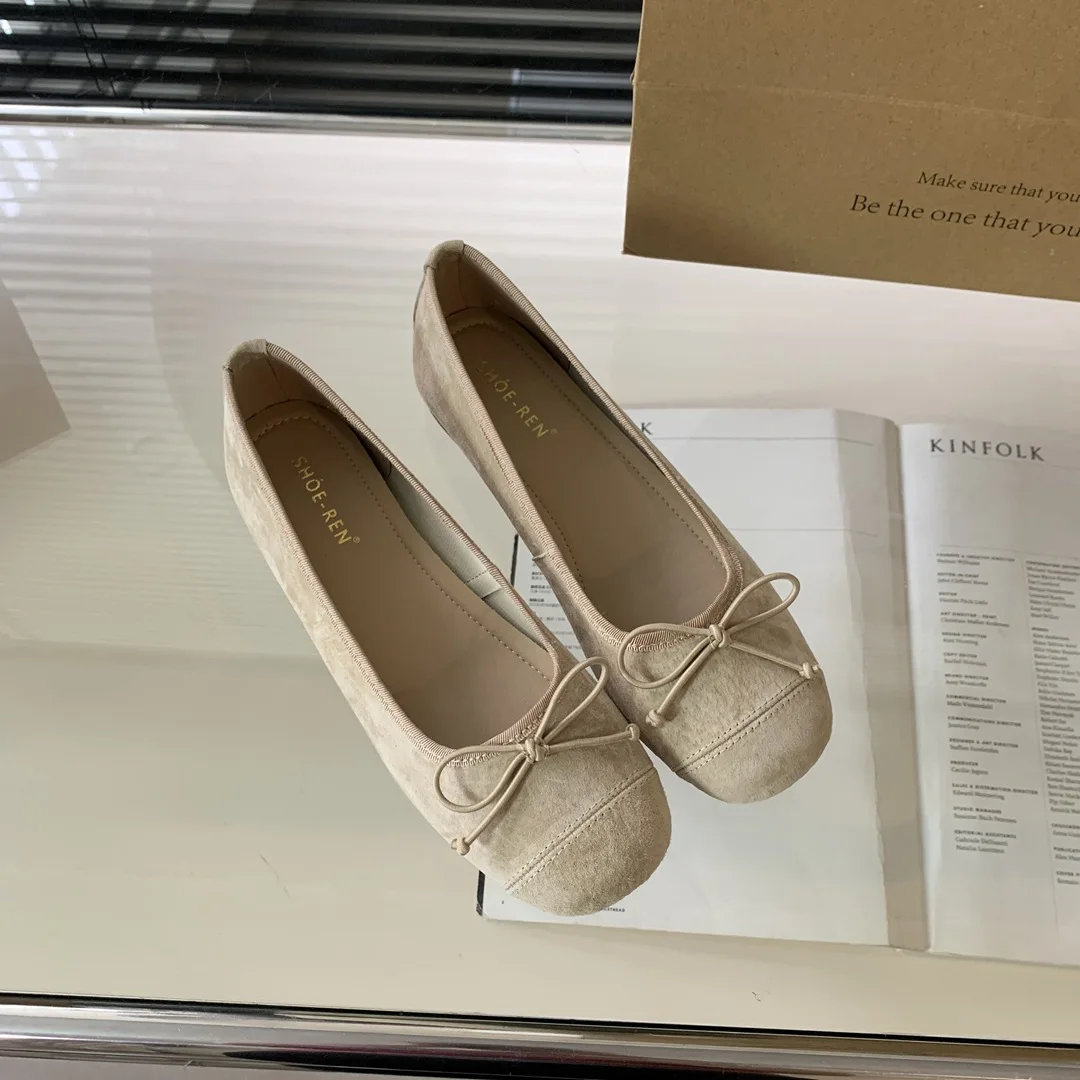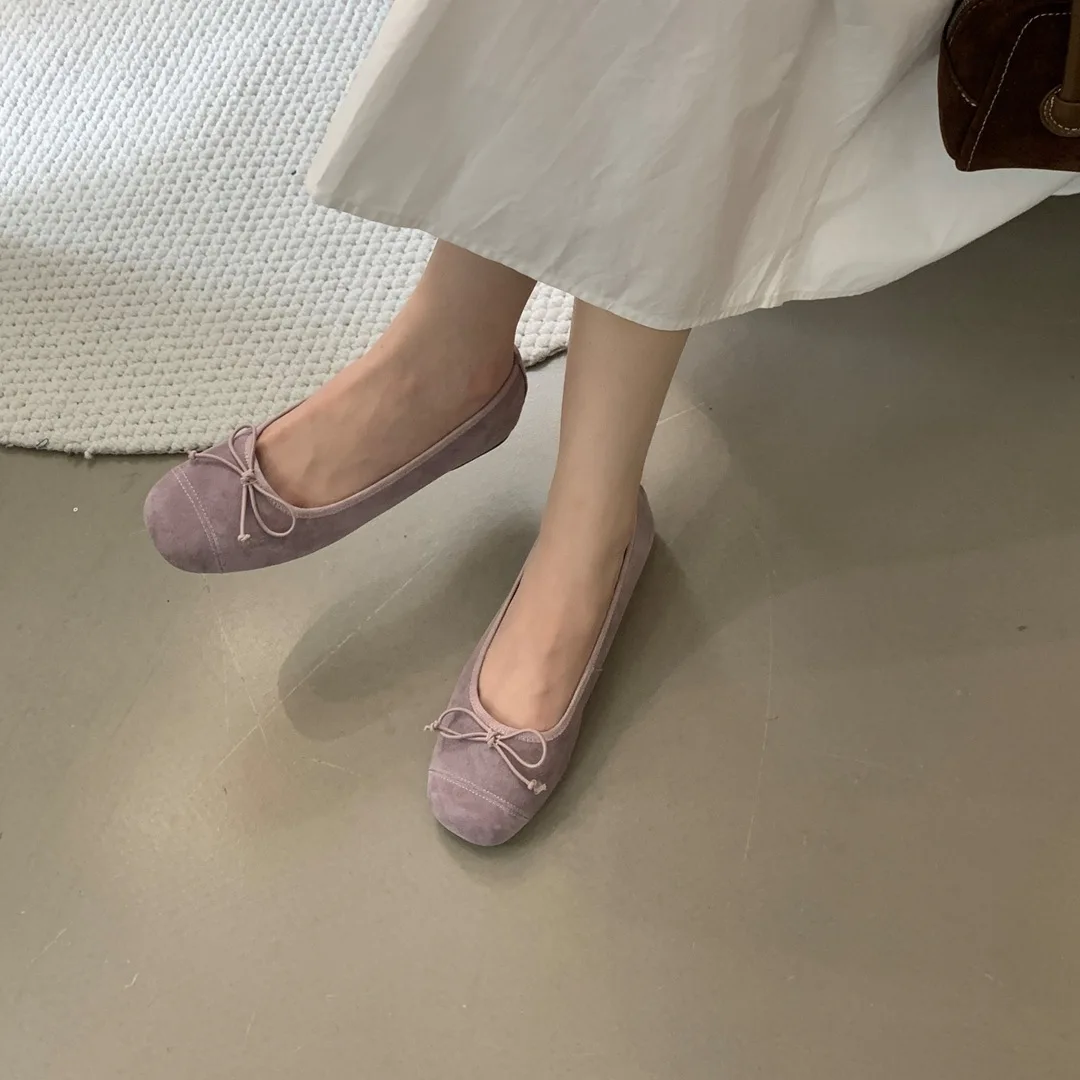 Cyflymder Round Toe Bow-Knot Women Casual Female Sneakers Flat Shoes Autumn Shallow Mouth Butterfly Dress Fall New Lace-Up PU Leisure Floc