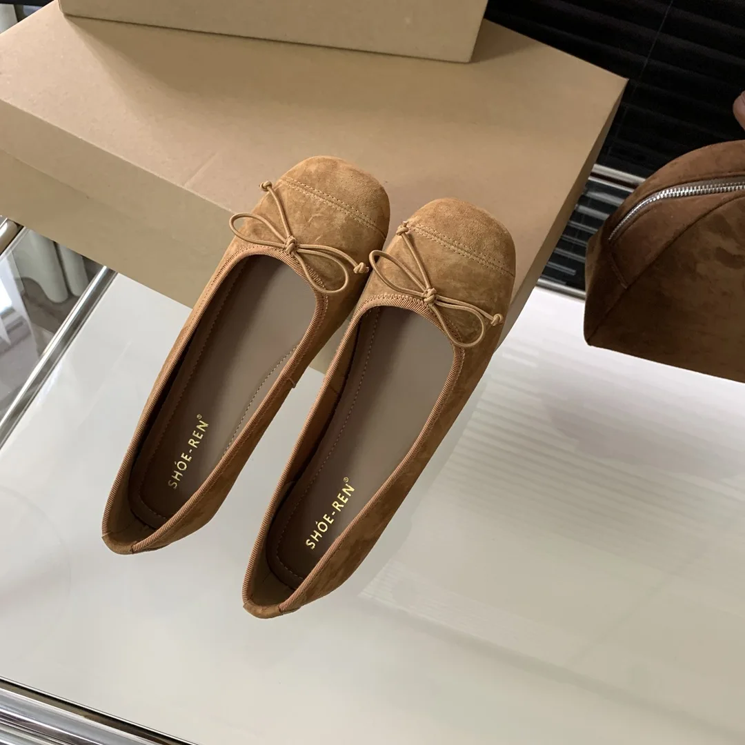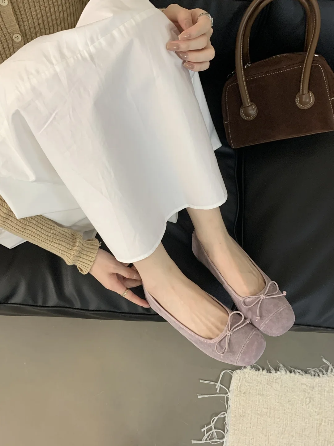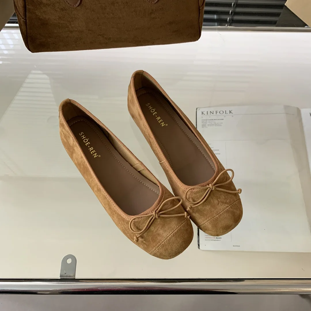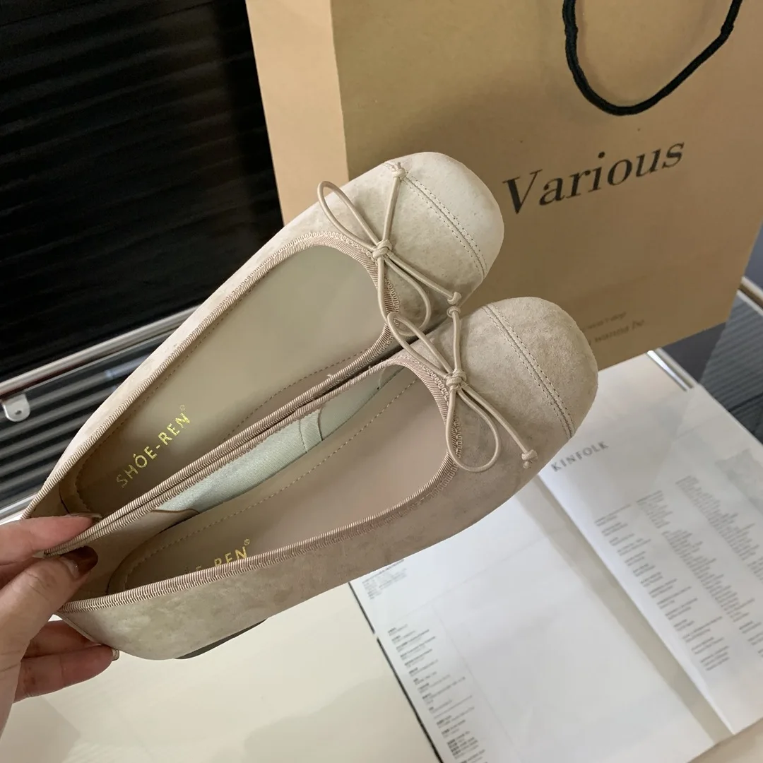 Cyflymder Round Toe Bow-Knot Women Casual Female Sneakers Flat Shoes Autumn Shallow Mouth Butterfly Dress Fall New Lace-Up PU Leisure Floc