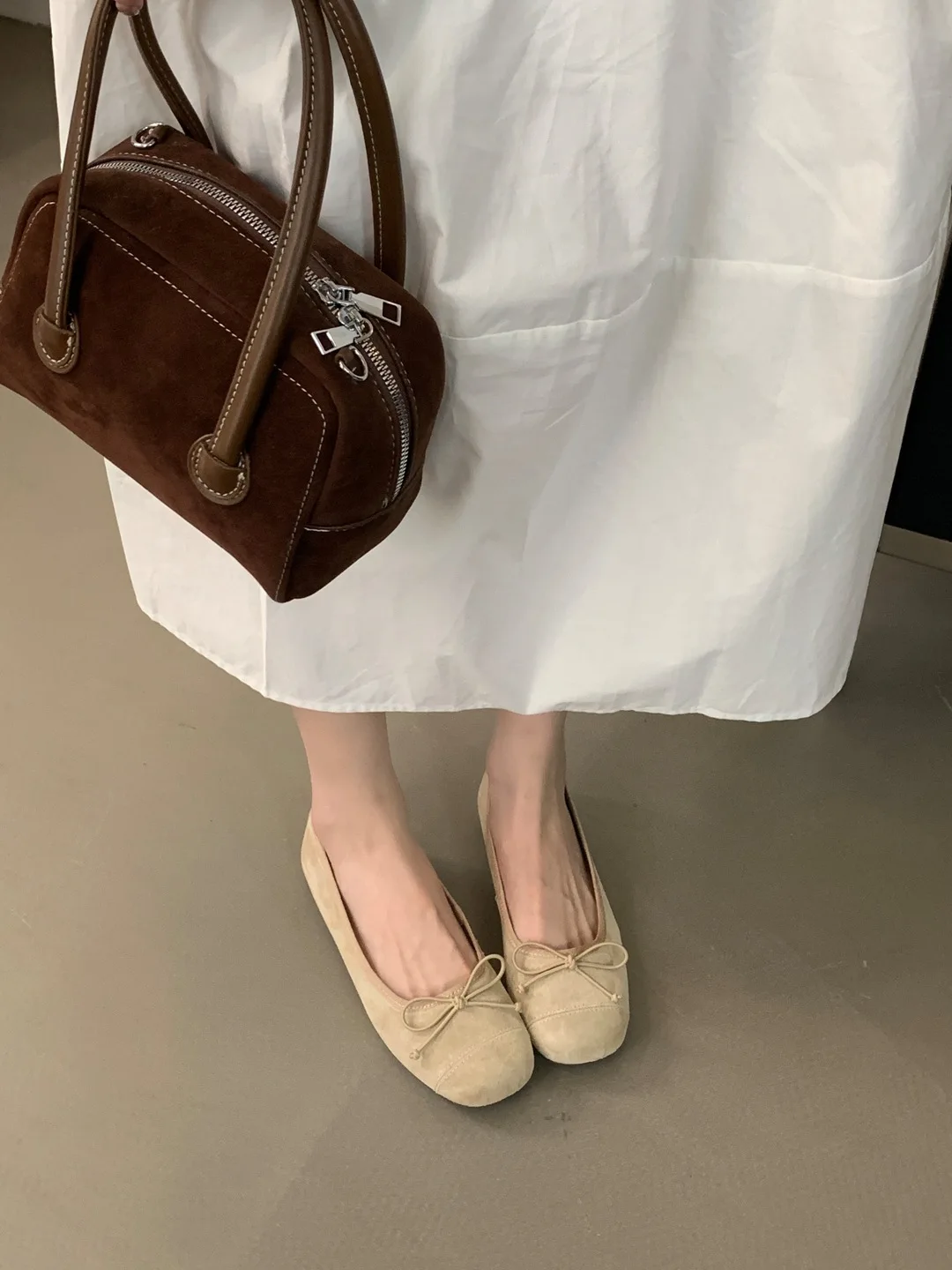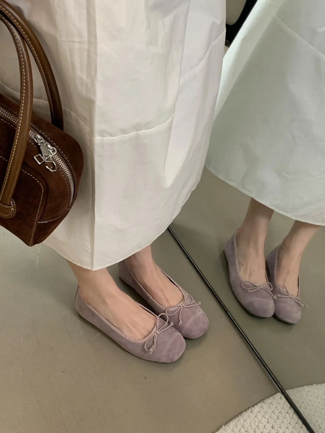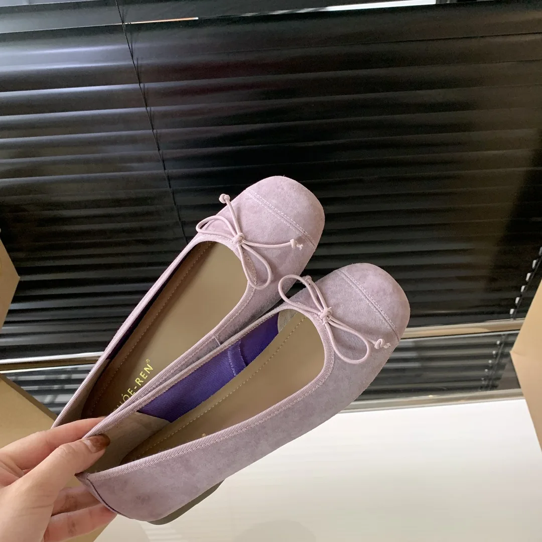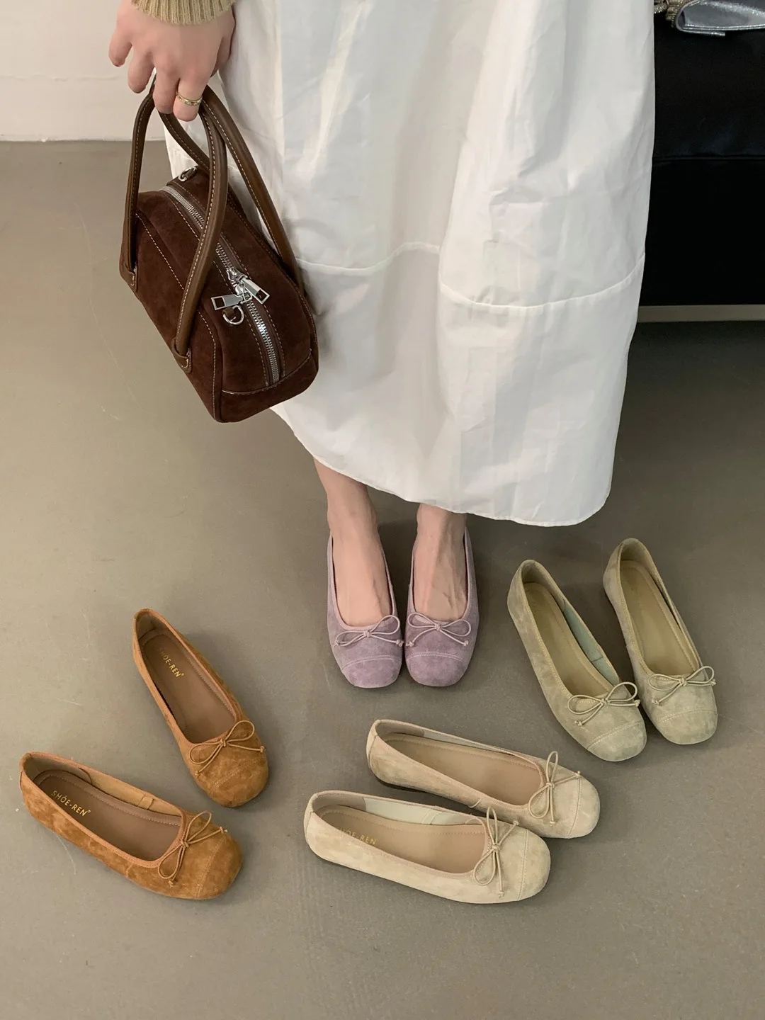 Cyflymder Round Toe Bow-Knot Women Casual Female Sneakers Flat Shoes Autumn Shallow Mouth Butterfly Dress Fall New Lace-Up PU Leisure Floc