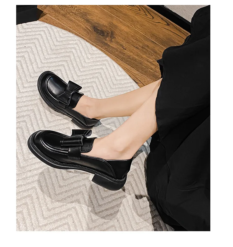 Cyflymder Round Toe Casual Woman Shoe Soft All-Match British Style Female Footwear Loafers With Fur Slip-on Oxfords Preppy Dress Big Size