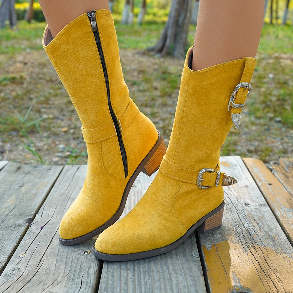 Cyflymder Round toe thick heel knee high boots with zippered high heels, comfortable fit for women's fashion shoes, plus size women's shoe