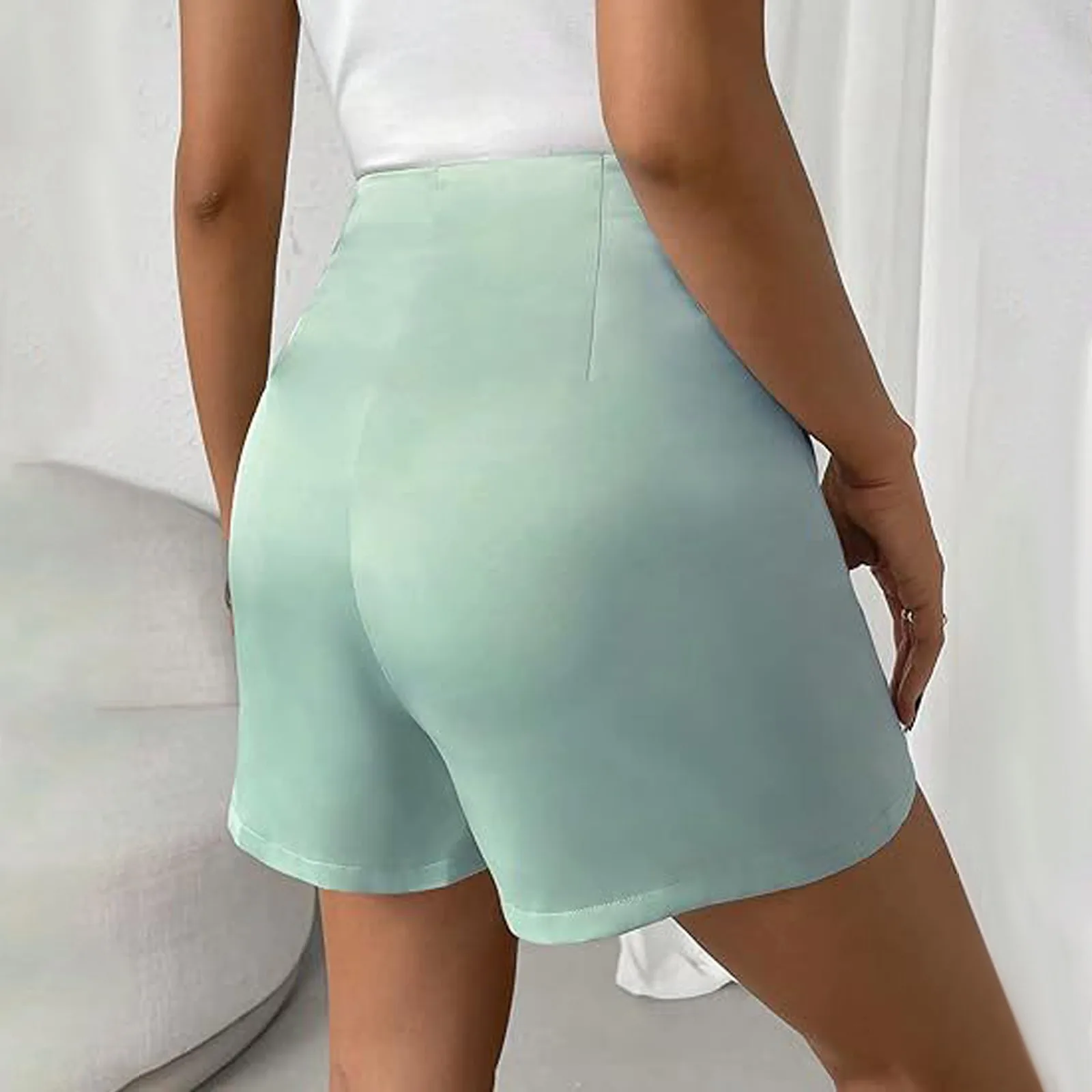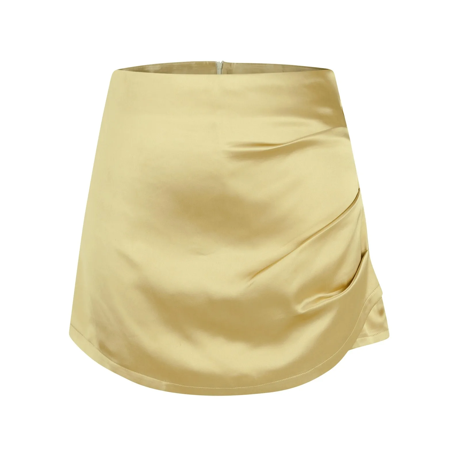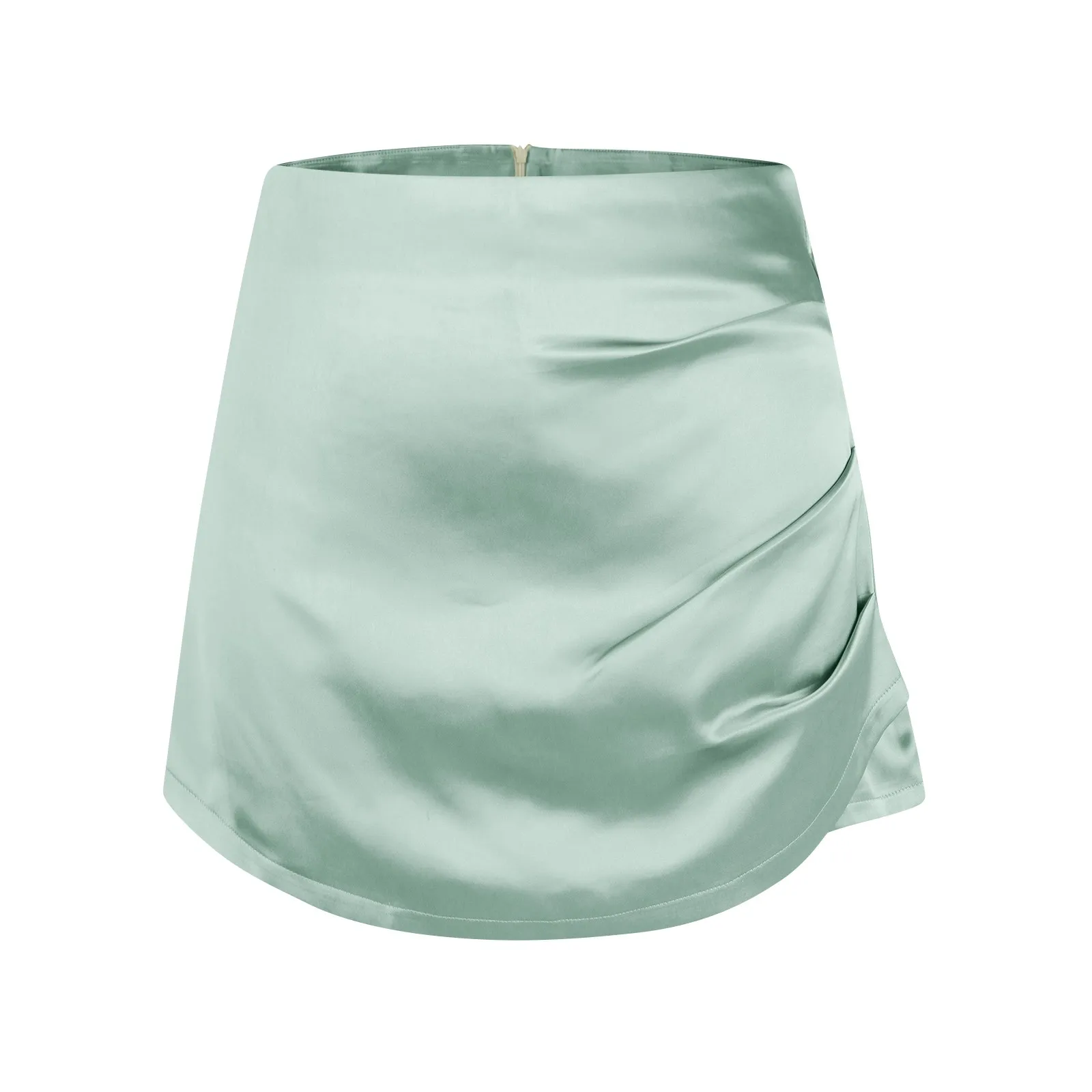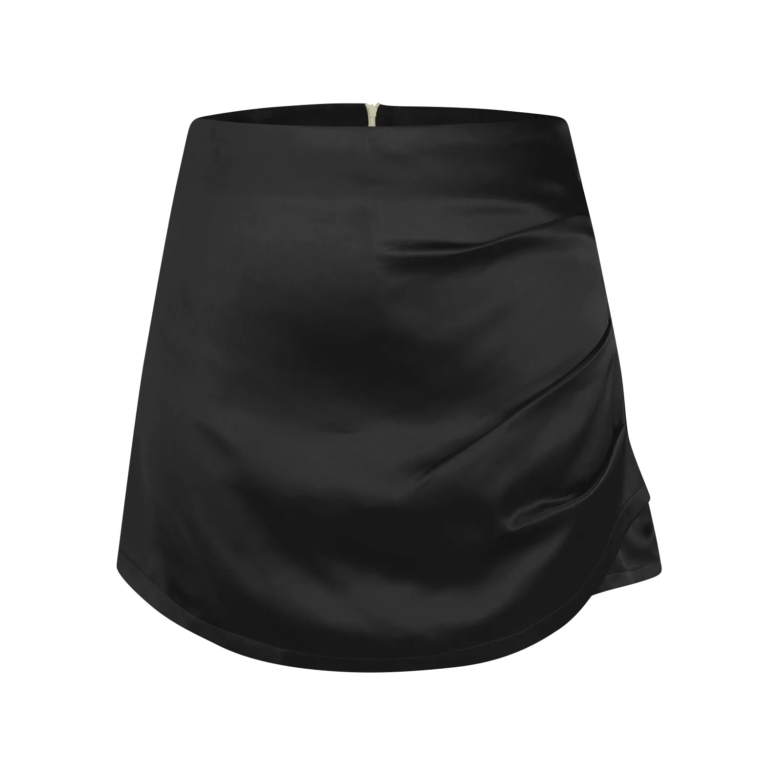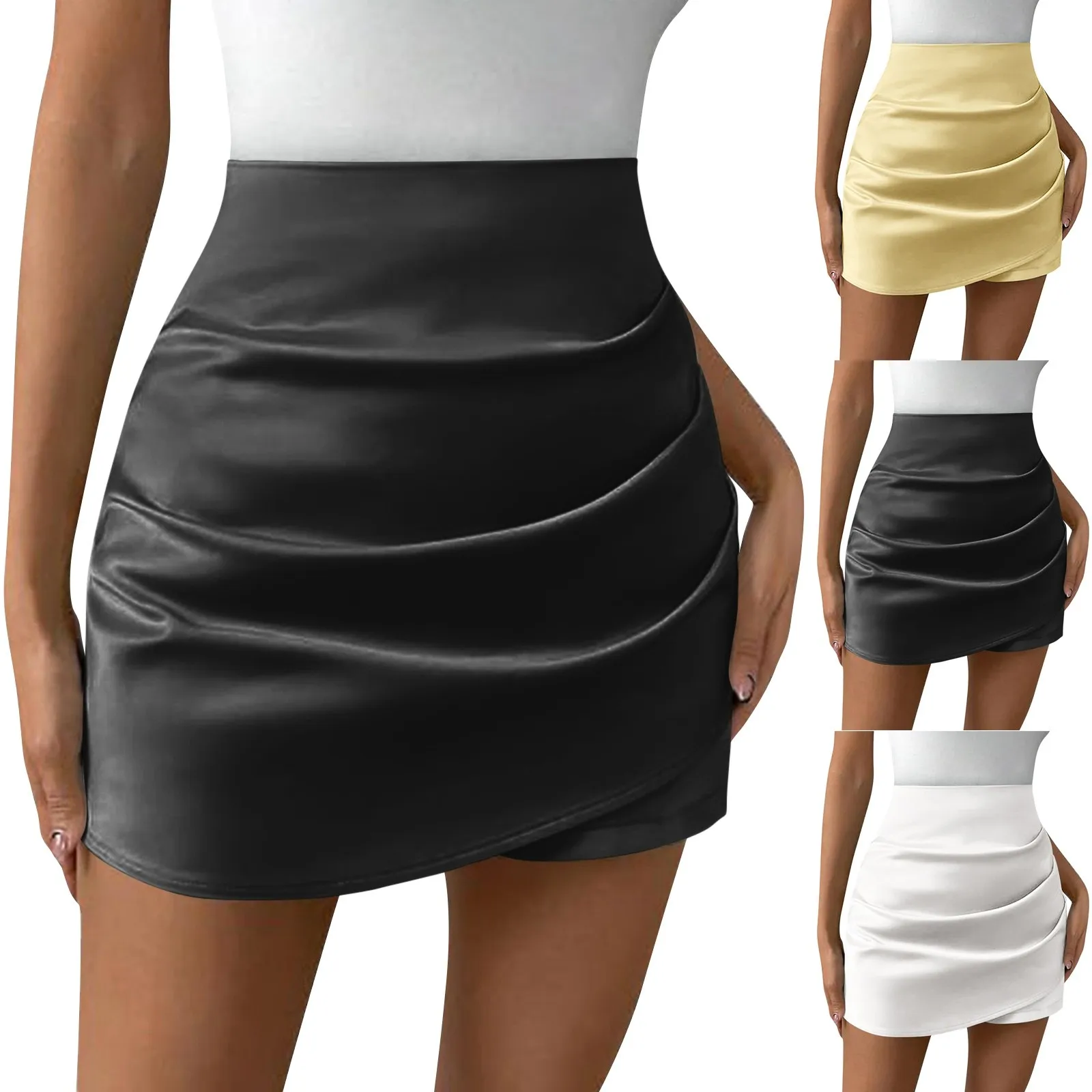 Cyflymder Ruched Wrap Asymmetrical Hem High Waist Sexy Slim Fitting Fashion Solid Color Pleated Half Skirt For Ladies Commuting Dress