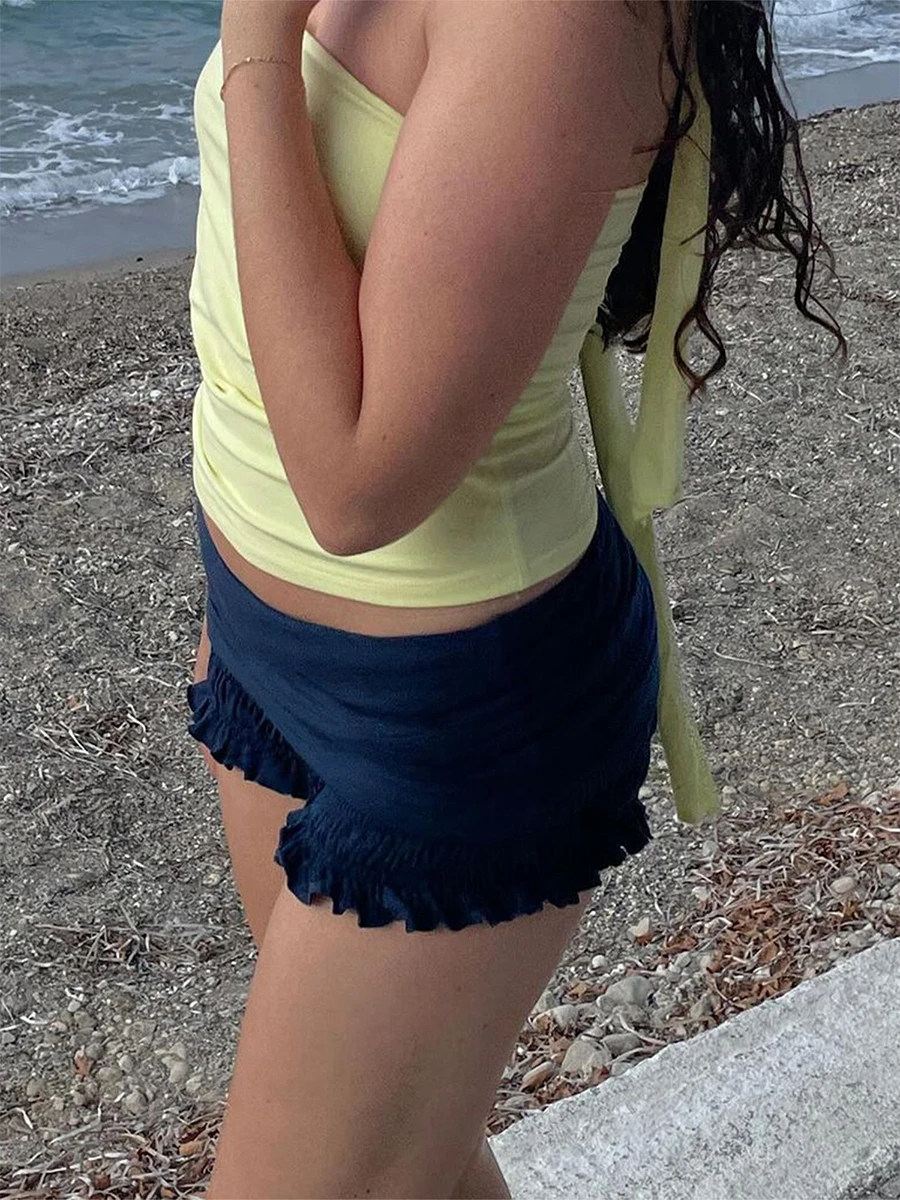 Cyflymder Ruffle Shorts y2k Clothes Women Solid Color Elastic Low Waist Layered Tiered Lace Bloomers Vacation Beach Streetwear