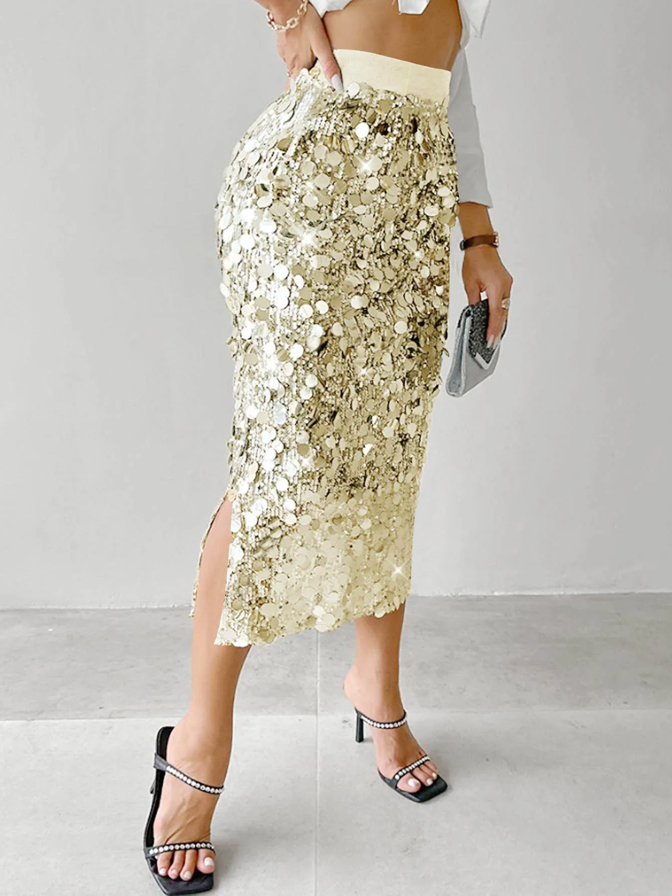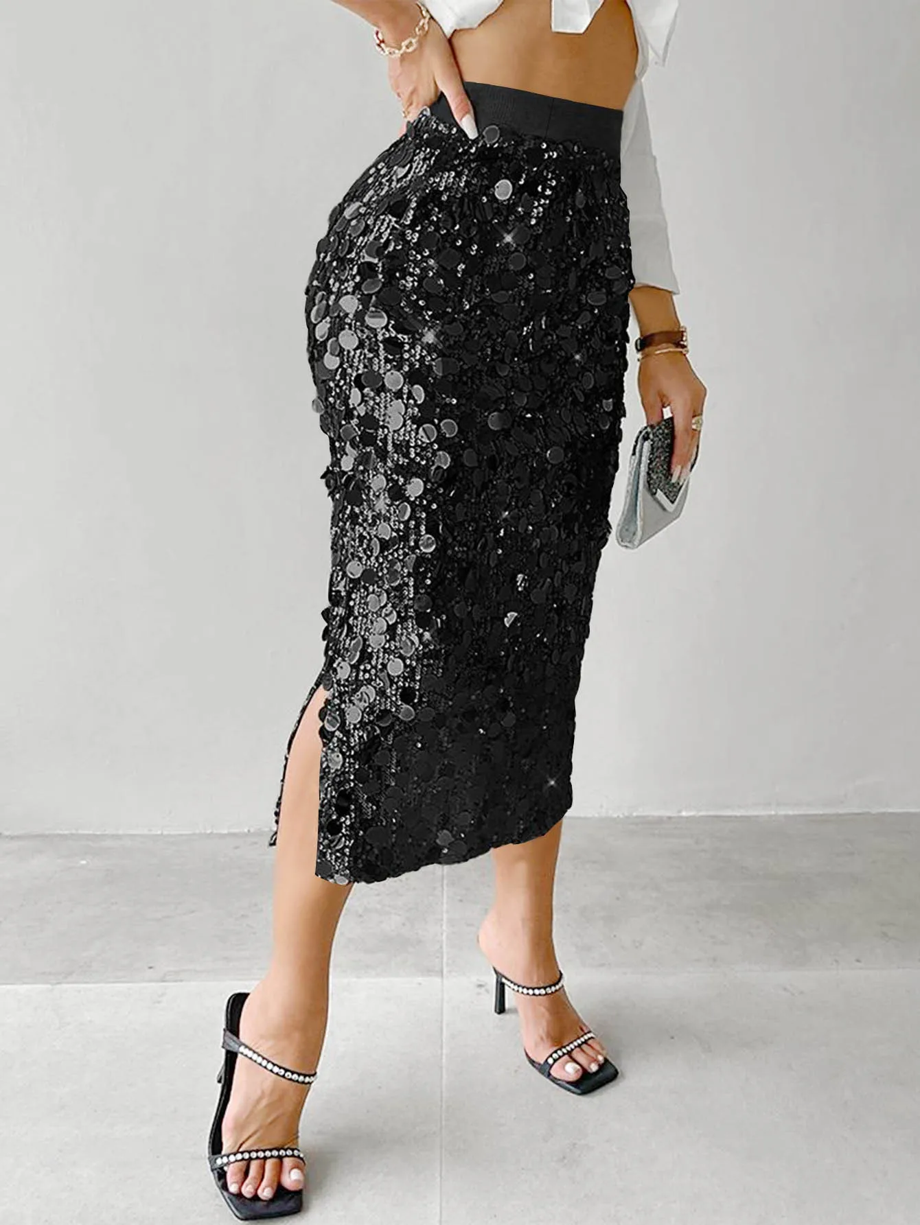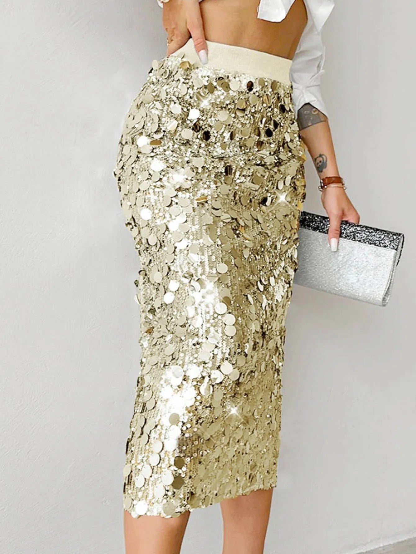 Cyflymder Sequin Elegant Skirt for Women's Elastic High Waist Pencil Skirt Party Club Casual Evening Cocktail Fashion Sparkly Skirts