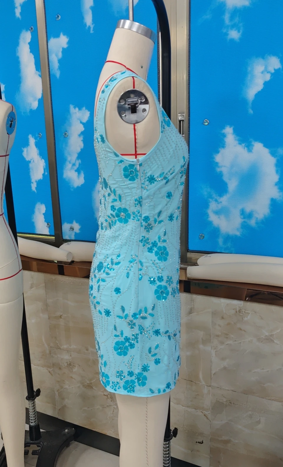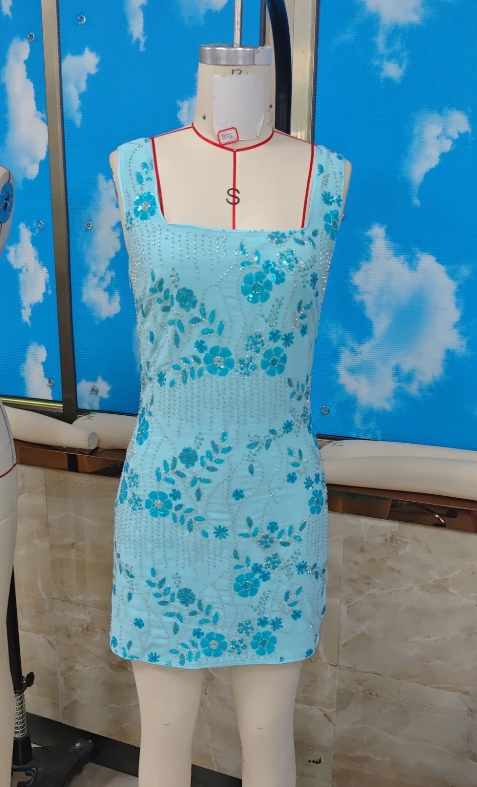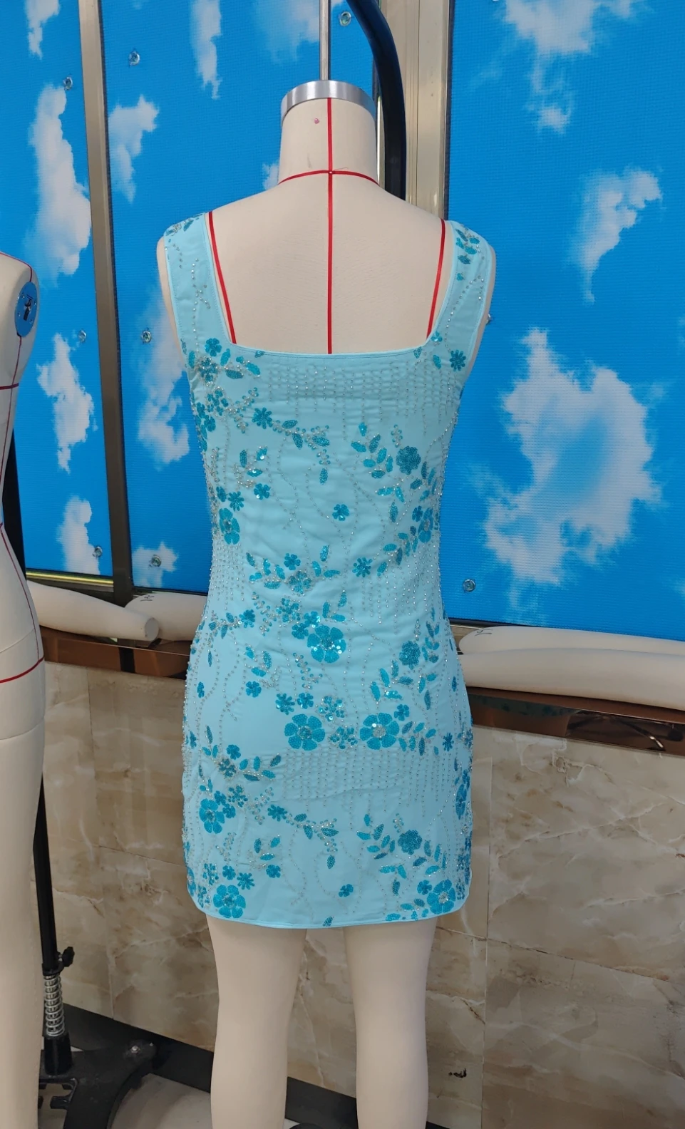 Cyflymder Sequin Sparkle Tank Mini Dress for Women Summer Fashionable Square Neck Sleeveless Bodycon Floral Dress Party Club