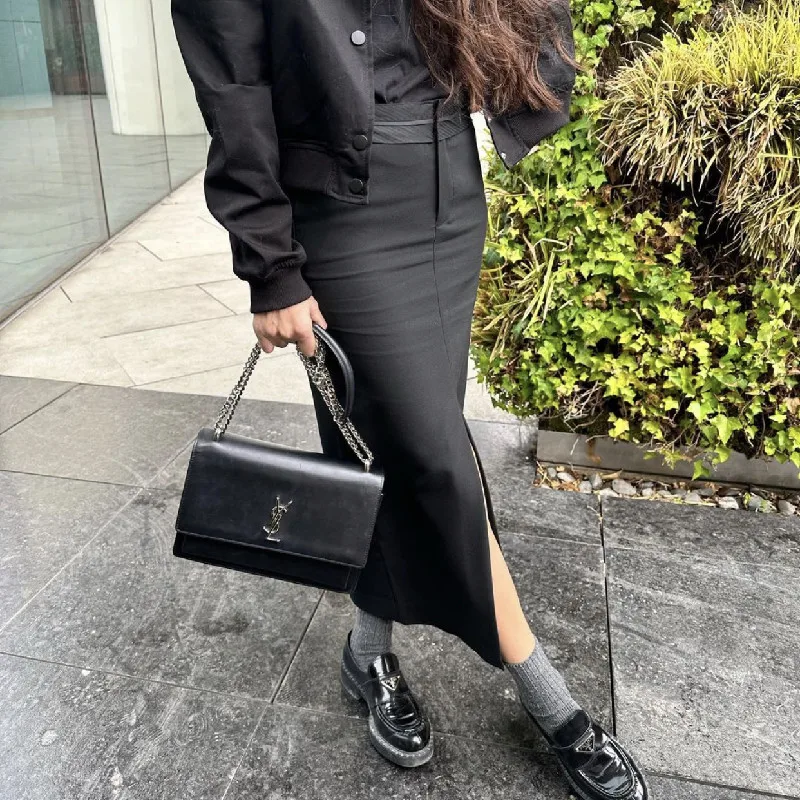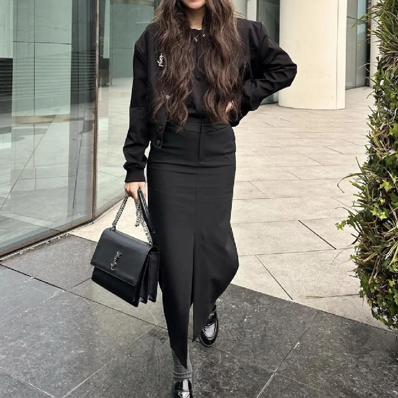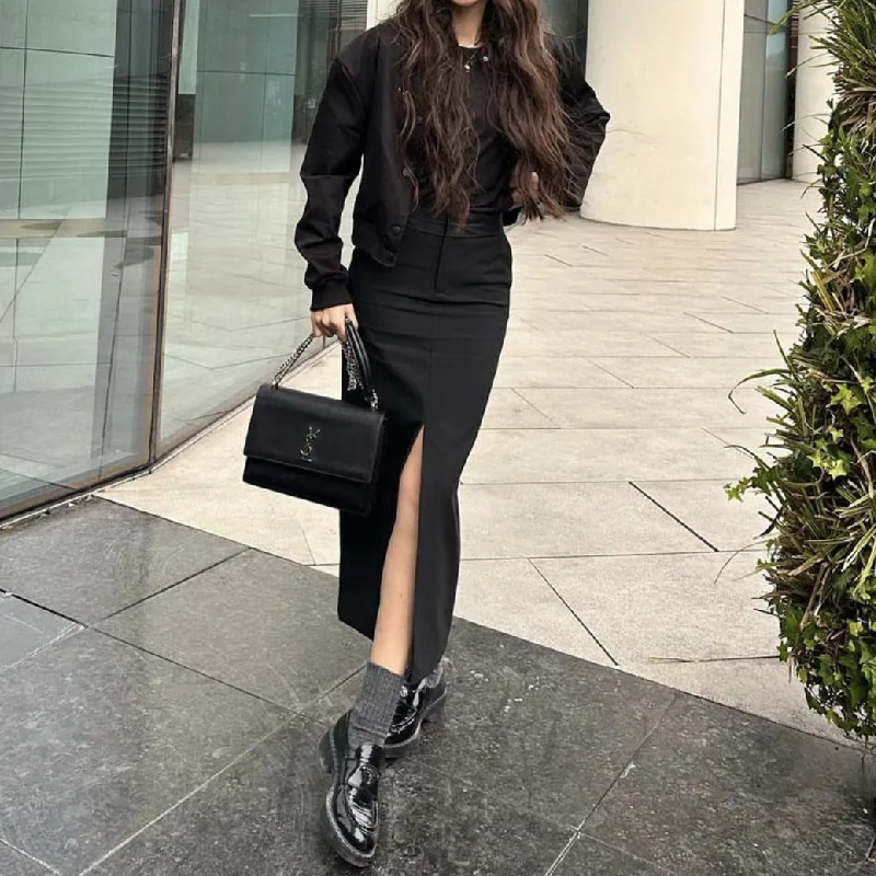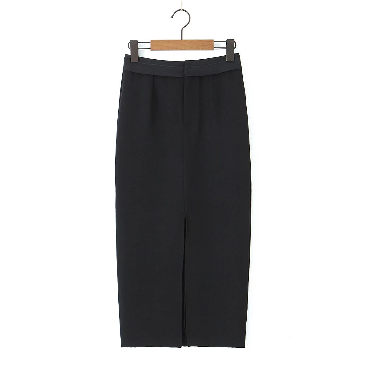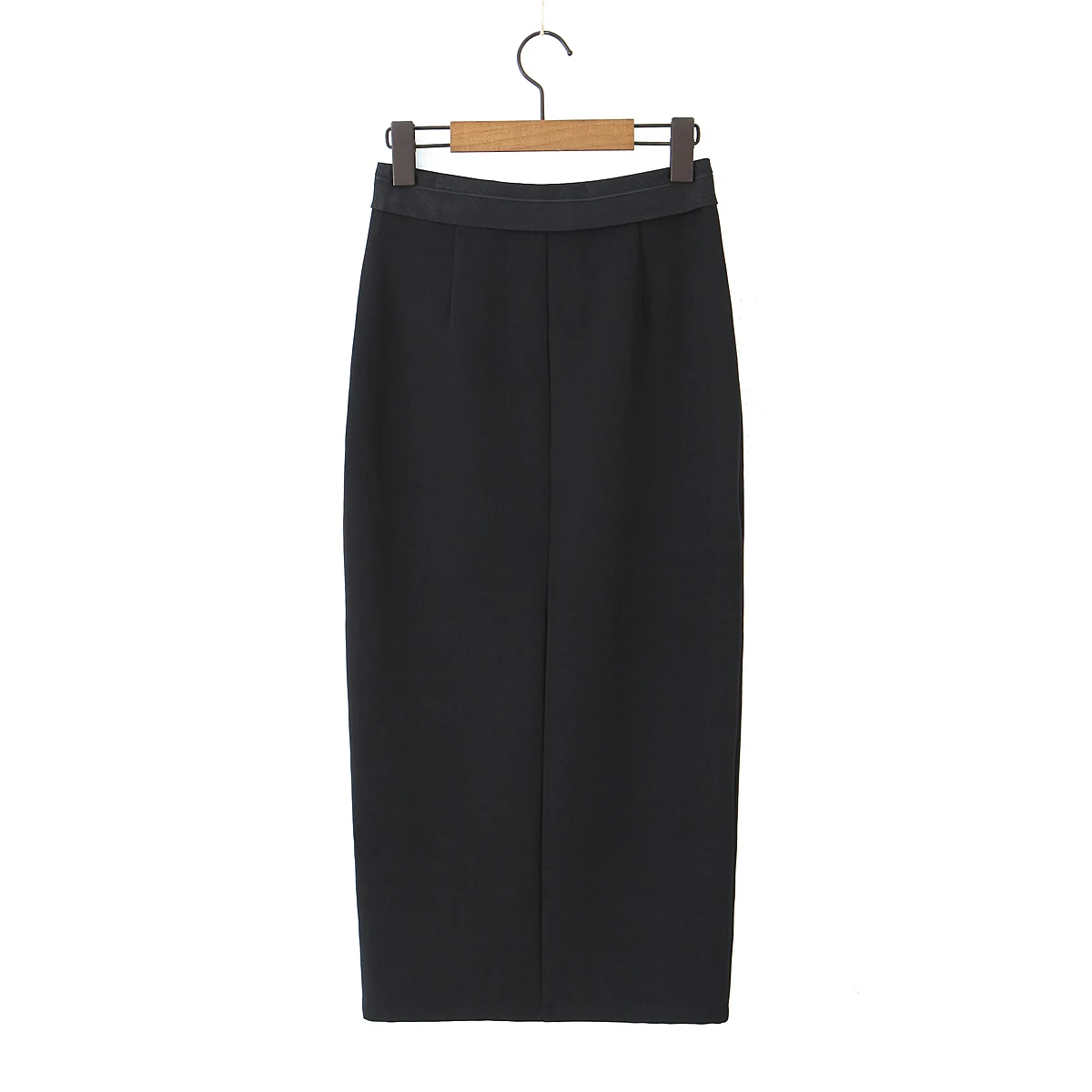 Cyflymder Sexy Black Front Slit Midi Pencil Skirt Women Spliced High Waist Package Hips Skirts