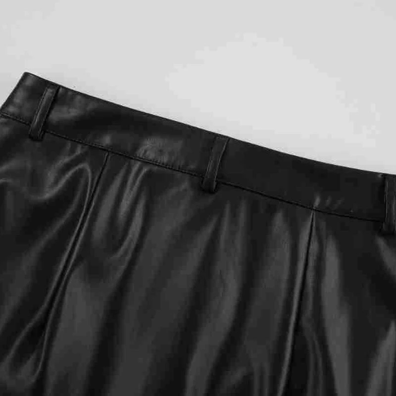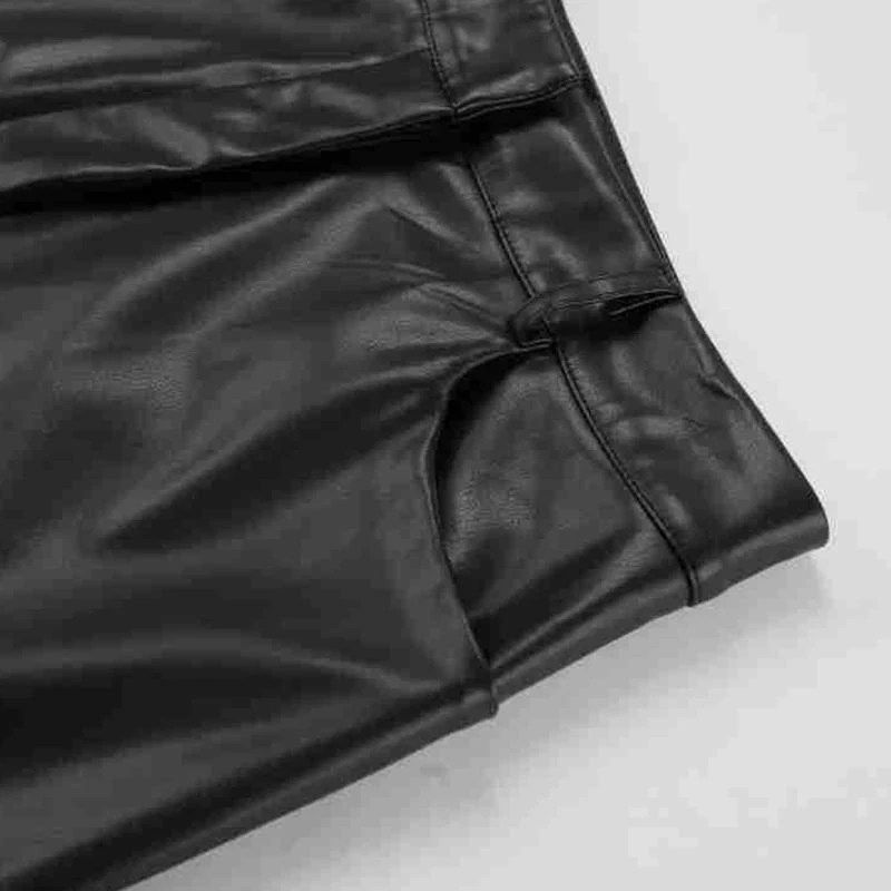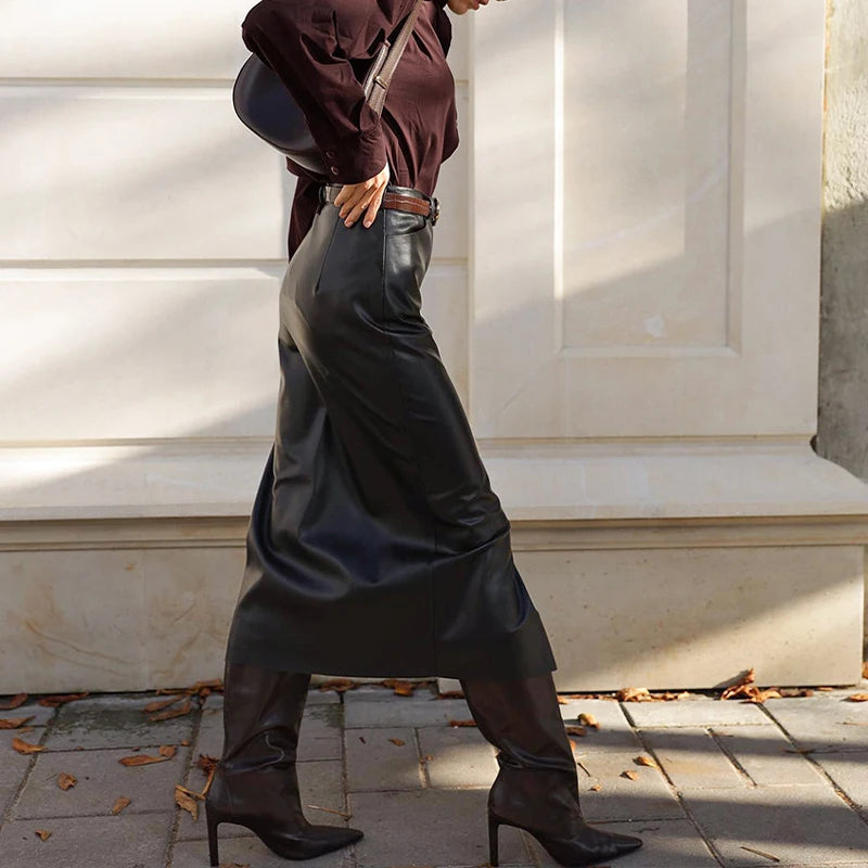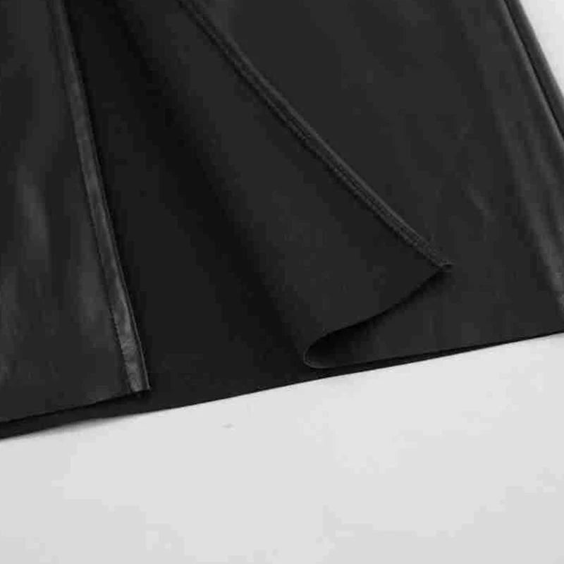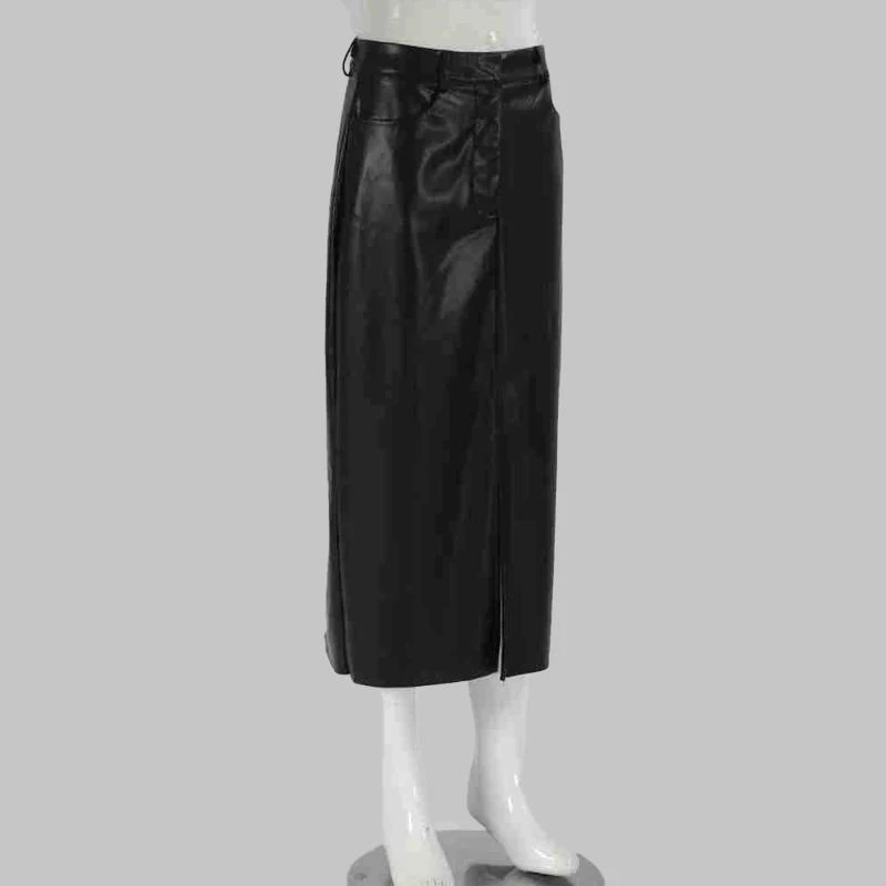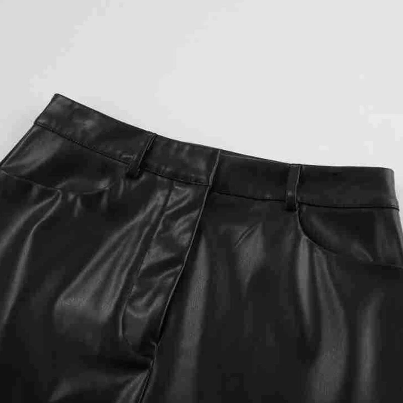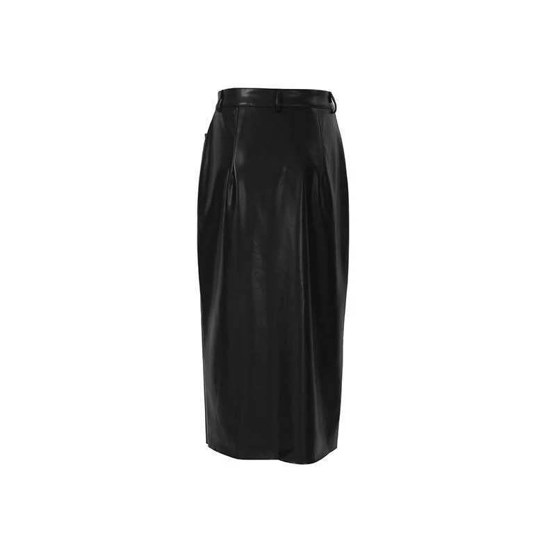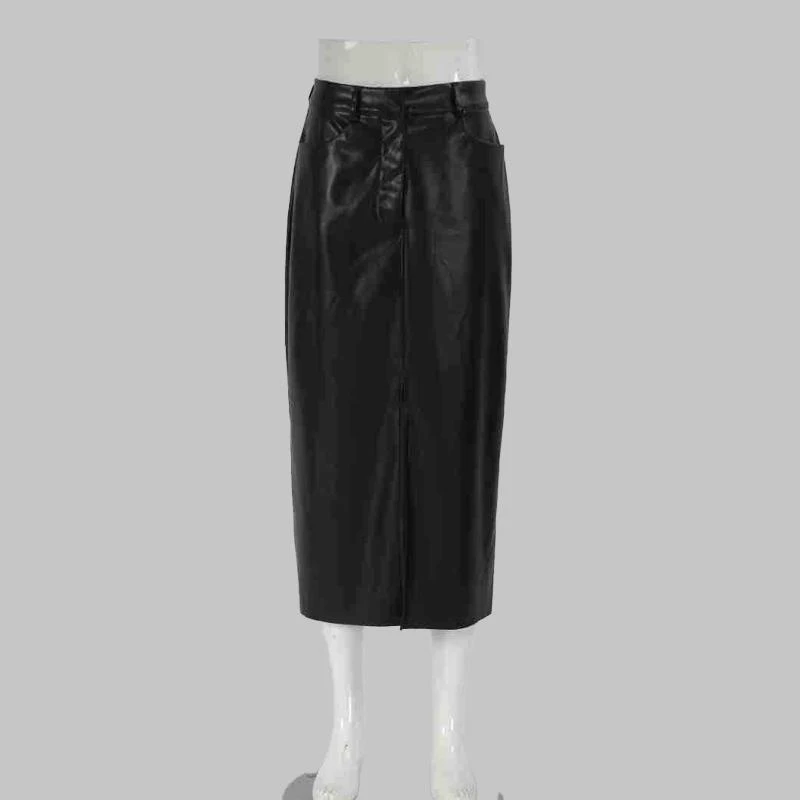 Cyflymder Sexy Black PU Leather High Waist Straight Slit Mid Length Half Skirts For Women Elegant Temperament Street Commuting Outfit