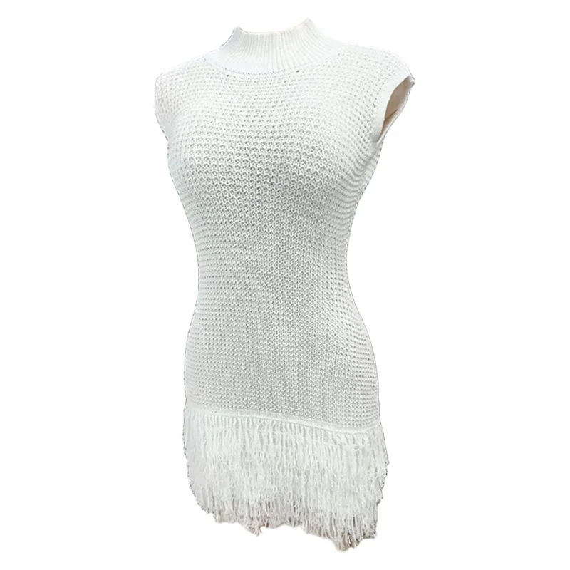 Cyflymder Sexy Dress Women Sleeveless Hollow Out Patchwork Tassel Slim Bodycon Knitted Short Dresses
