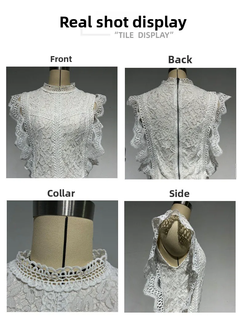 Cyflymder Sexy Hollow out Pure Color Geometric Pattern Women's Top Lace Chiffon irt Summer New Sle Bestseller Transparent Design