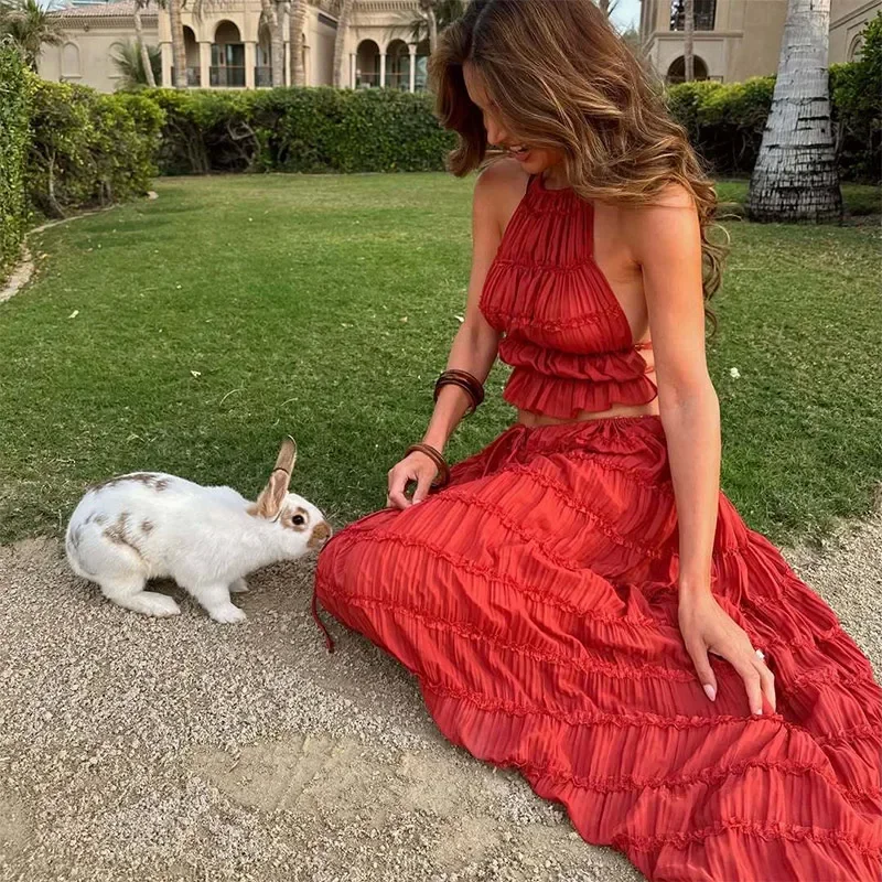 Cyflymder Sexy Pleated Vest Skirt Sets Women Elegant Solid Backless Sleeveless Tank Tops Drawstring Skirt 2025 Summer Vacation Lady Outfit