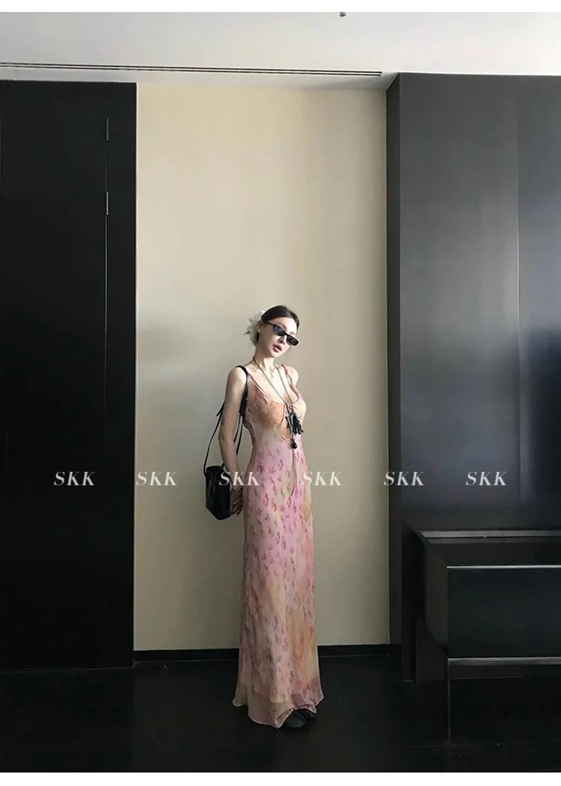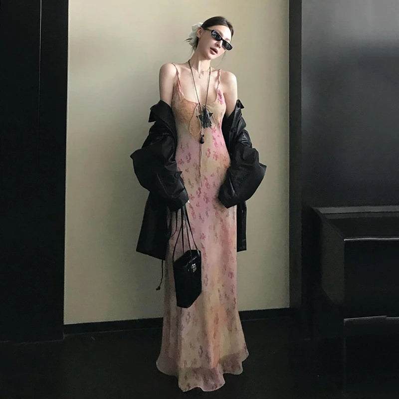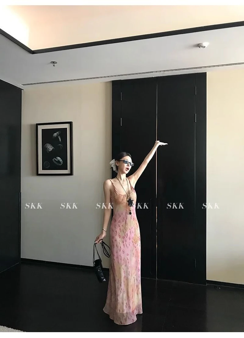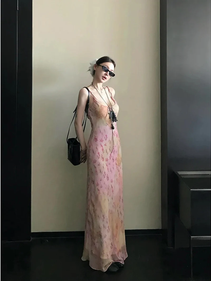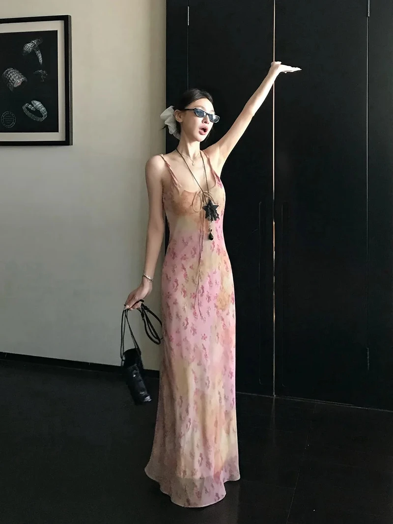 Cyflymder Sexy Printed Camis Dress Women Korean Fashion Slim Floral Spaghetti Strap Dress Summer Retro Harajuku Sleeveless Party Vestidos