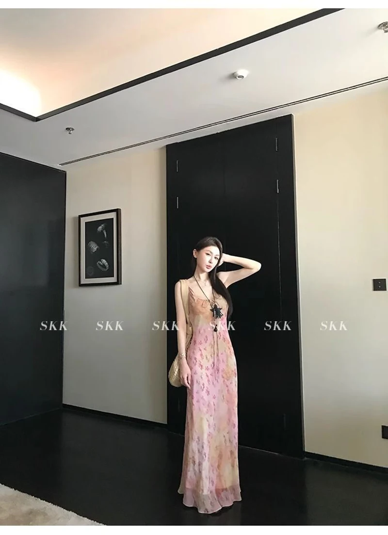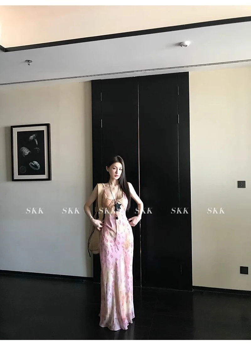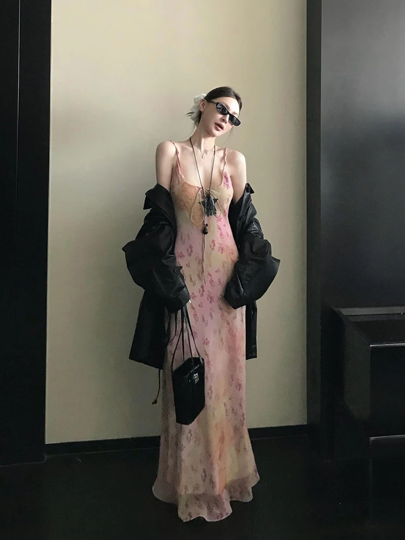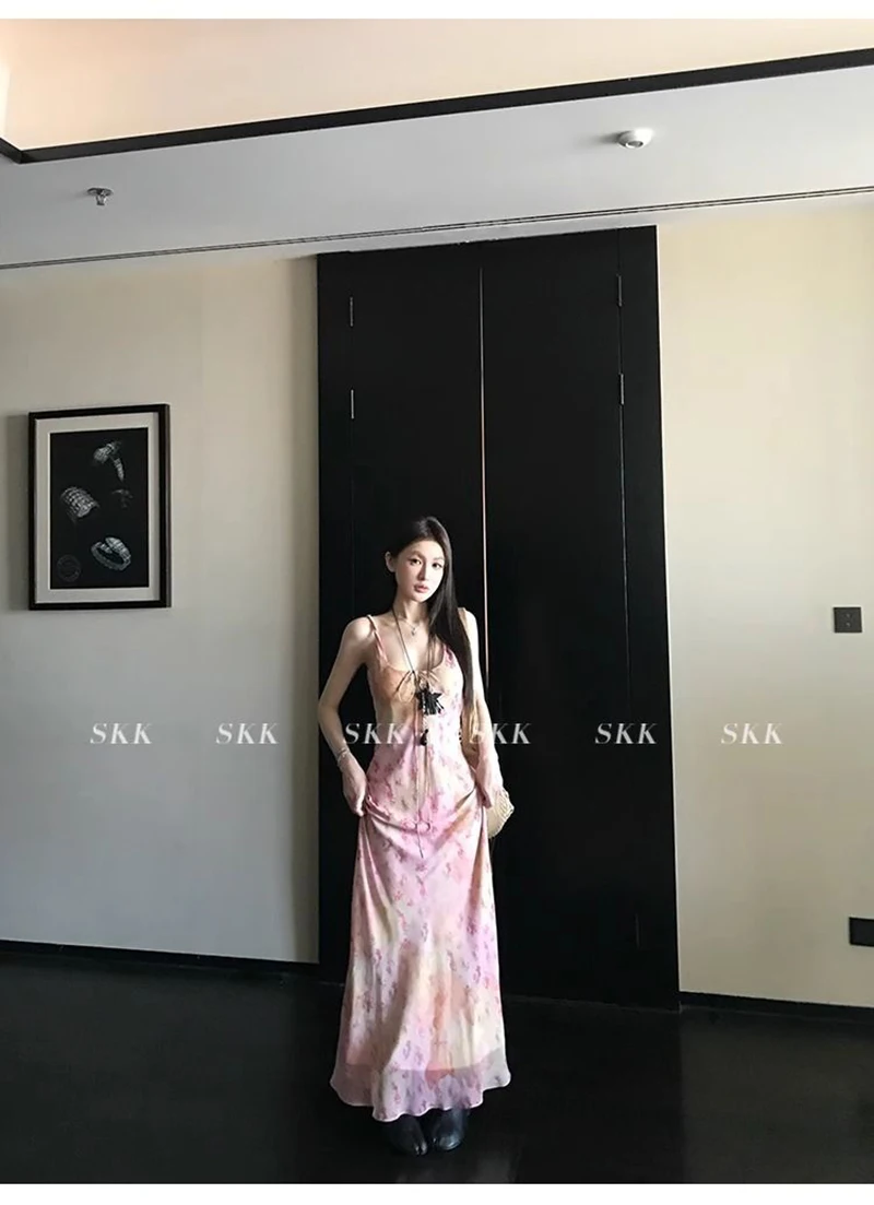Cyflymder Sexy Printed Camis Dress Women Korean Fashion Slim Floral Spaghetti Strap Dress Summer Retro Harajuku Sleeveless Party Vestidos