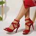 Cyflymder Sexy Red Suede Cross Strap Peep Toe Sandals Women Summer Super High Heels Sandals Gold Ankle Strap Party Dress Jazz Shoes