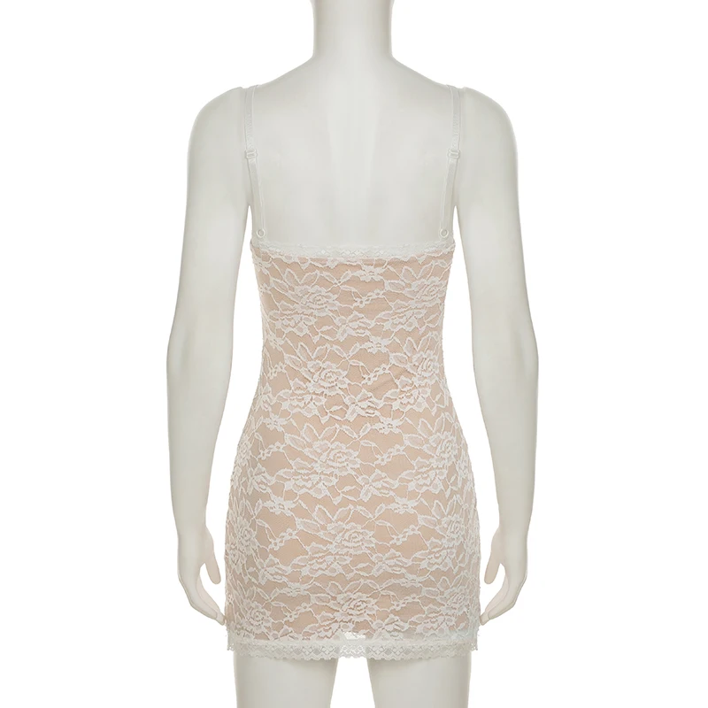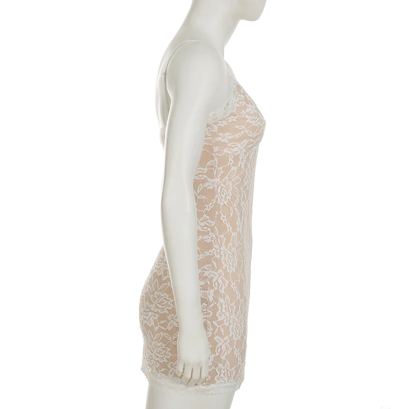 Cyflymder Sexy Slim Lace Bodycon Dress Holiday Slash Neck Sleeveless Mini Dresses For Women 2025 Summer Fashion Streetwear Lady