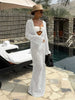 Cyflymder Sexy U-neck Bell Sleeve Knit Maxi Dress Summer 2024 Women Swimwear Feminine Bikinis Cover-ups Holiday Crochet Beach Outfit K21