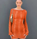 Cyflymder Sexy Women Backless Knitted Mini Dress Crochet Knit Hollow Out Sundress Long Sleeve Drawstring Tie Up Dress Beach Clubwear Dress