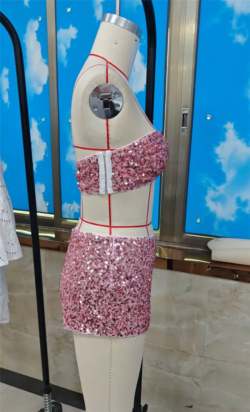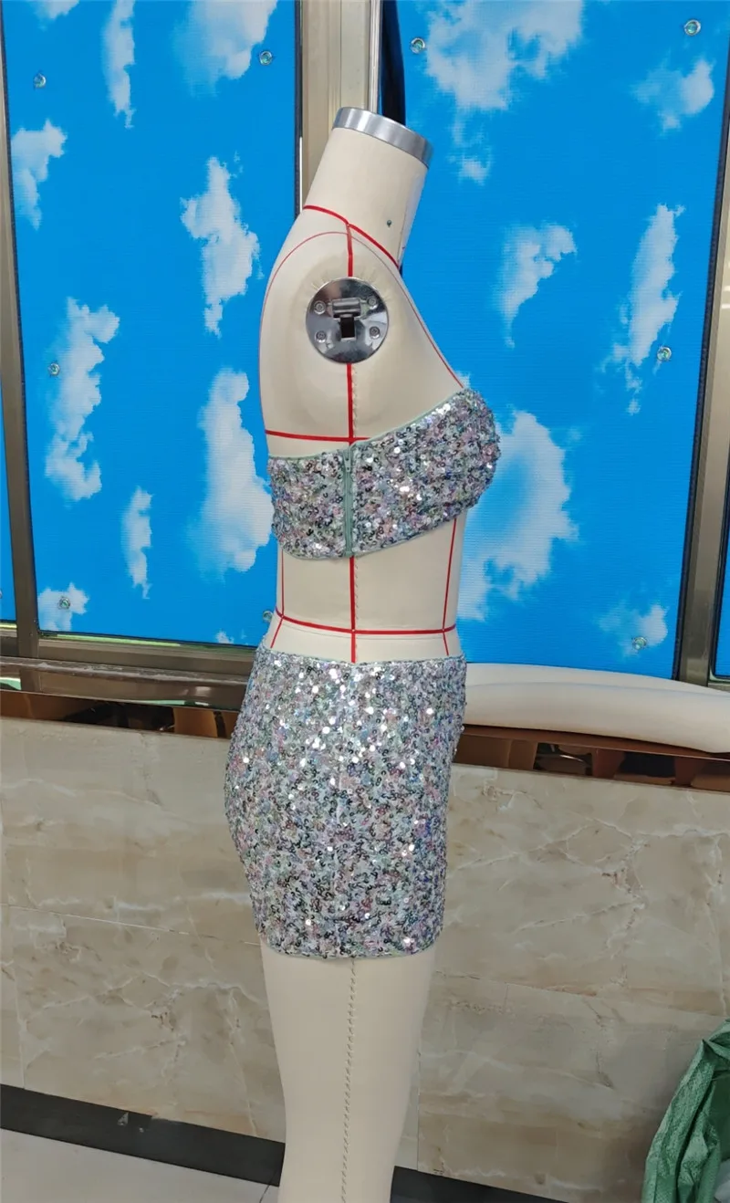 Cyflymder Sexy Women's Summer Sequin Outfit Stylish Sparkly Bra Tops and Low Rise Mini Skirts/Shorts 2 Pcs Set Party Rave Outfit